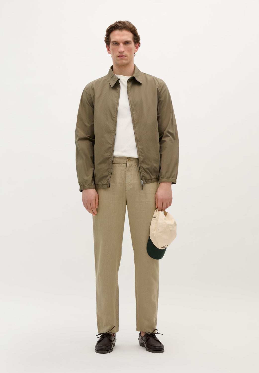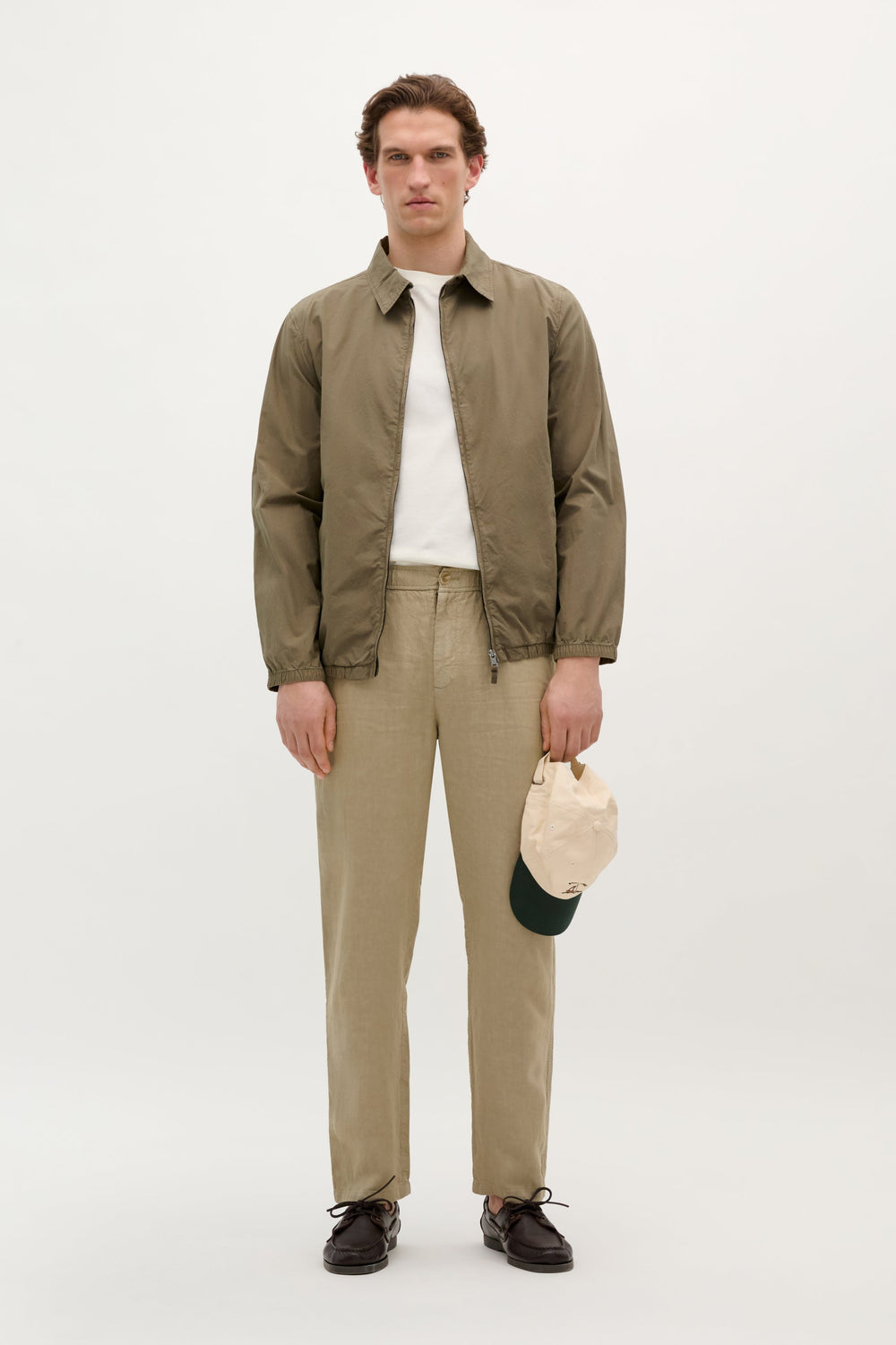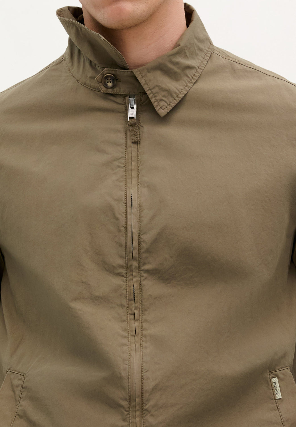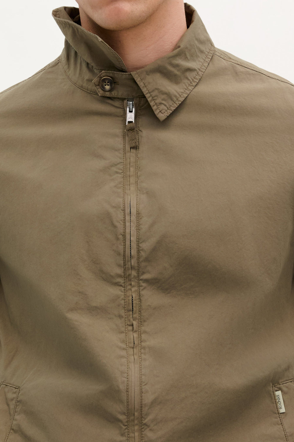 Chaqueta ligera lavada. Confeccionada en 100% Algodón BCI. Corte Regular fit. Cuello solapa. Cierre con cremallera. Manga larga terminada en puño con elástico. Bolsillos laterales de vivo con boca inclinada.