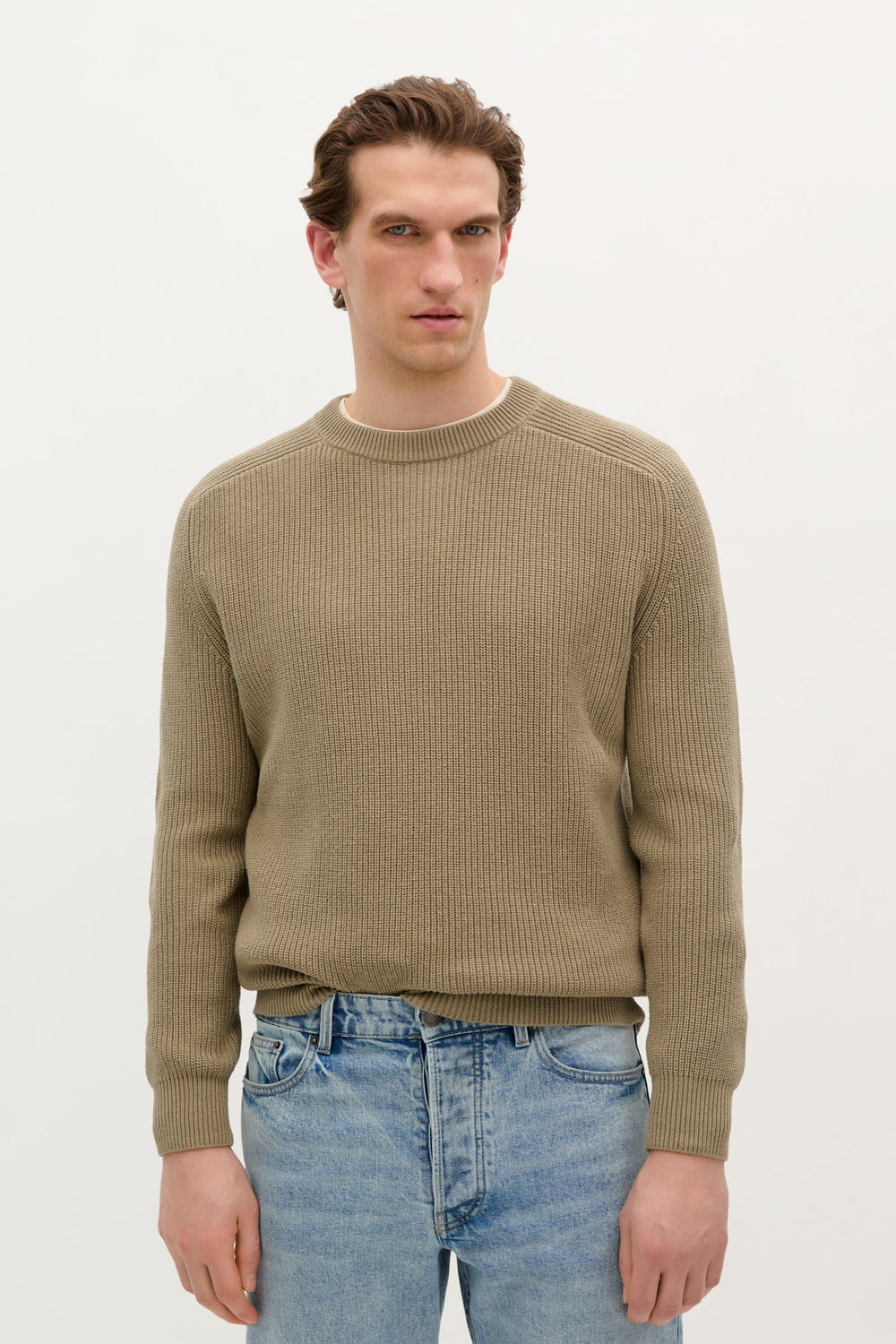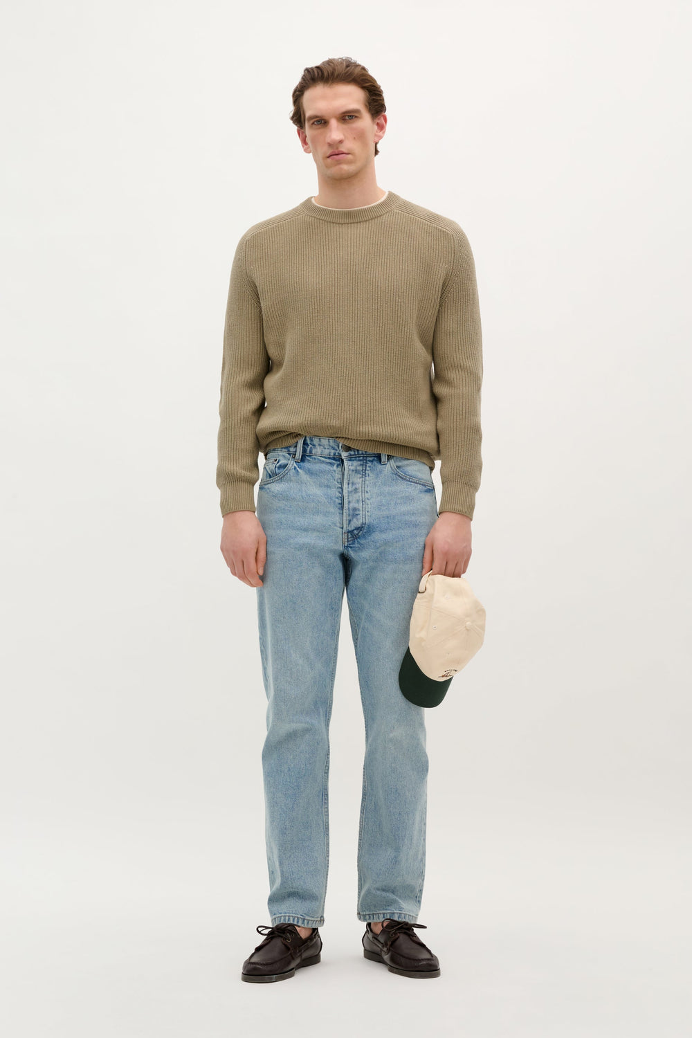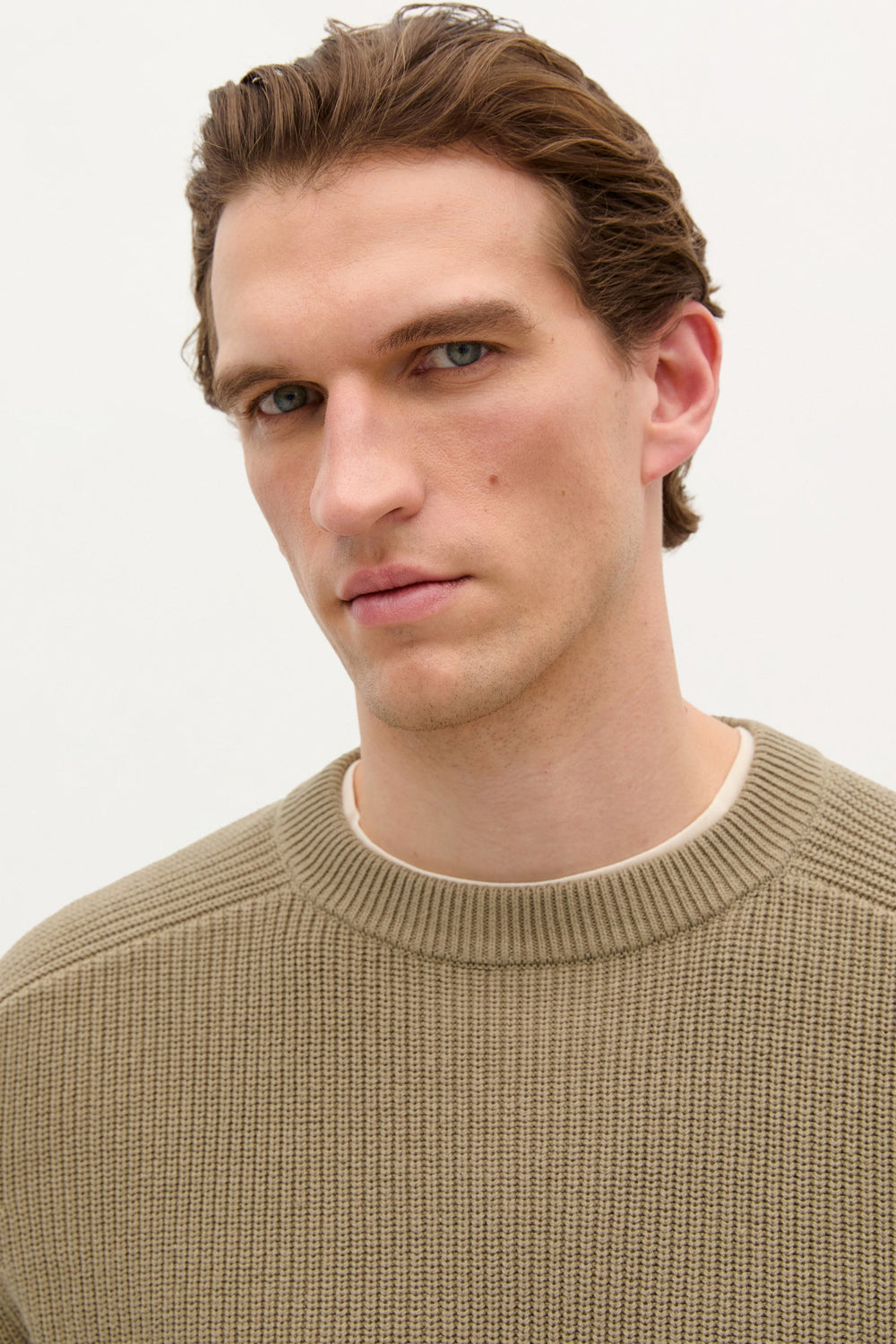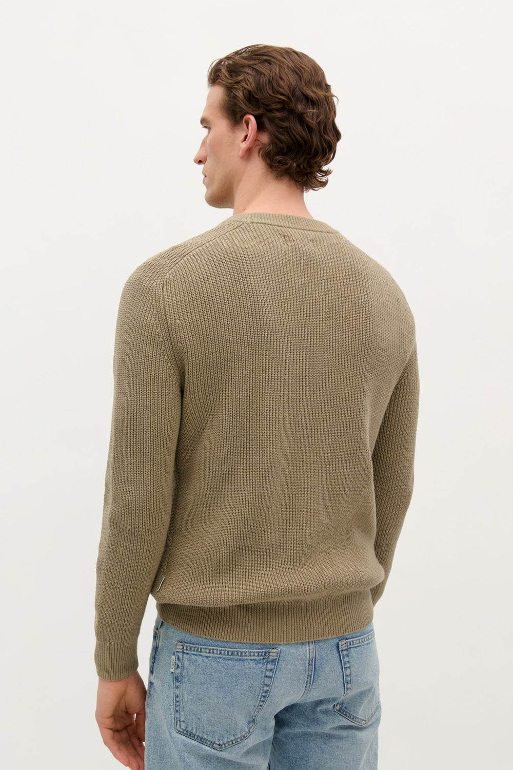 Jersey de punto perlado. Confeccionado en 100% Algodón BCI. Corte Regular fit. Cuello redondo. Manga ranglan larga. Acabados en rib.