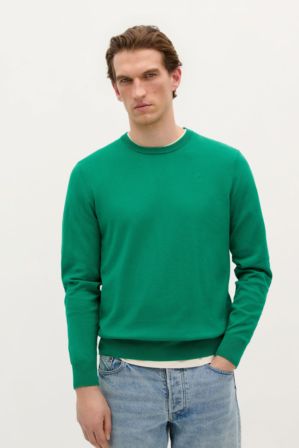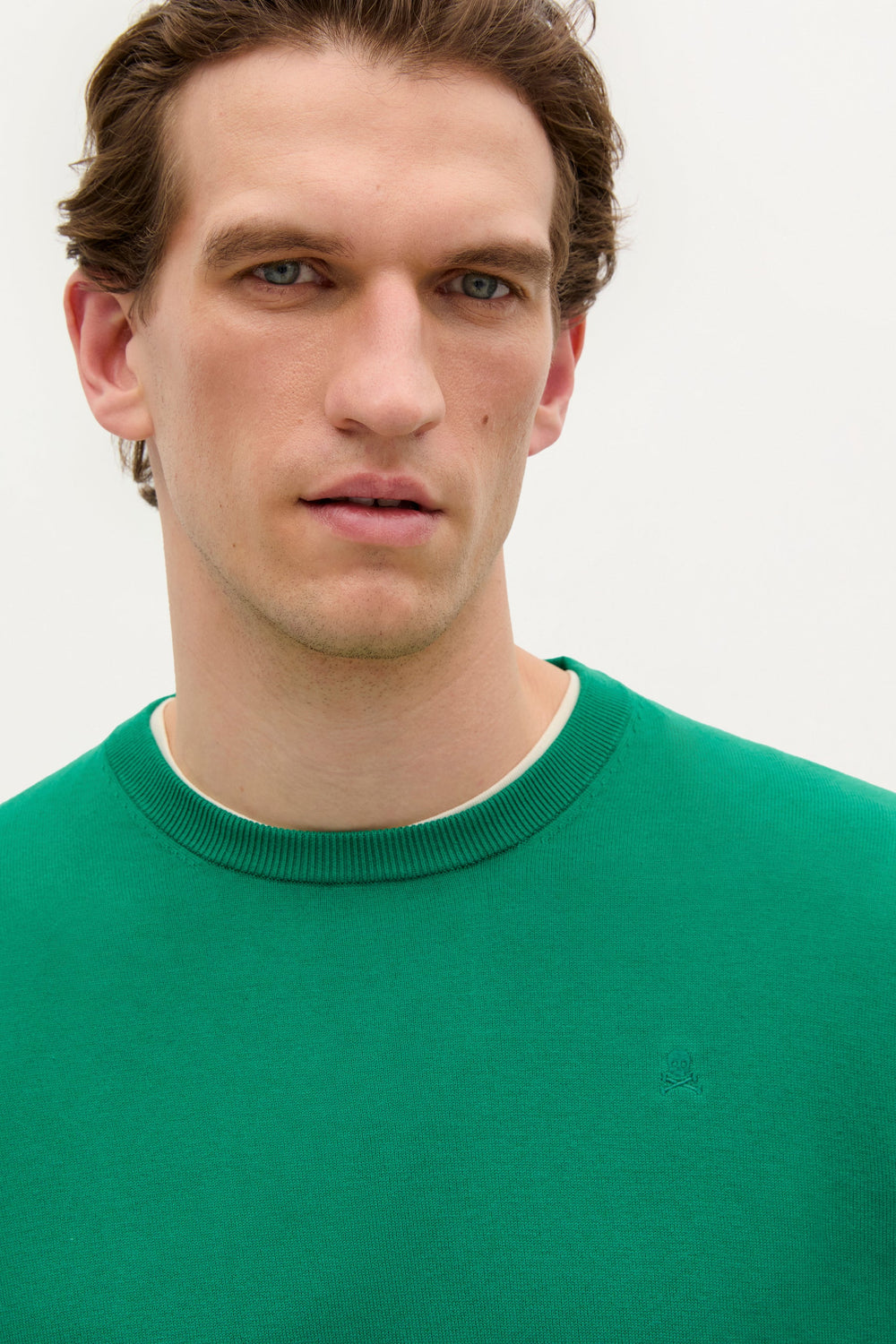 Jersey de punto con calaverar bordada en pecho a tono. Confeccionado en 100% Algodón BCI. Corte Regular fit. Cuello redondo. Manga larga. Acabados en rib.