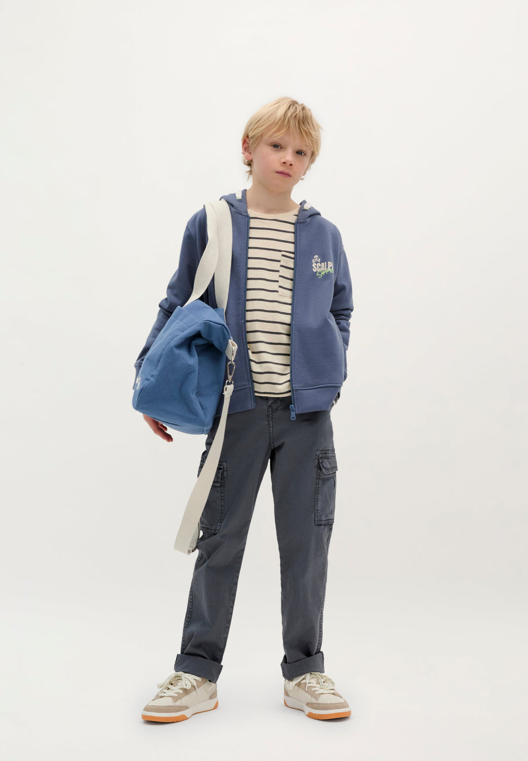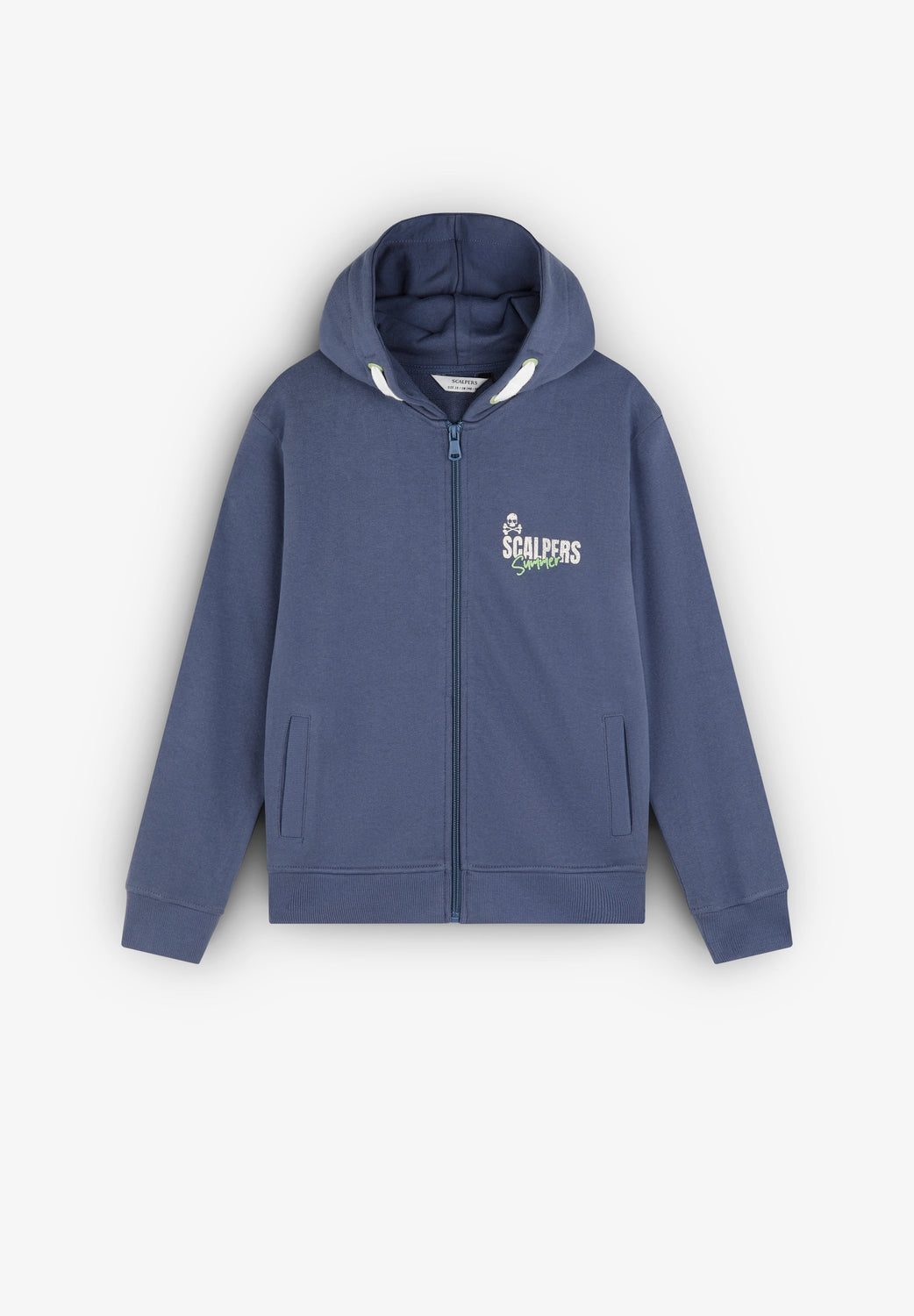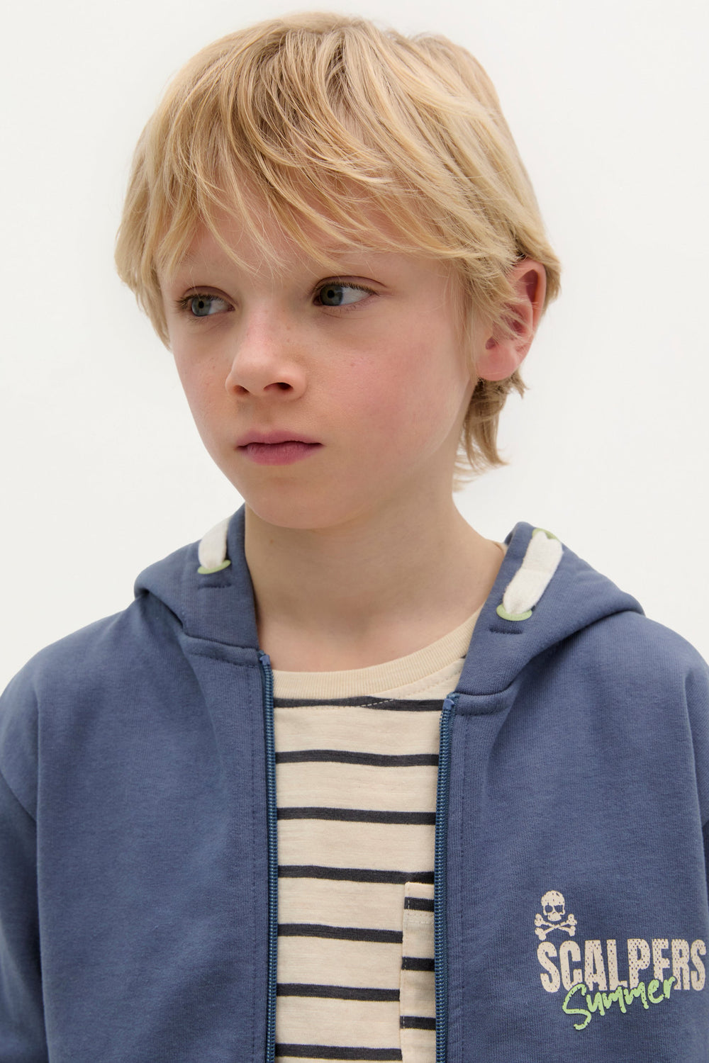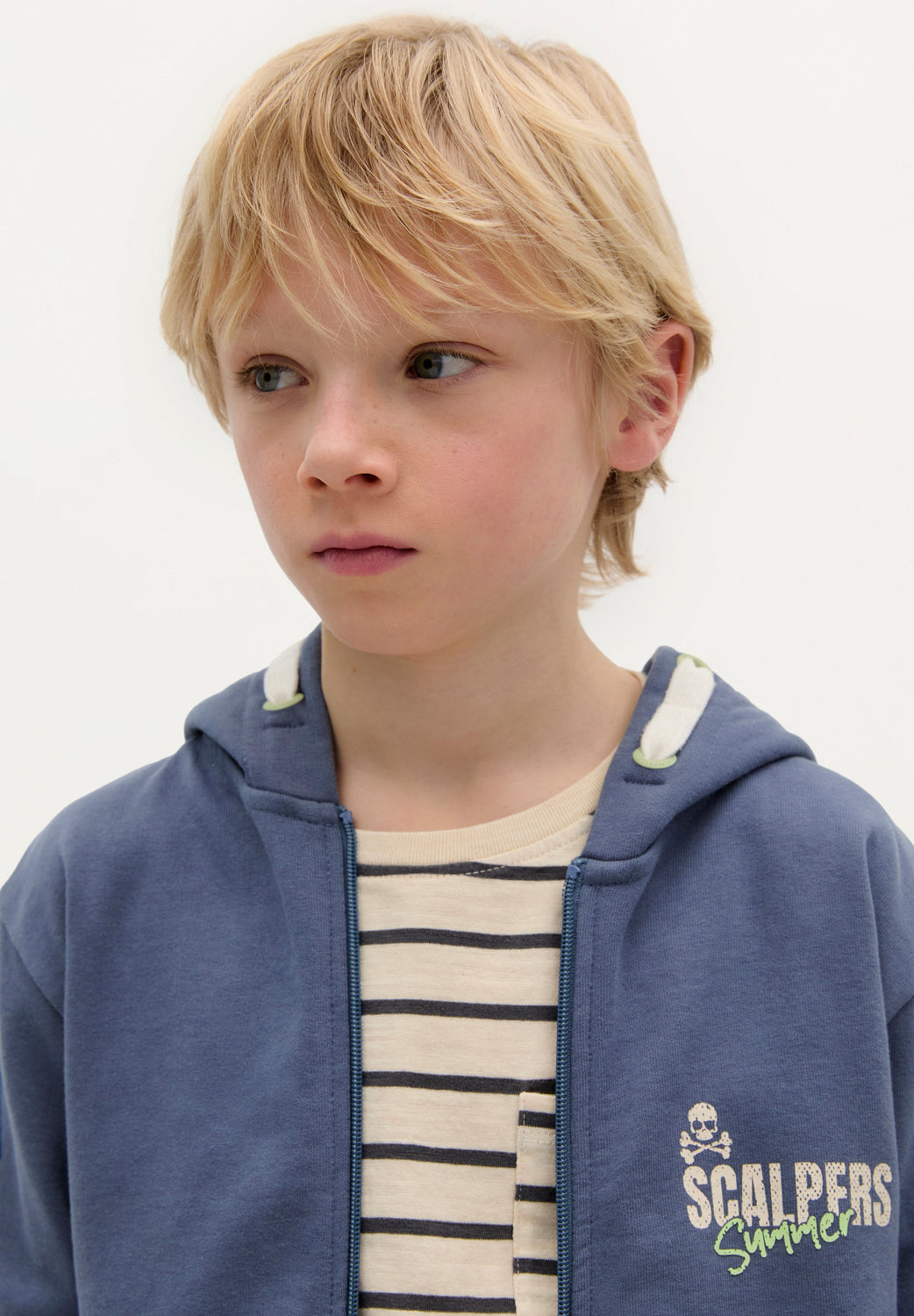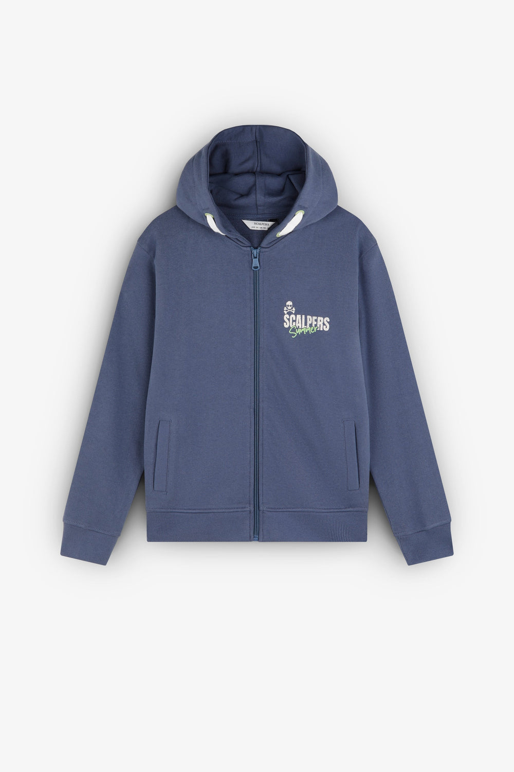 Sudadera con capucha confeccionada en algodón 100% BCI. Cierre con cremallera y detalle de cordones en capucha con ojales a contraste. Regular Fit. Print frontal en pecho y print trasero con contorno bordado. Bolsillos laterales y manga larga con puños acabaos en rib.