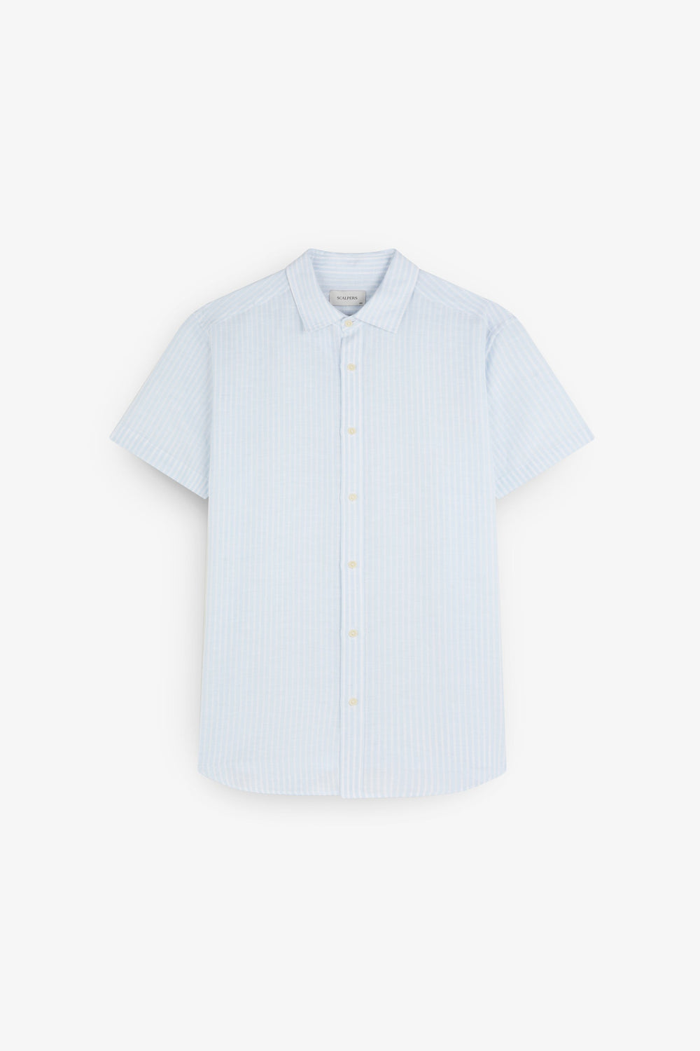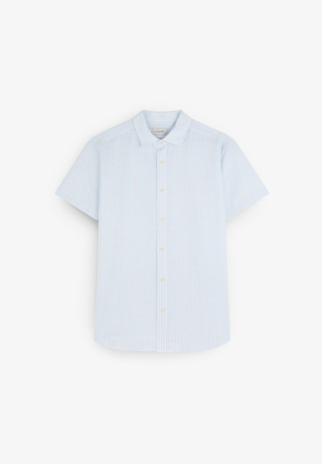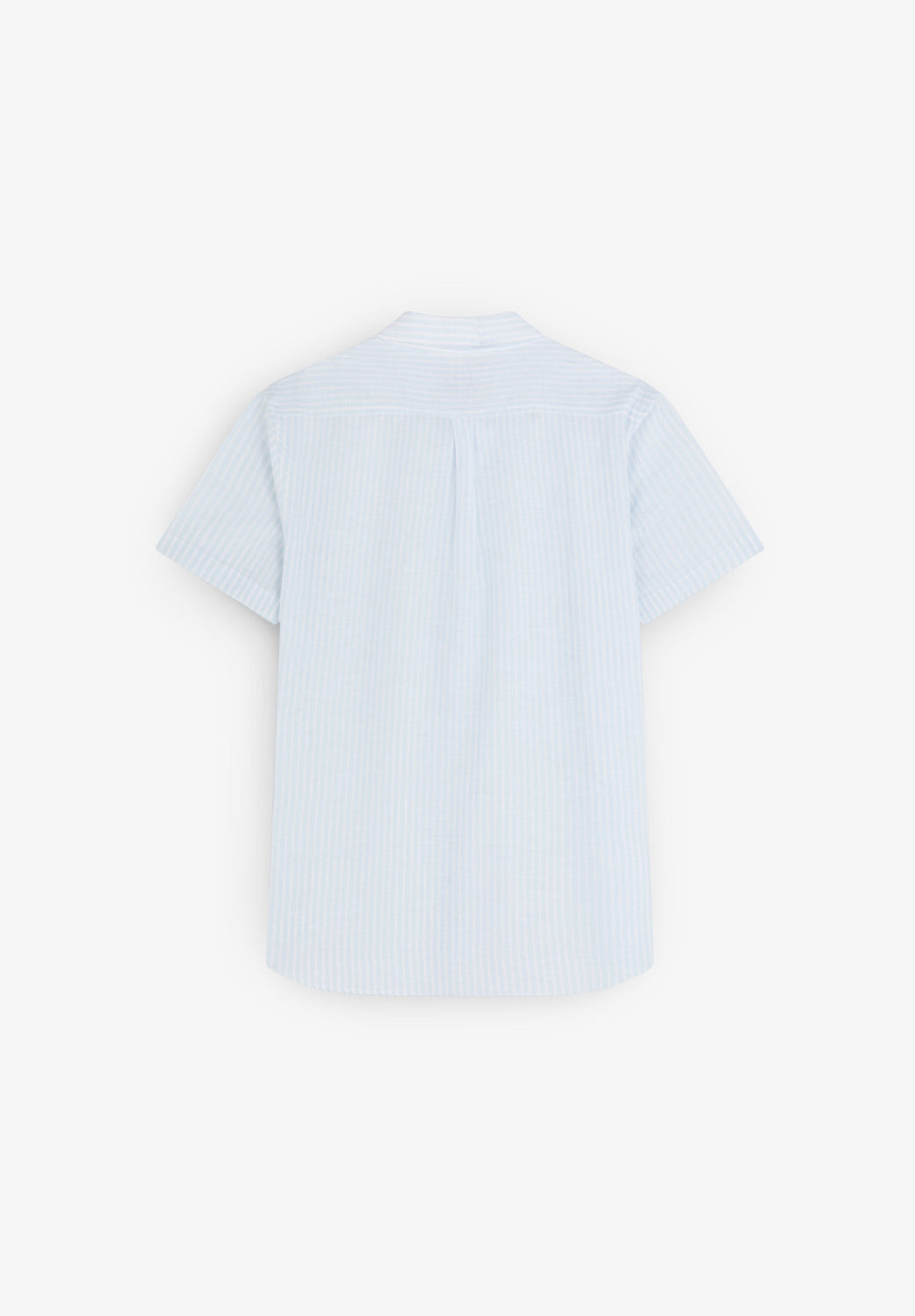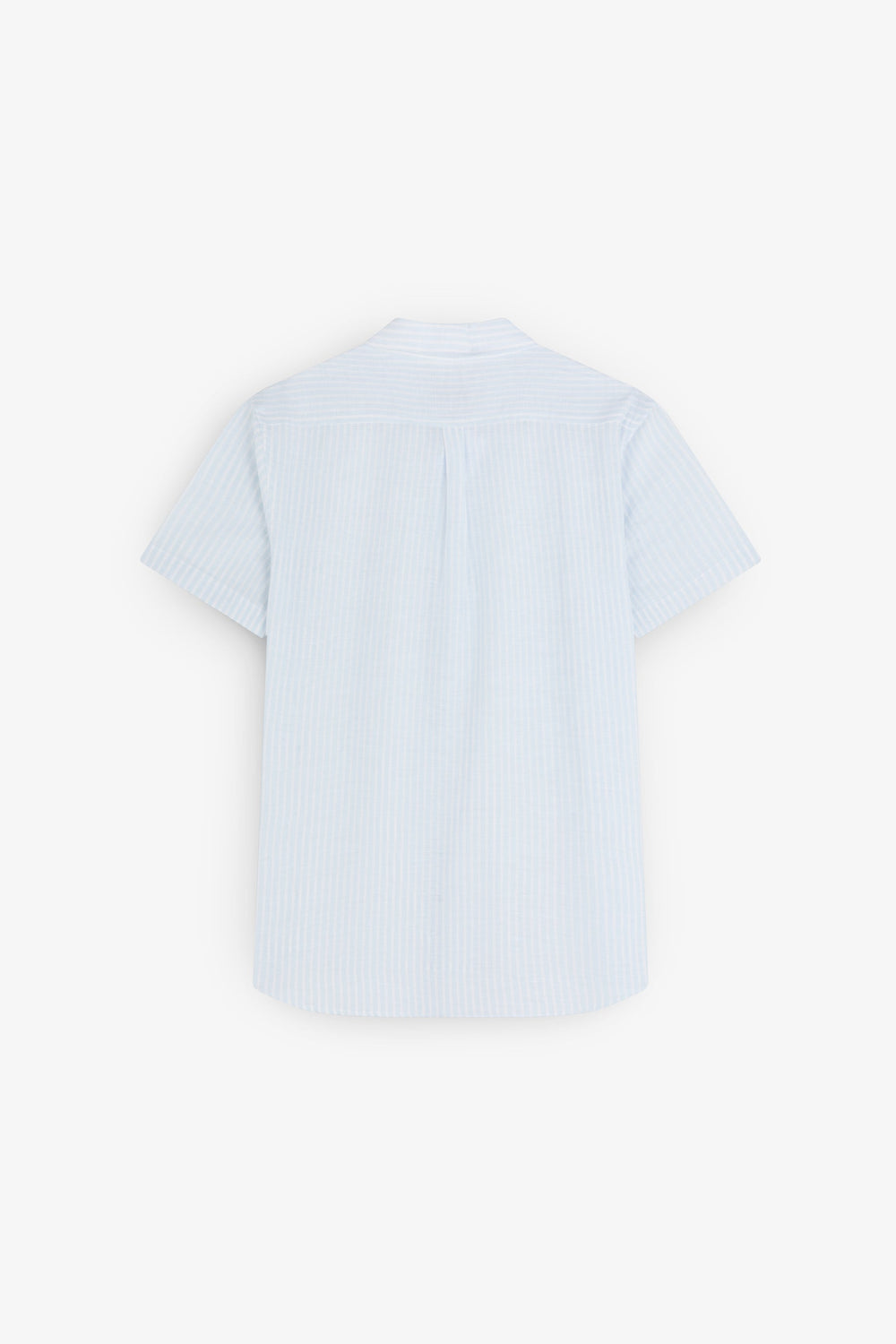 Camisa Resort confeccionada en mezcla de algodón y lino. Corte Regular Fit. Cuello pijamero. Cierre con botones. Manga corta.