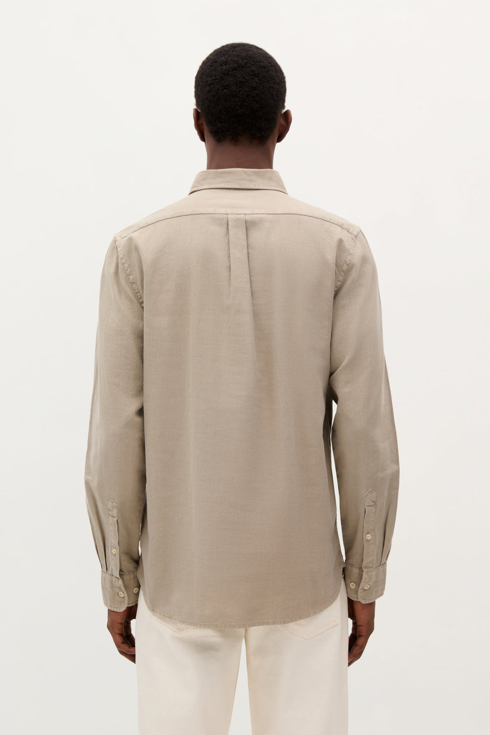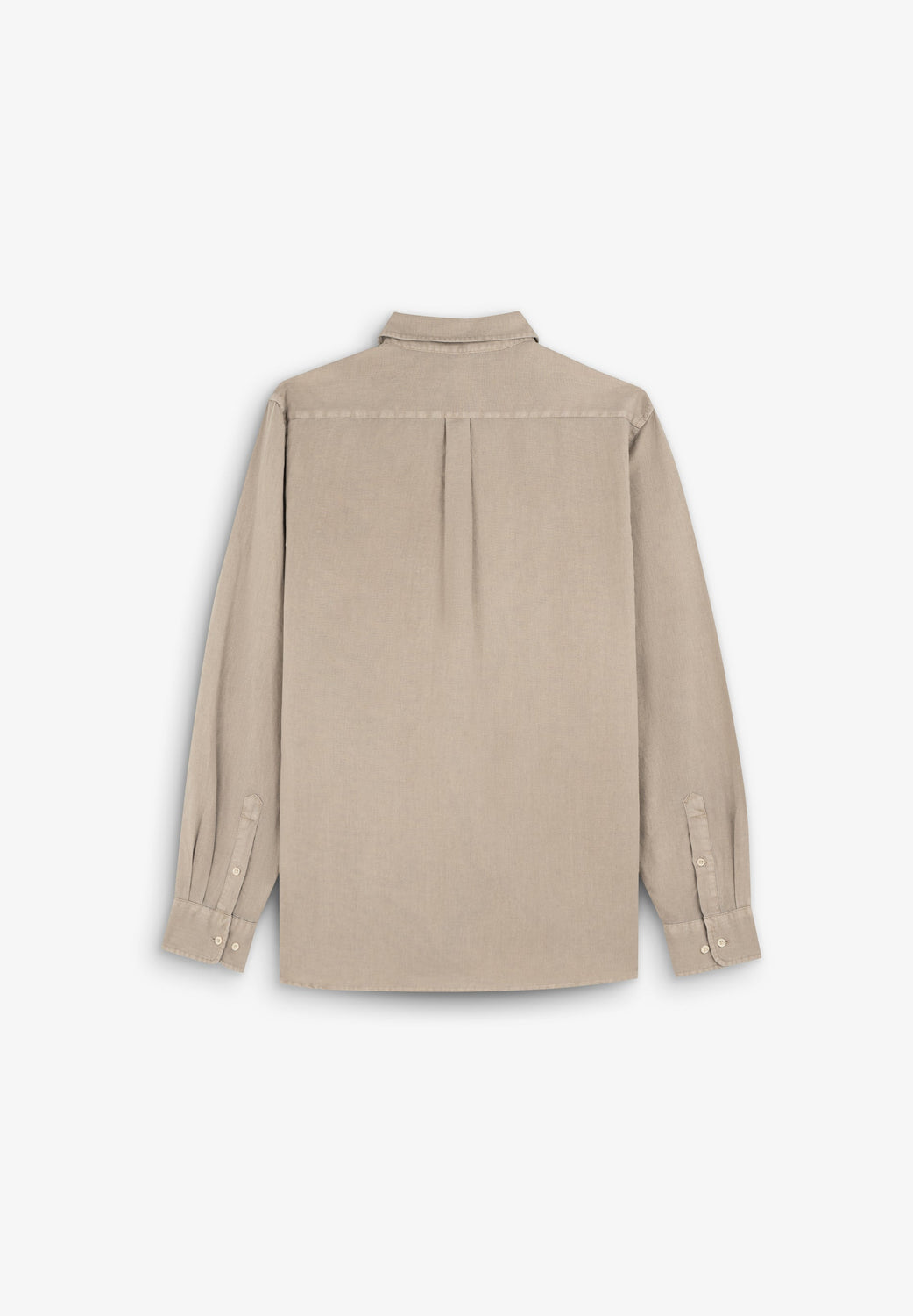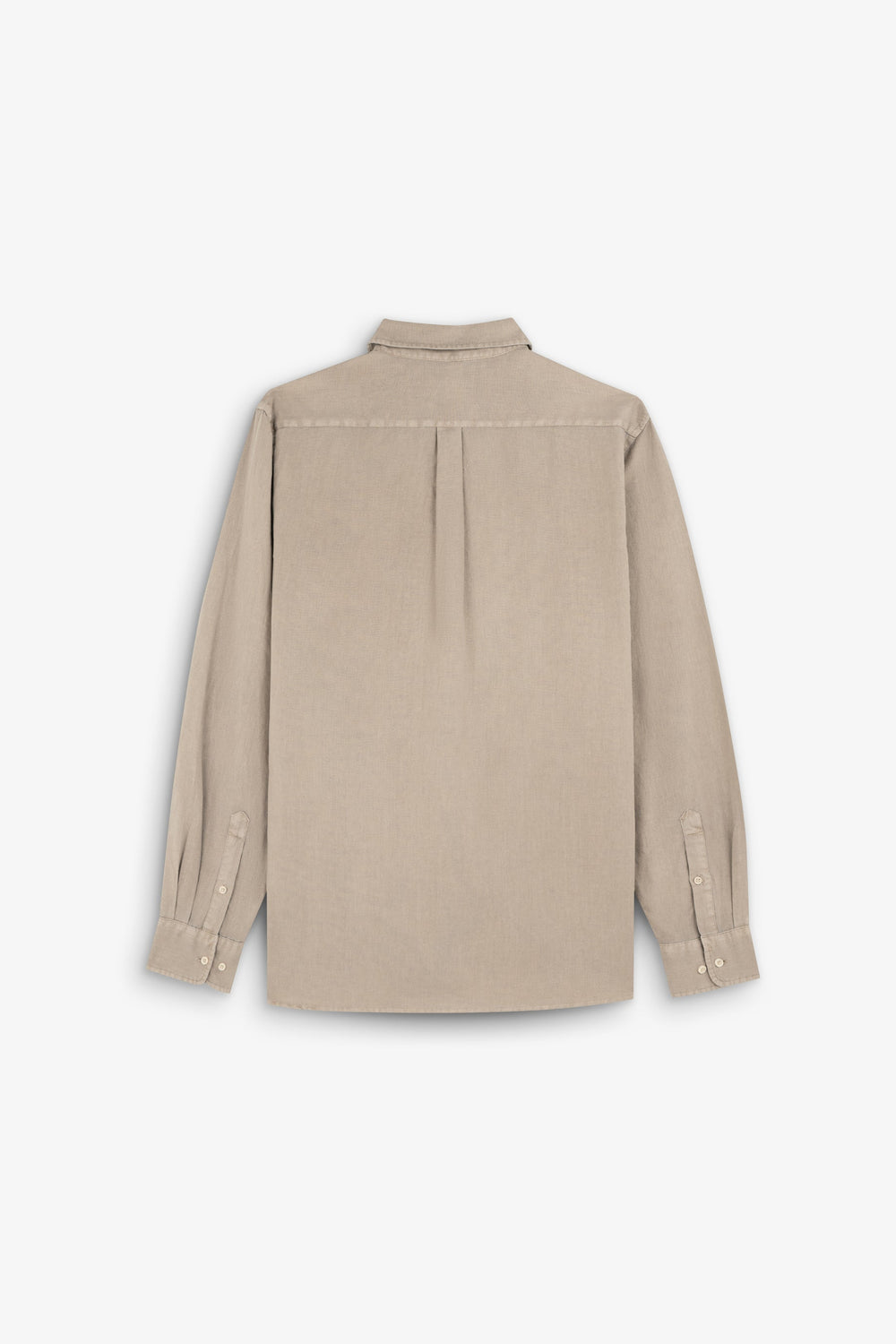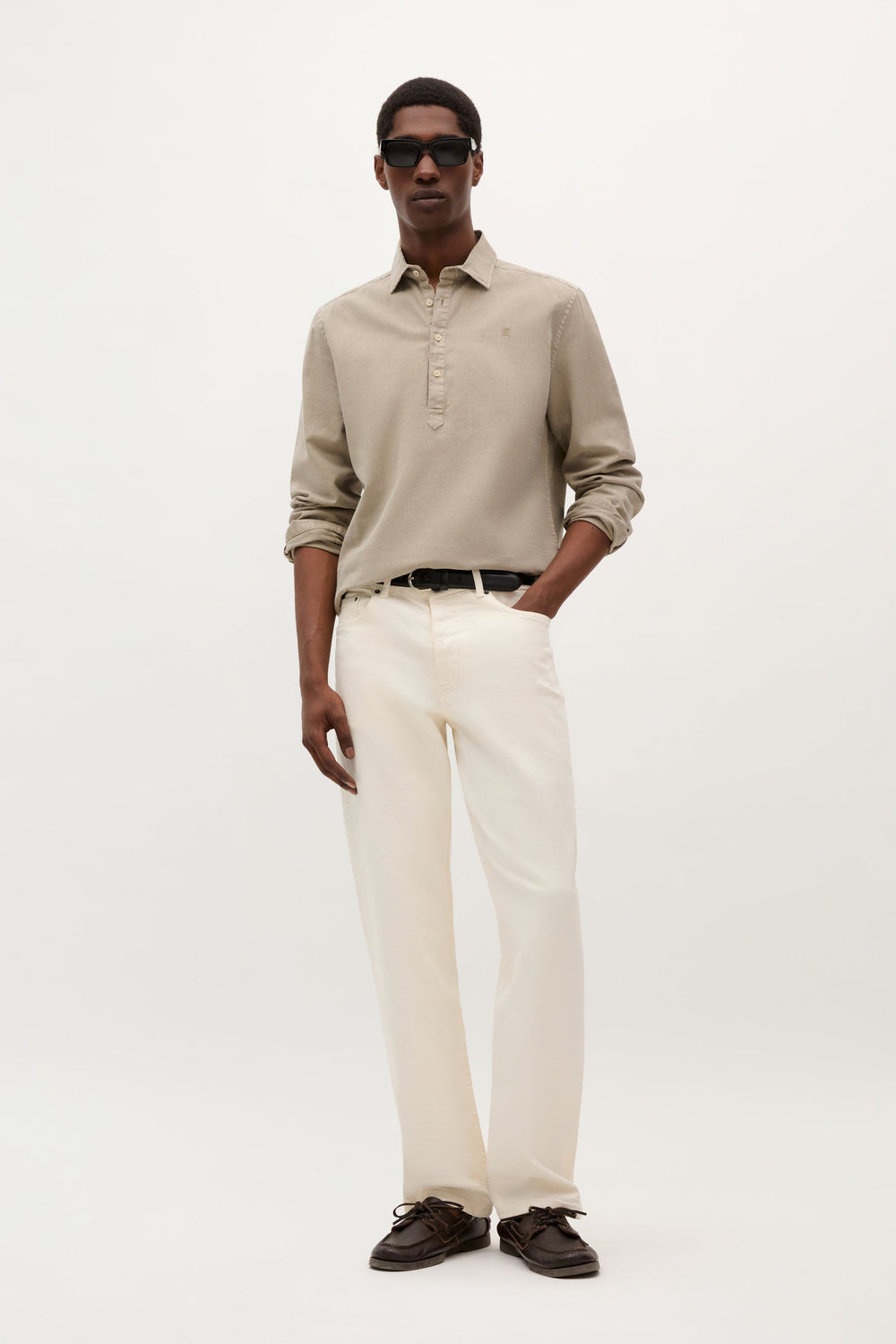 Camisa confeccionada en Algodón y Lino. Cerradura abotonada estilo polo. Manga Larga. Cierre en puños ajustable mediante botón. Monograma bordado a tono en parte frontal.