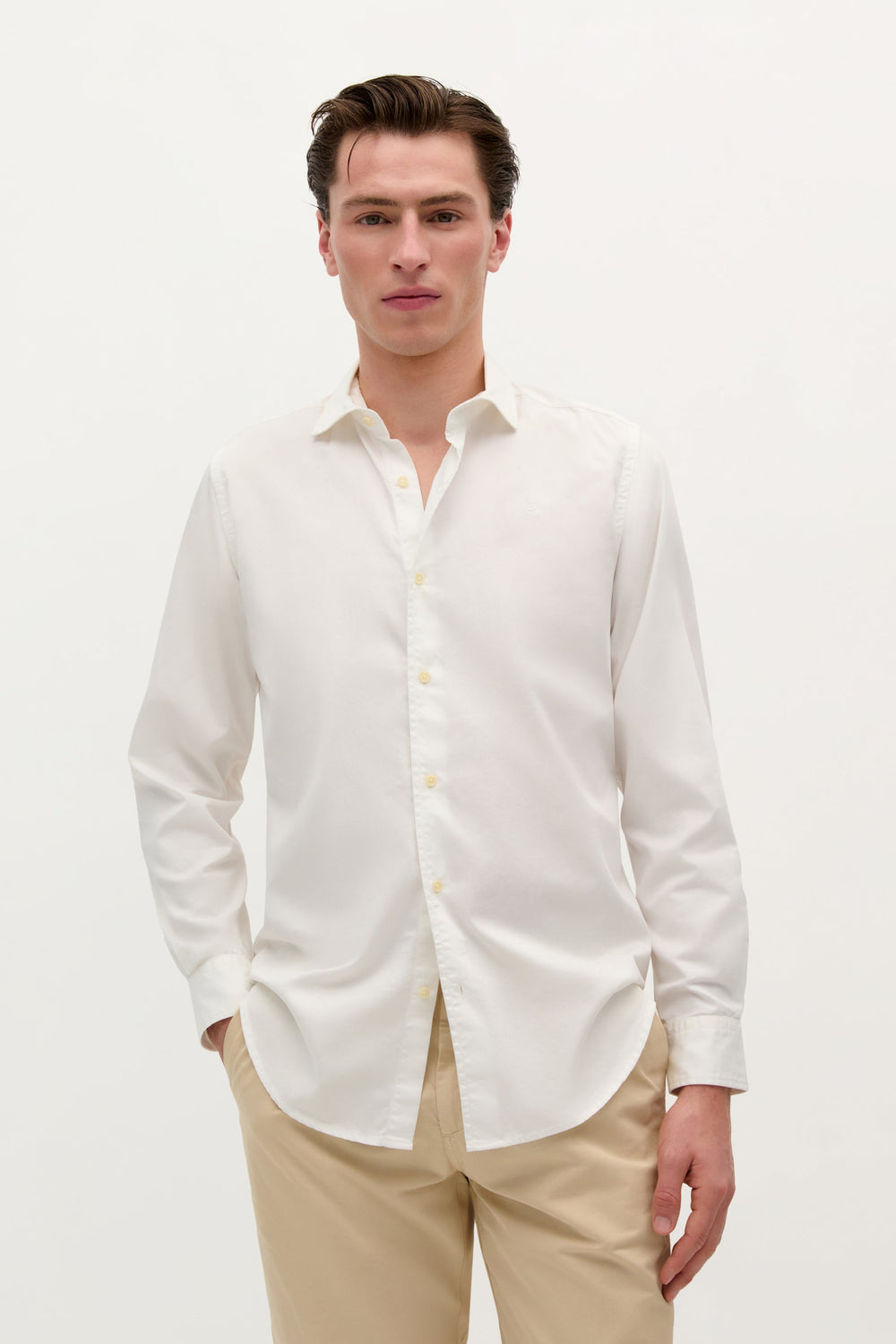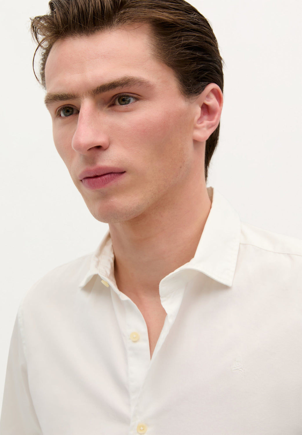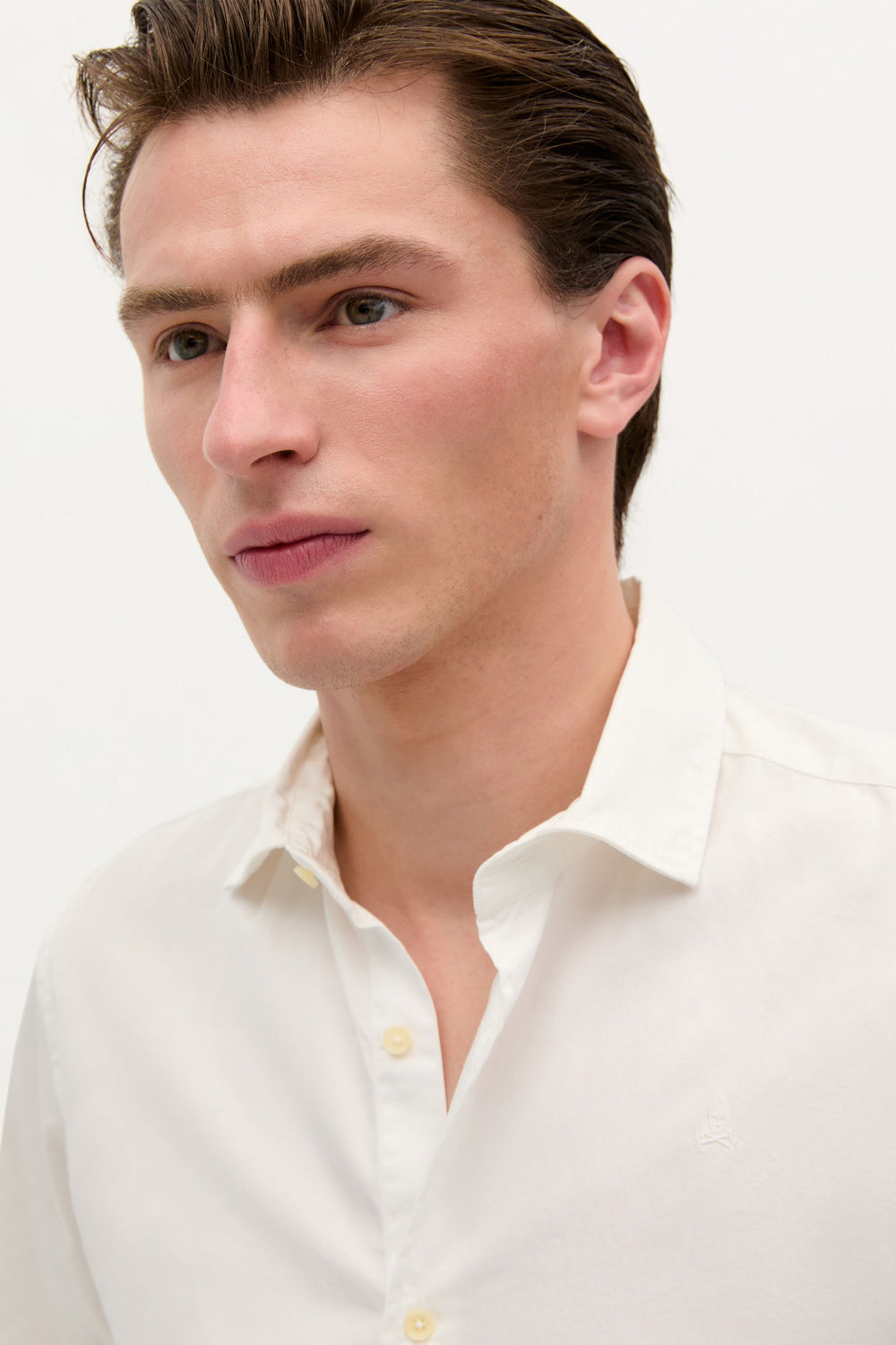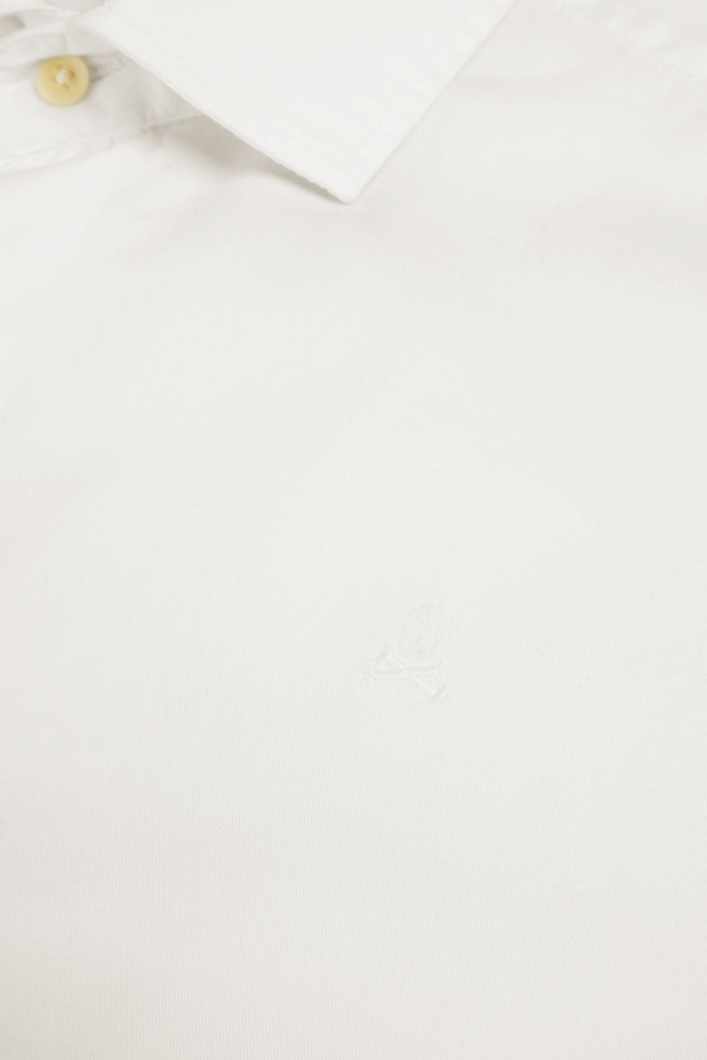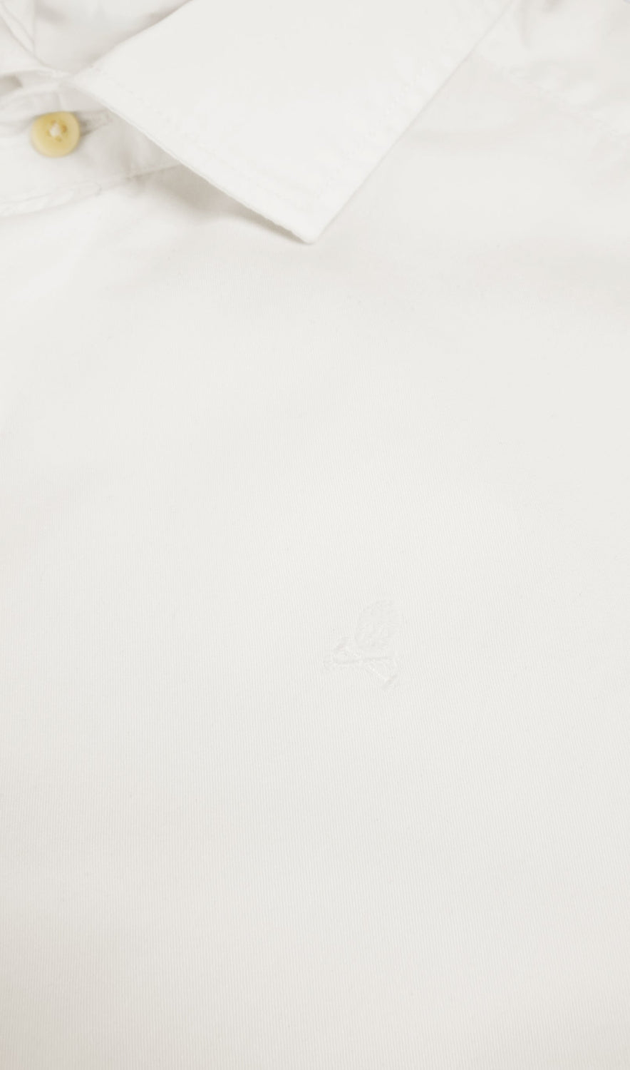 Camisa confeccionada en 100% algodón. Regular fit, cuello clásico y cierre con botones. Manga larga terminada en puño con botones y calavera bordada a tono.