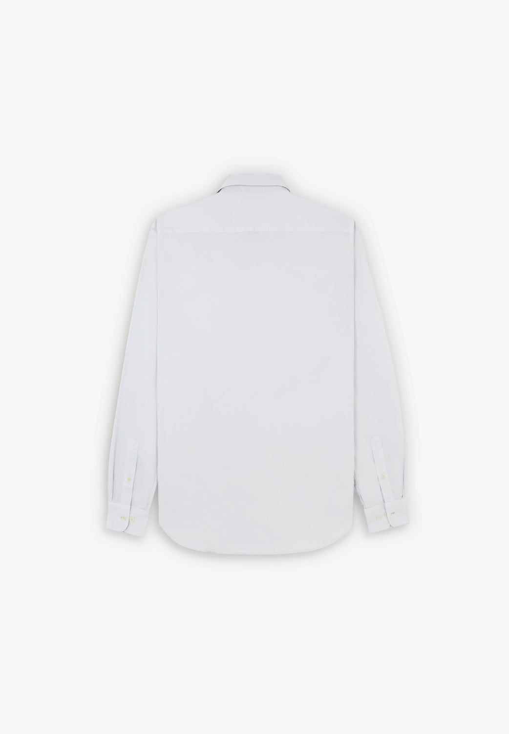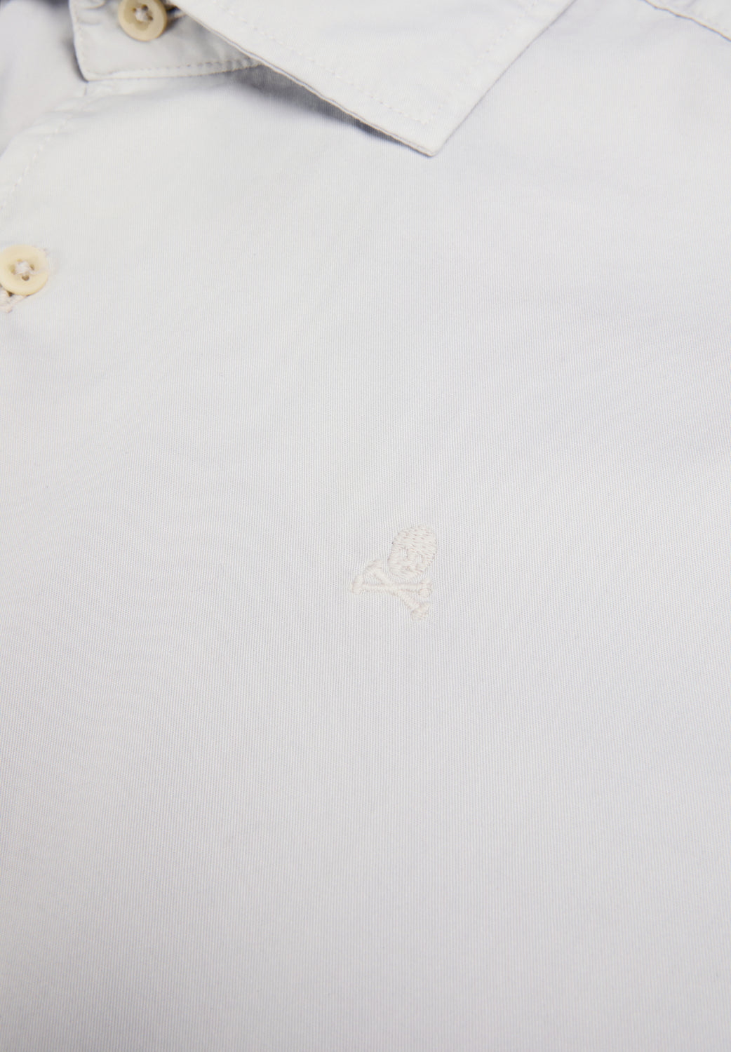 Camisa confeccionada en 100% algodón. Regular fit, cuello clásico y cierre con botones. Manga larga terminada en puño con botones y calavera bordada a tono.