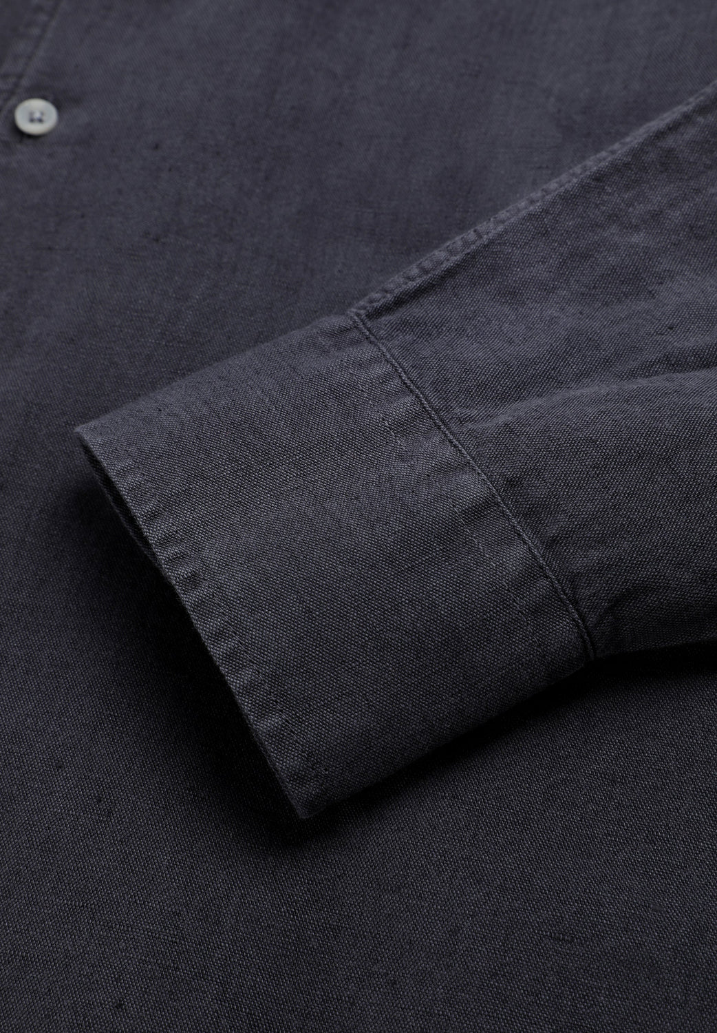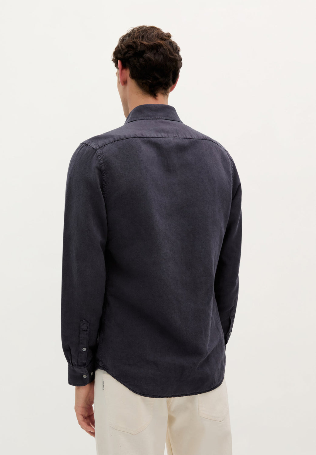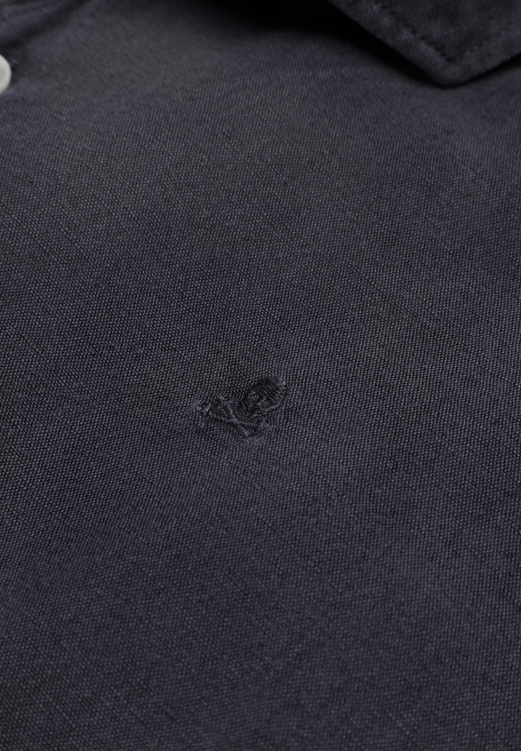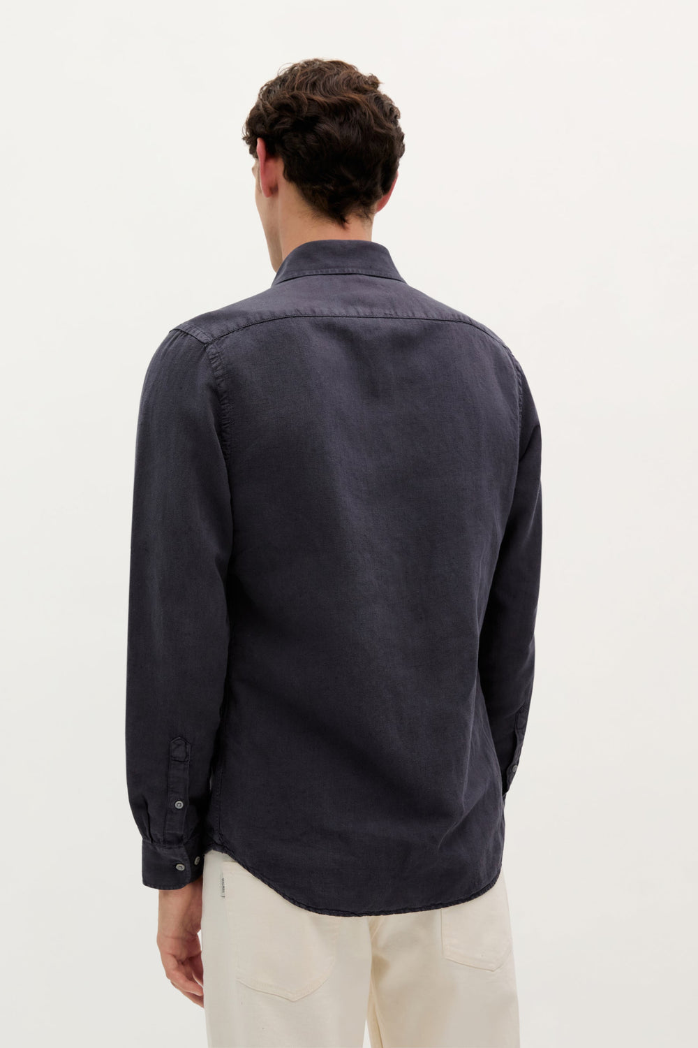 Camisa lino con calavera bordada a tono. Confeccionada en mezcla de lino y algodón. Corte regular Fit. Cuello cutaway. Cierre con botones. Manga larga terminada en puño con botones.