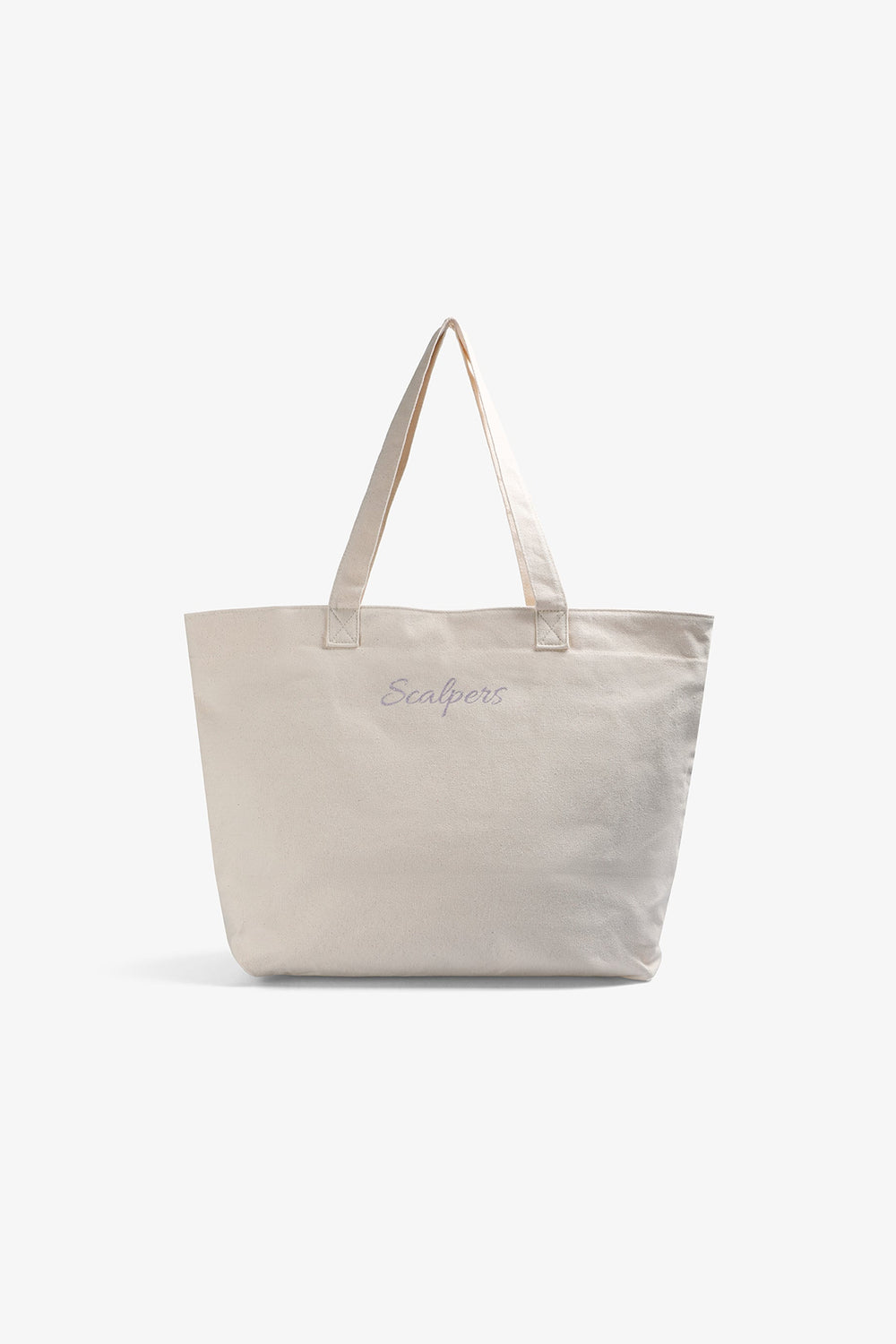 Bolso tipo shopper fabricado en tejido 100% Algodón BCI. Compartimento principal con cierre cremallera con detalle de logo. Dispone de dos asas de mano. Detalle de logo print con glitter en frontal y bordado en parte trasera.