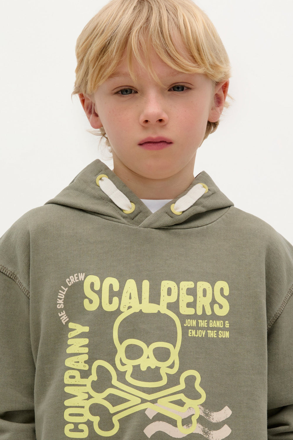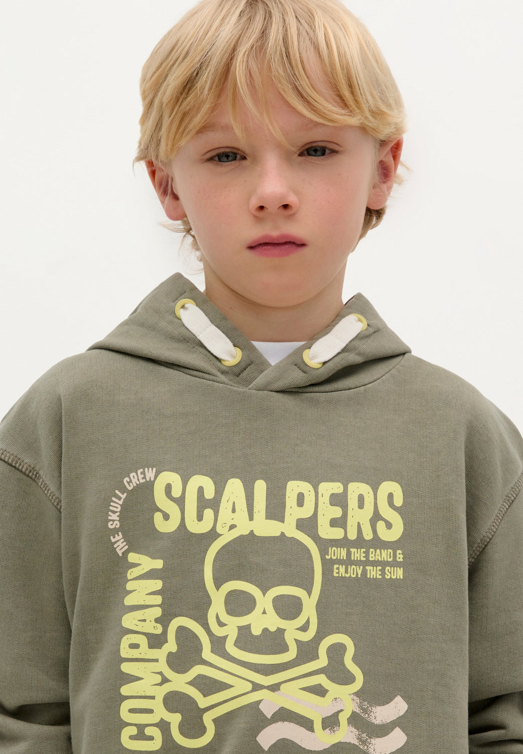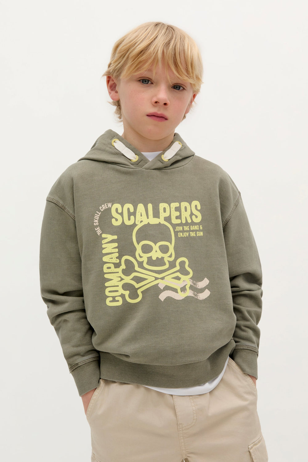 Sudadera con print en parte delantera a contraste. Confeccionada en 100% Algodón BCI. Corte Regular fit. Cuello con capucha con detalle de cordones decorativos. Manga larga. Acabados en rib.