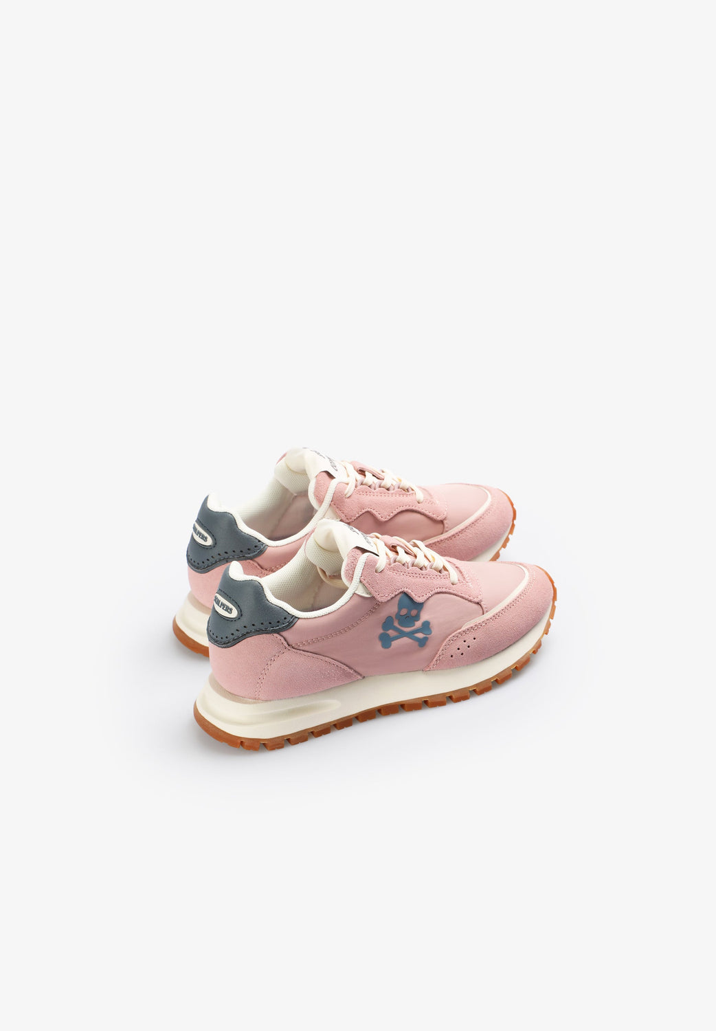 Sneakers confeccionada en nylon con detalles en serraje. Cierre con cordones, suela de goma pronunciada dentada y malla en la parte delantera. Calavera lateral y etiqueta personalizada.