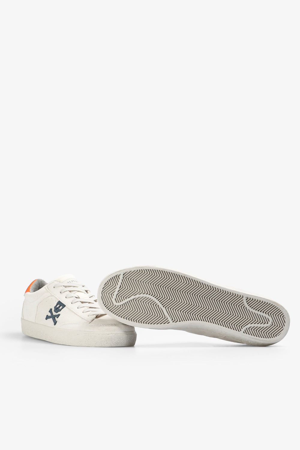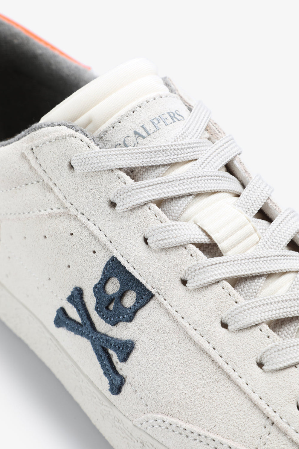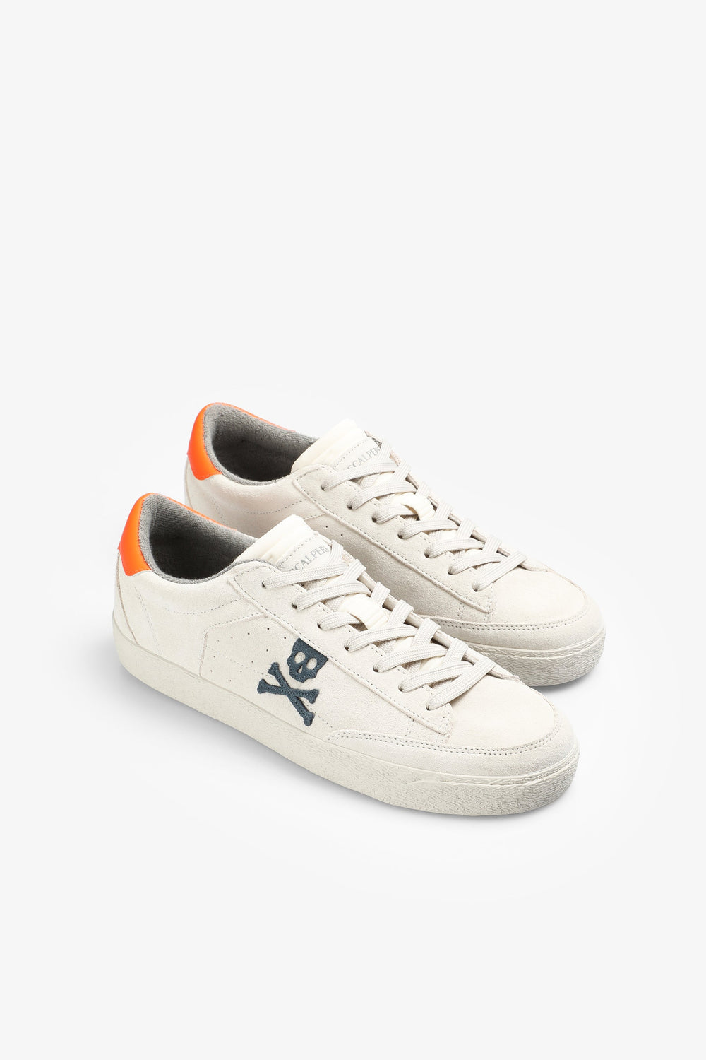 Sneakers bajas con calavera lateral a contraste. Confeccionadas en ante y piel de napa. Cierre con cordones. Suela de goma. Detalle en talón a contraste.