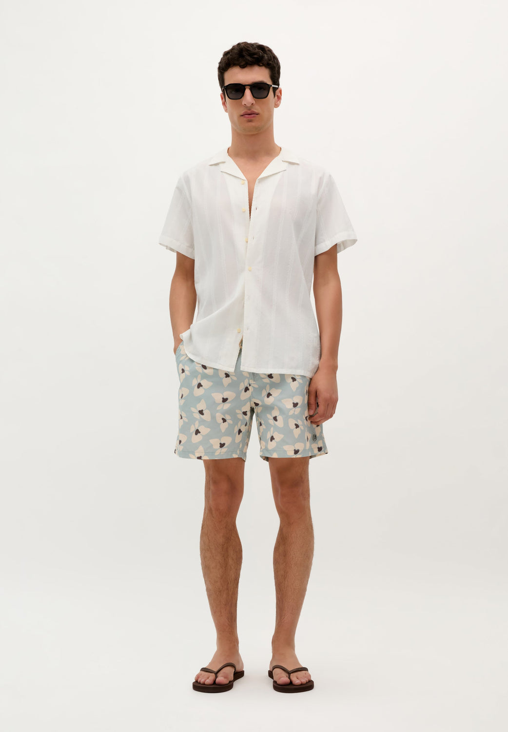 Bañador confeccionado en tejido técnico. Cintura elástica ajustable con cordón. Bolsillos laterales y detalle de bolsillo trasero de plastrón. Forro interior.