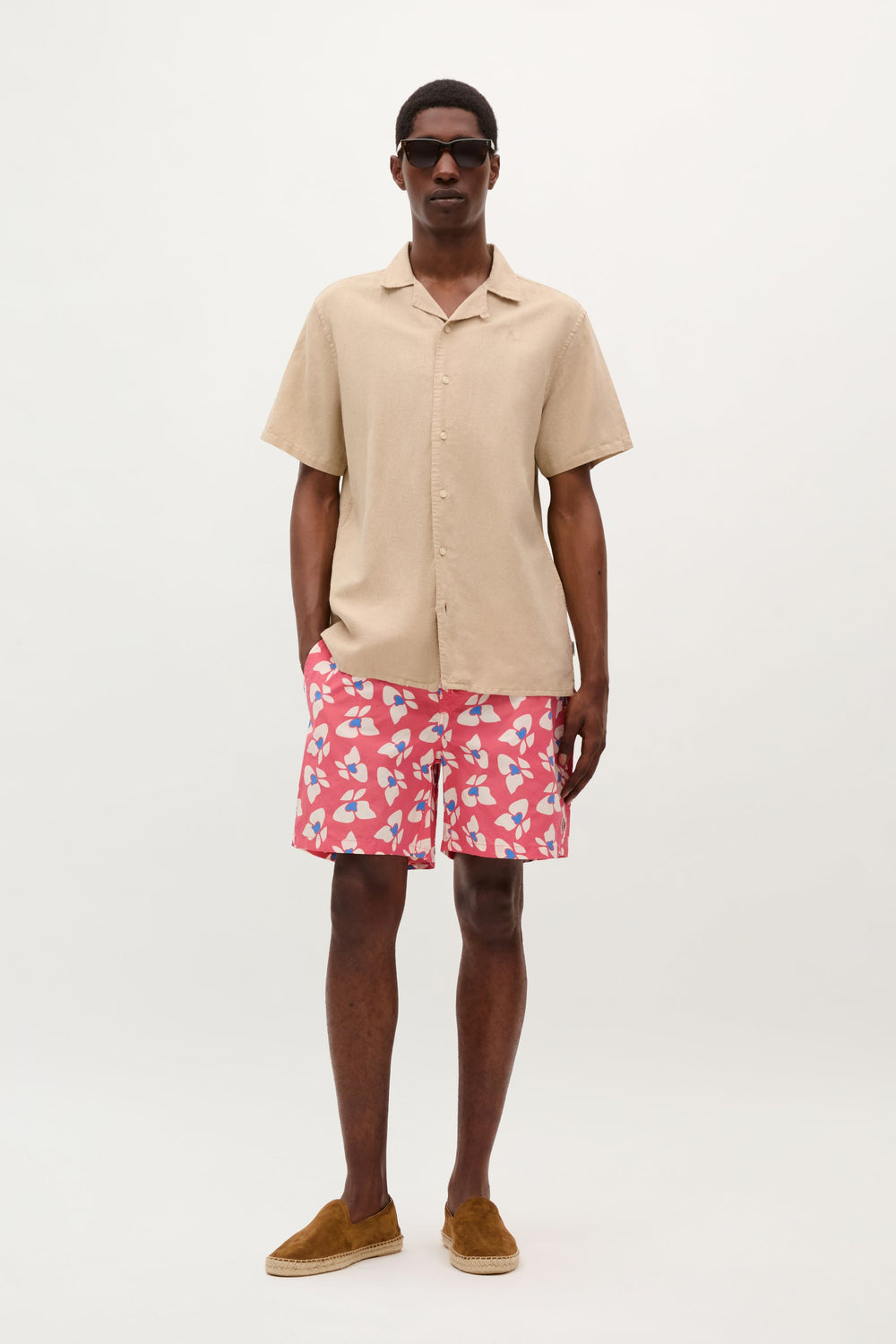 Bañador confeccionado en tejido técnico. Cintura elástica ajustable con cordón. Bolsillos laterales y detalle de bolsillo trasero de plastrón. Forro interior.