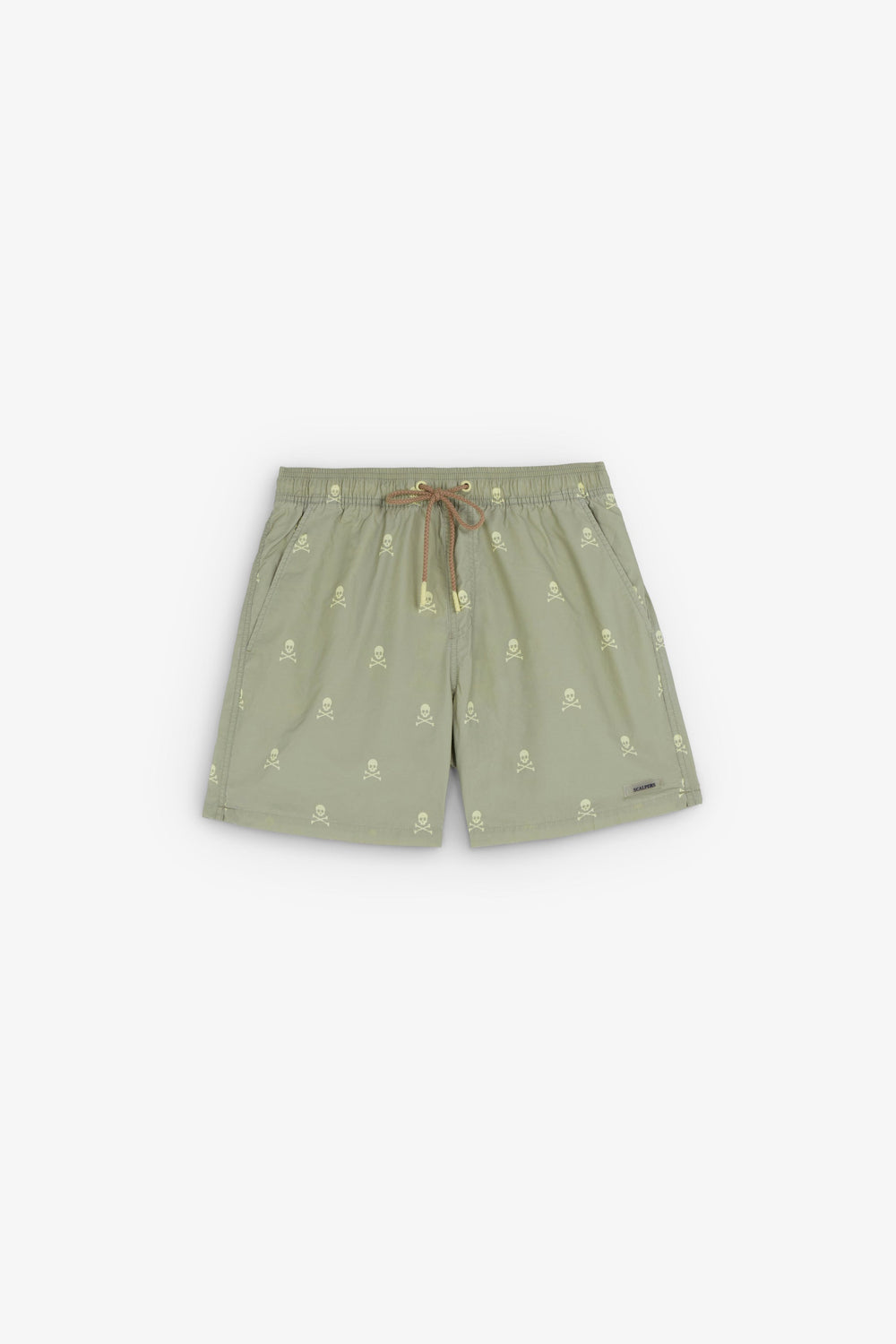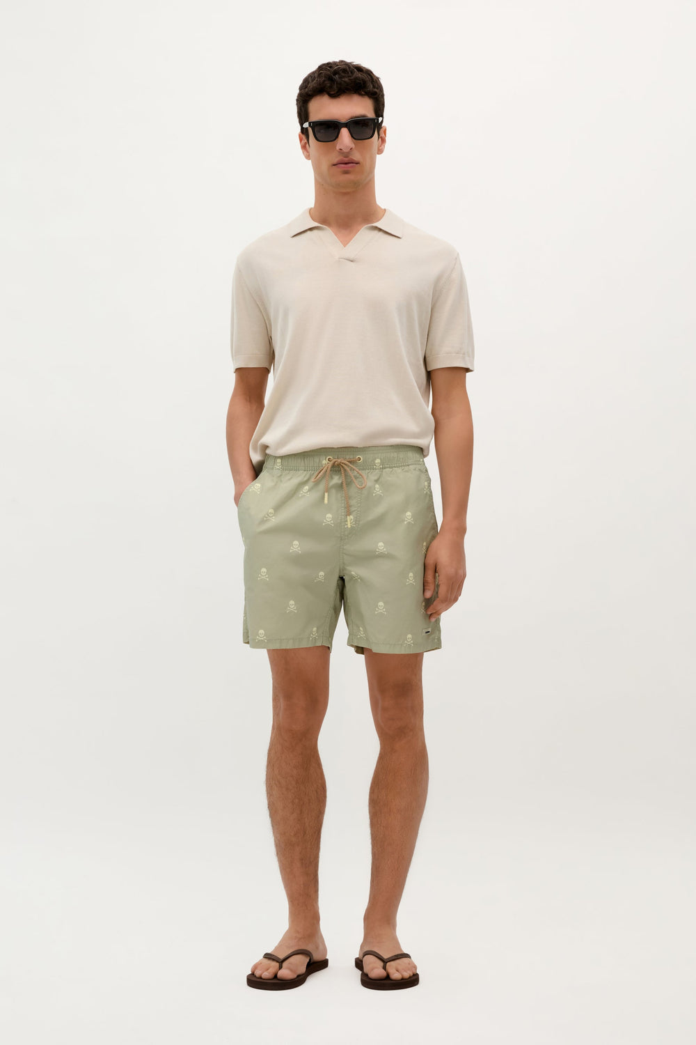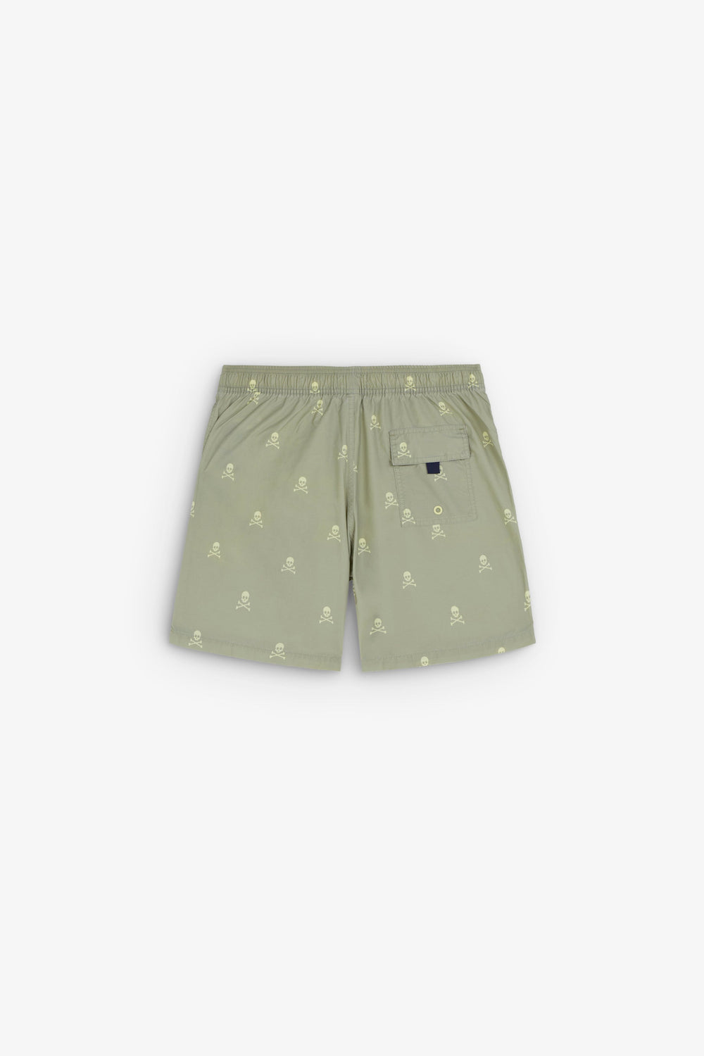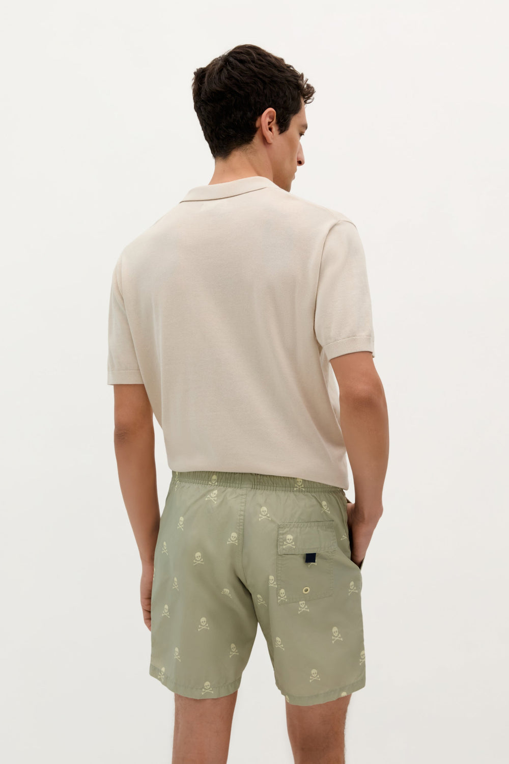 Bañador confeccionado en Algodón y Nailon. Cintura elástica ajustable con cordón. Diseño de monograma impreso con acabado mate. Rejilla interior. Bolsillos laterales y trasero con cierre por velcro. Detalle de logo engomado en frontal izquierdo.