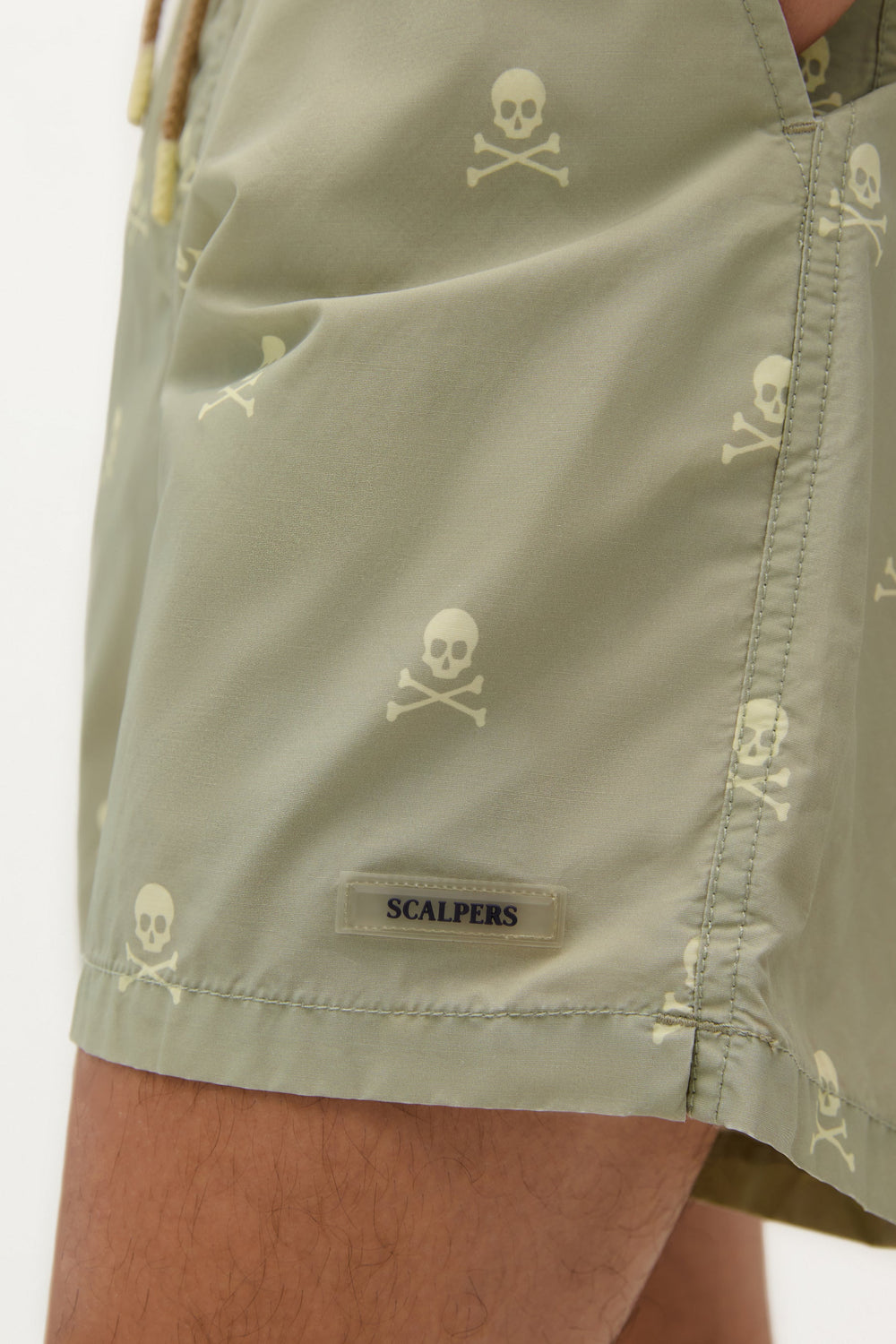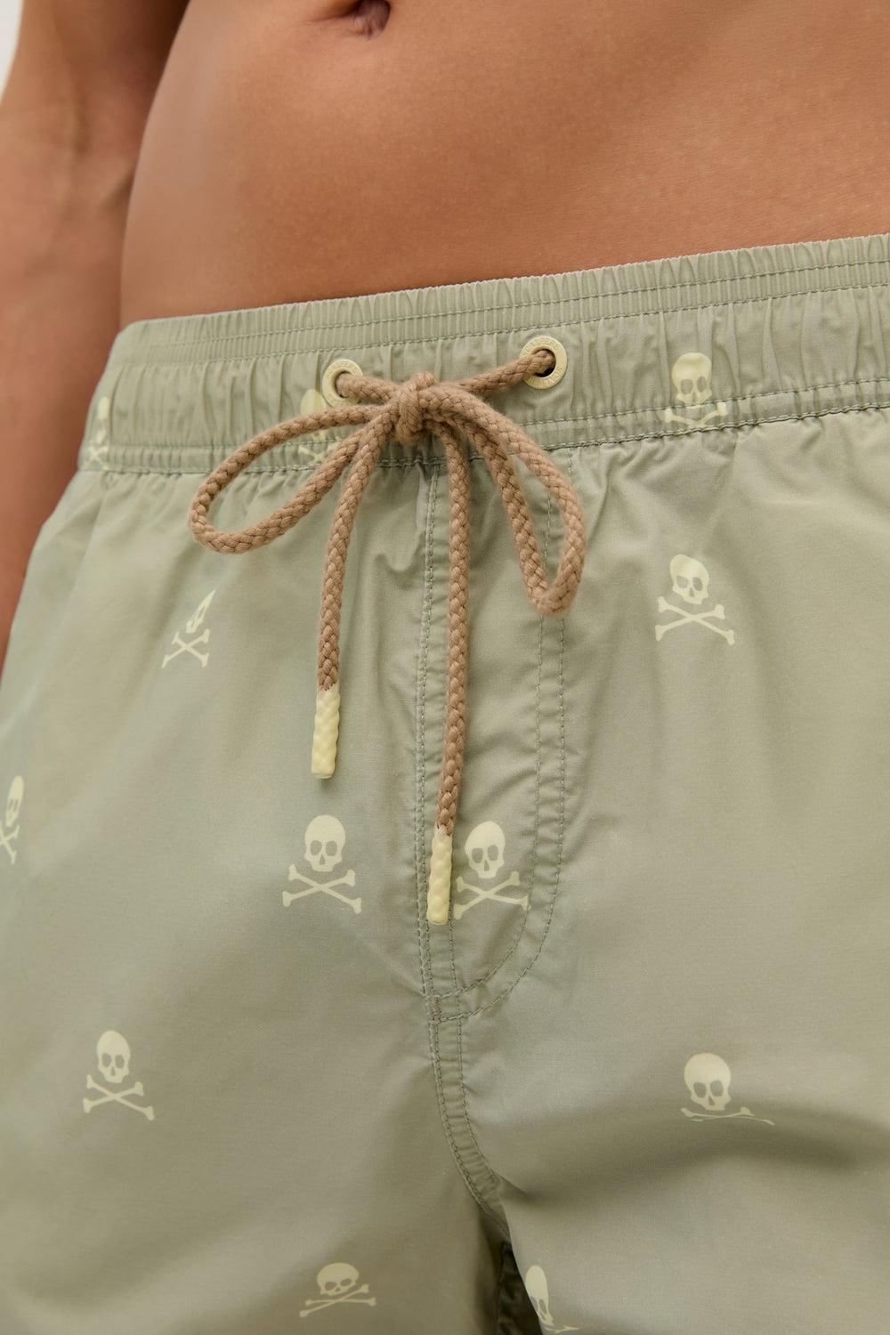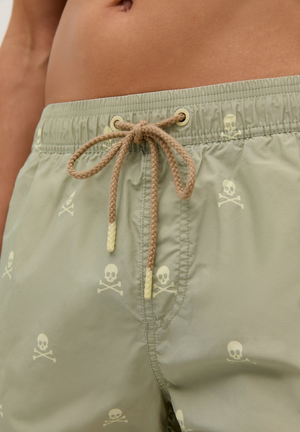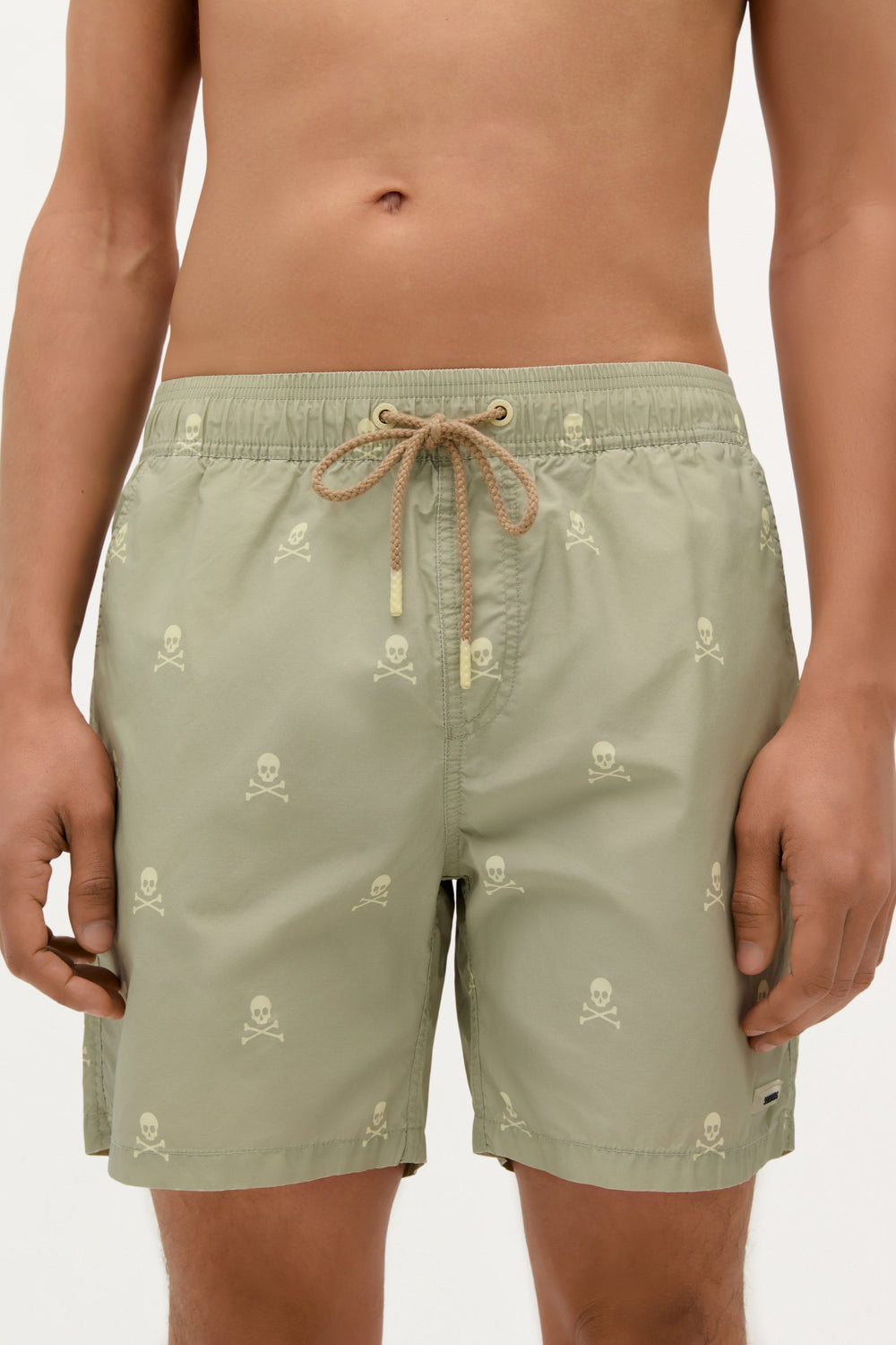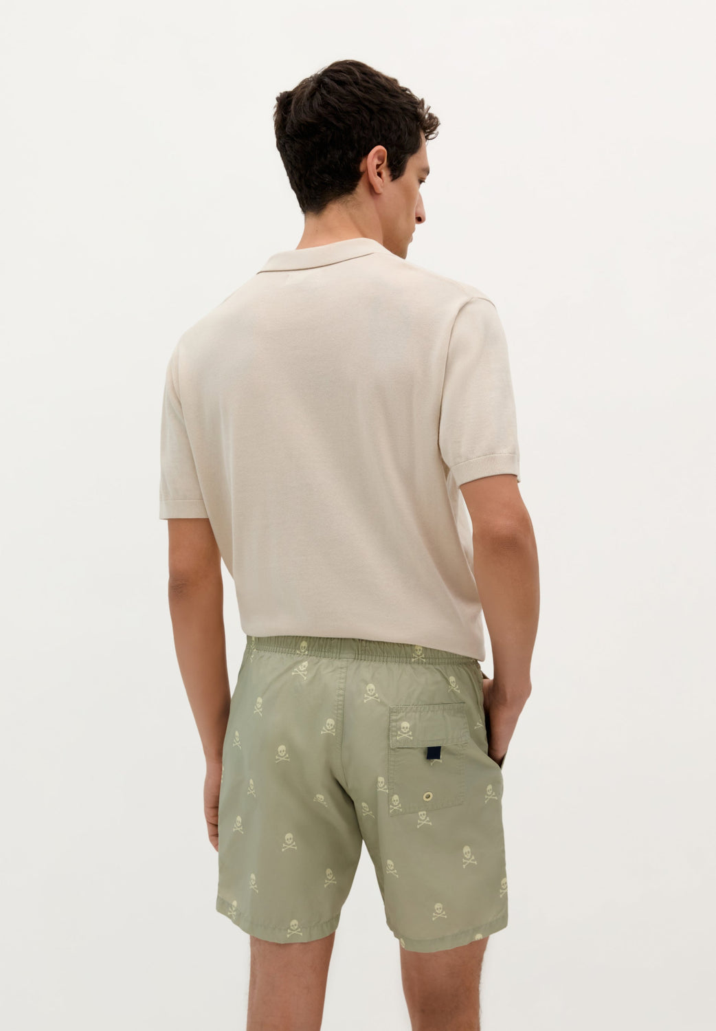 Bañador confeccionado en Algodón y Nailon. Cintura elástica ajustable con cordón. Diseño de monograma impreso con acabado mate. Rejilla interior. Bolsillos laterales y trasero con cierre por velcro. Detalle de logo engomado en frontal izquierdo.
