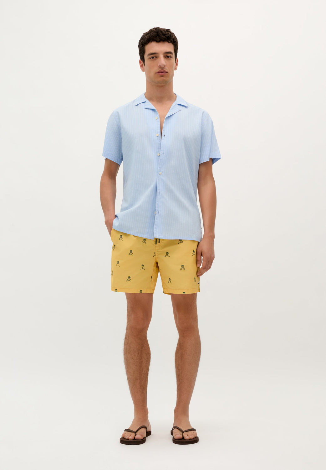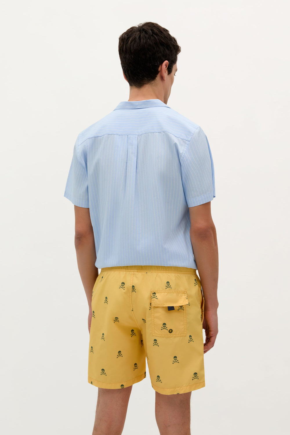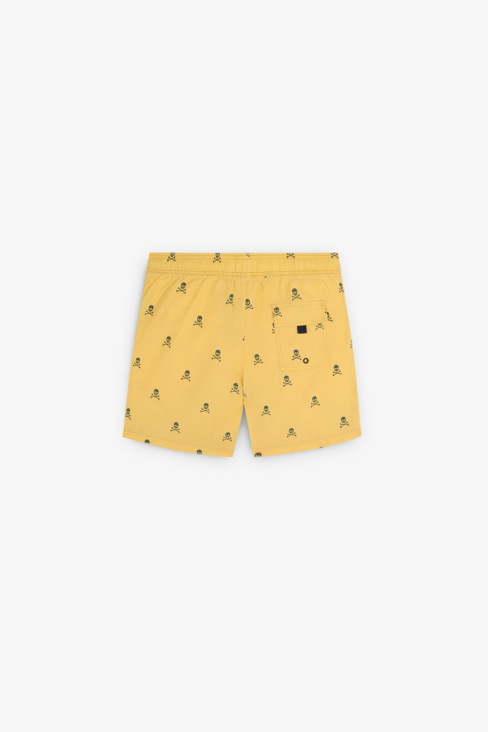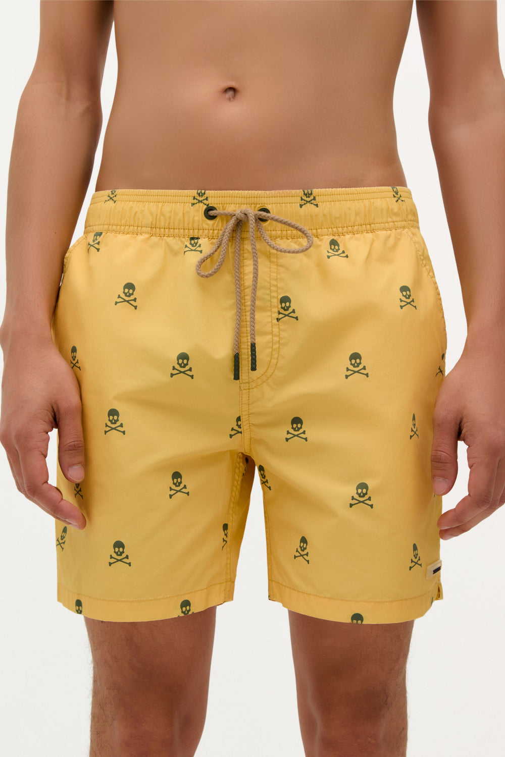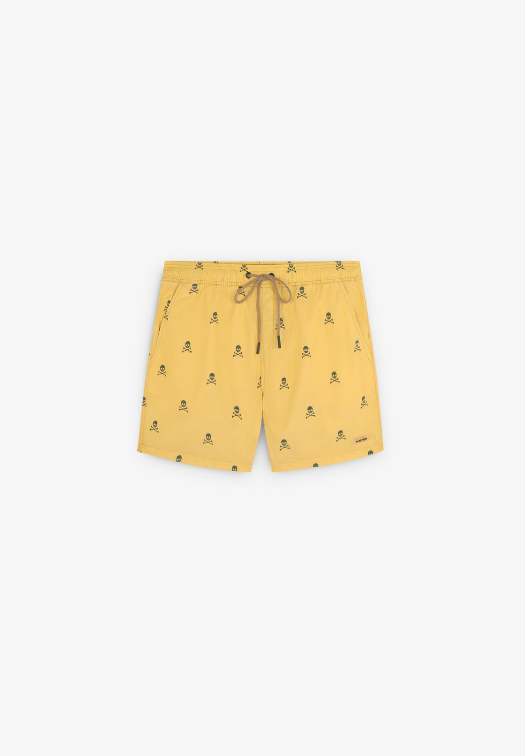 Bañador confeccionado en Algodón y Nailon. Cintura elástica ajustable con cordón. Diseño de monograma impreso con acabado mate. Rejilla interior. Bolsillos laterales y trasero con cierre por velcro. Detalle de logo engomado en frontal izquierdo.