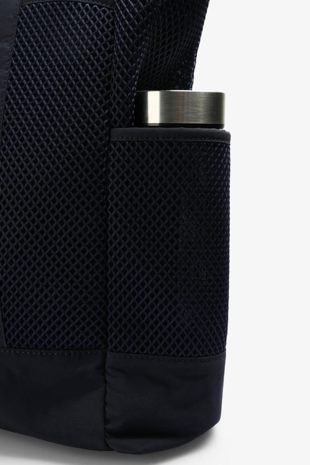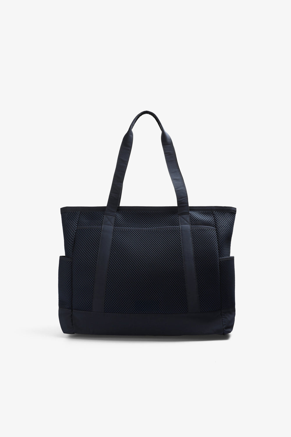 Bolsa confeccionada en tejido técnico. Cierre con cremallera y detalles de malla. bolsillos exteriores de malla e interior con cremallera. Forro interior. Detalle parche logo engomado.