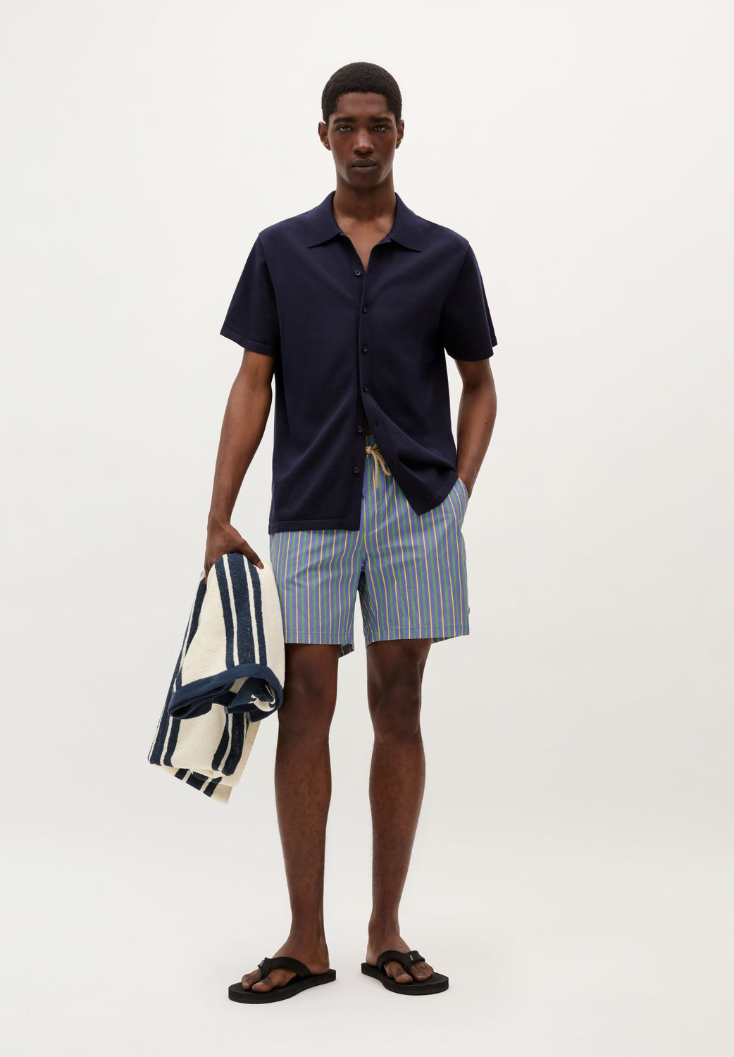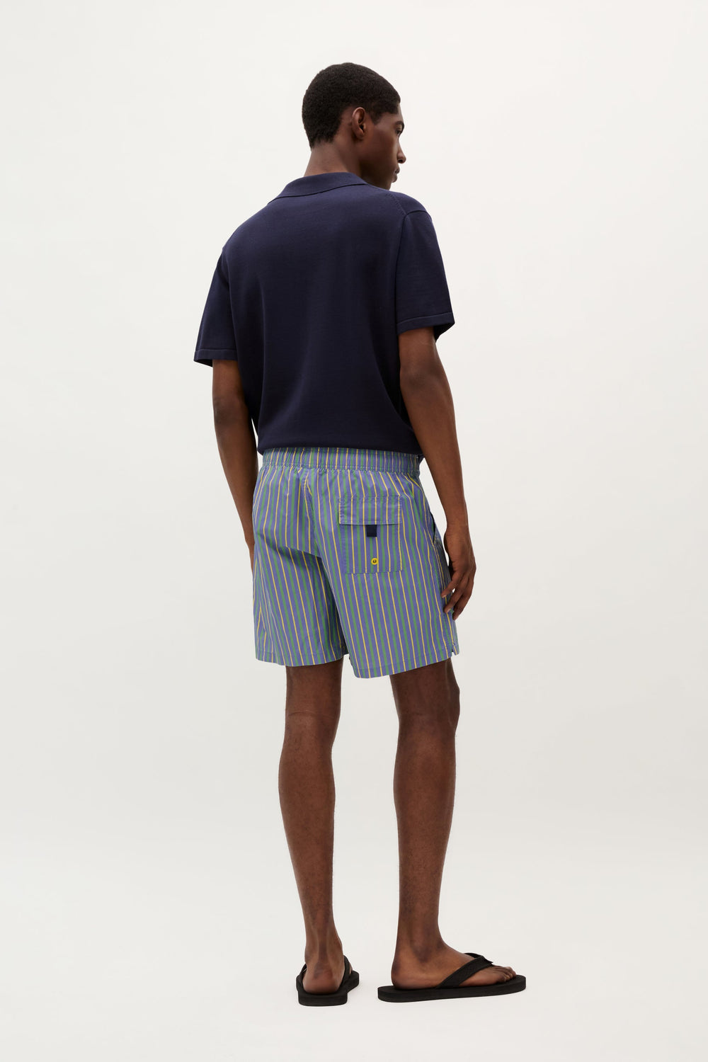 Bañador confeccionado en tejido técnico. Cintura elástica ajustable con cordón. Bolsillos laterales y detalle de bolsillo trasero de plastrón. Forro interior.