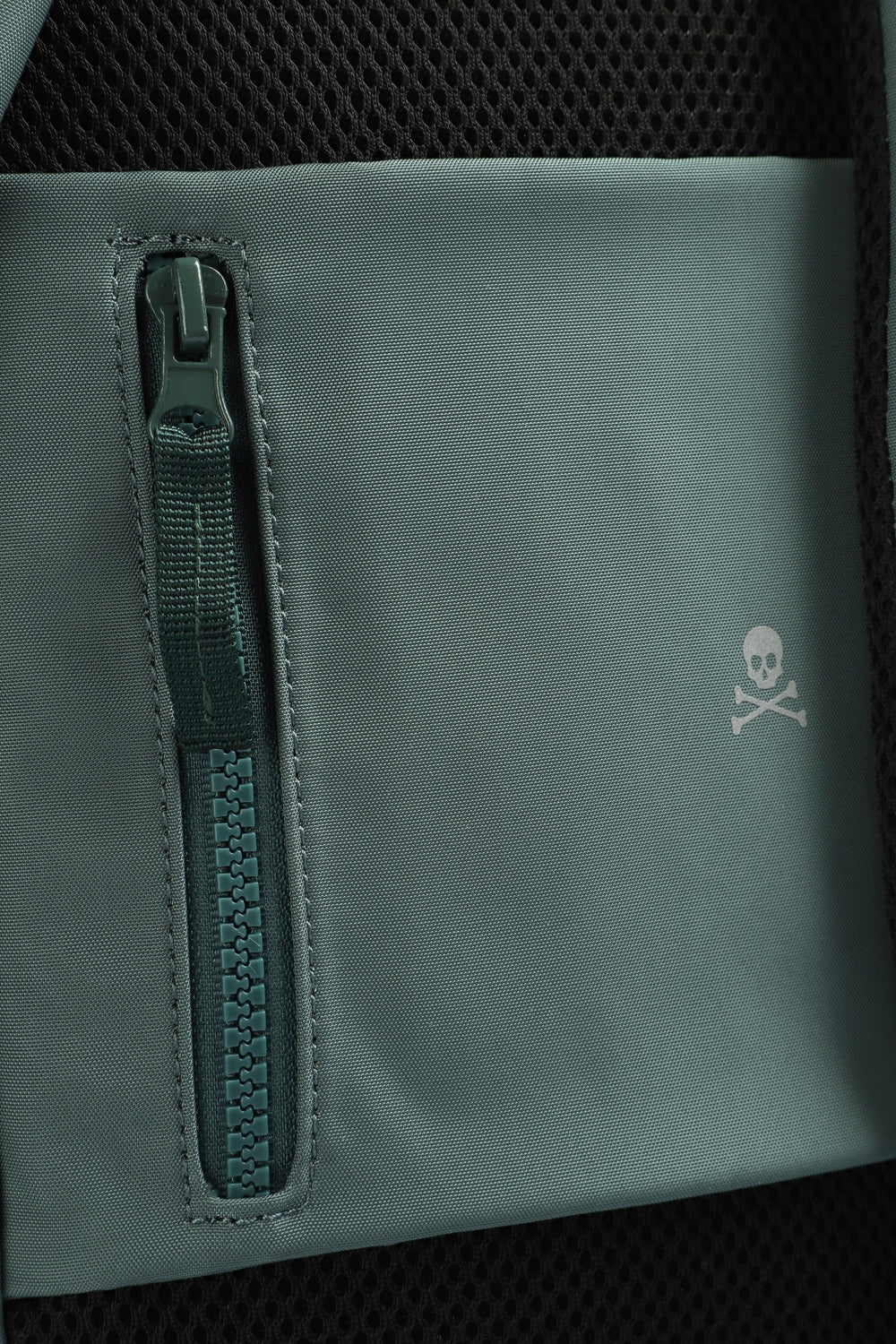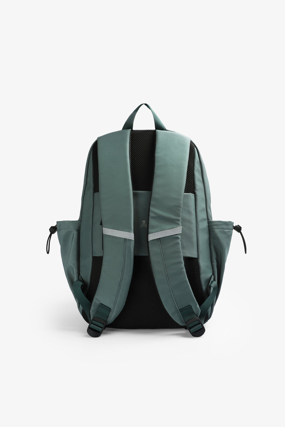 Mochila confeccionado en tejido técnico. Dos compartimentos principales con cierre por cremallera. Bolsillos laterales con cierre por tiras ajustables. Bolsillos interiores. Detalle de logotipos. Refuerzo de almohadillas.