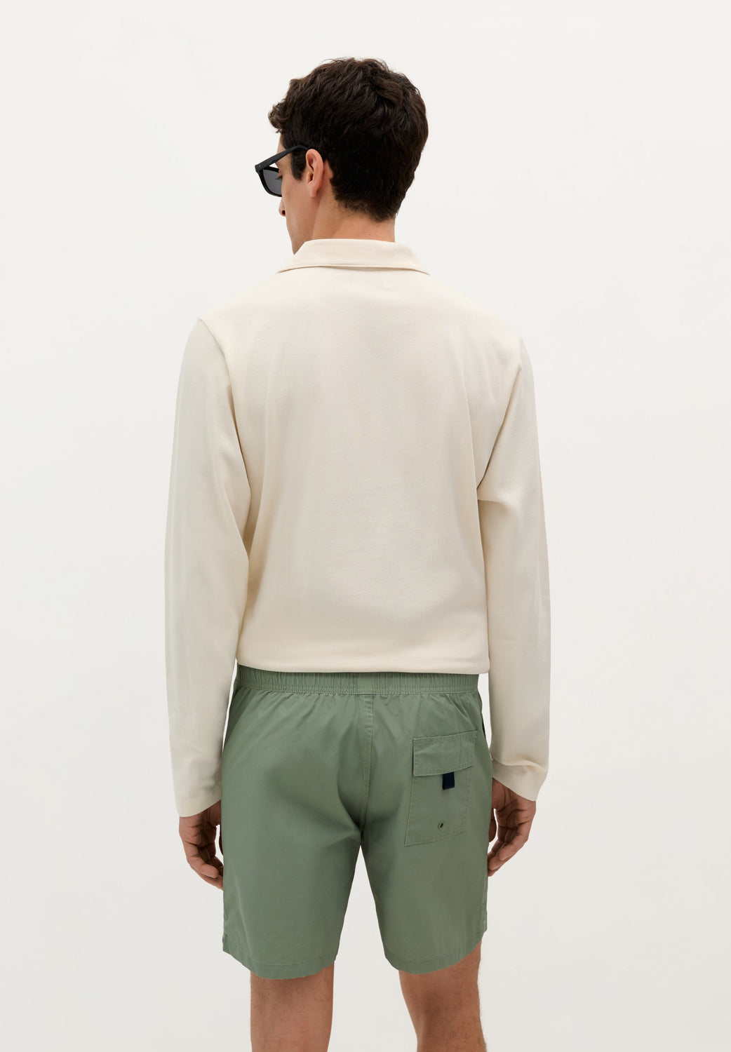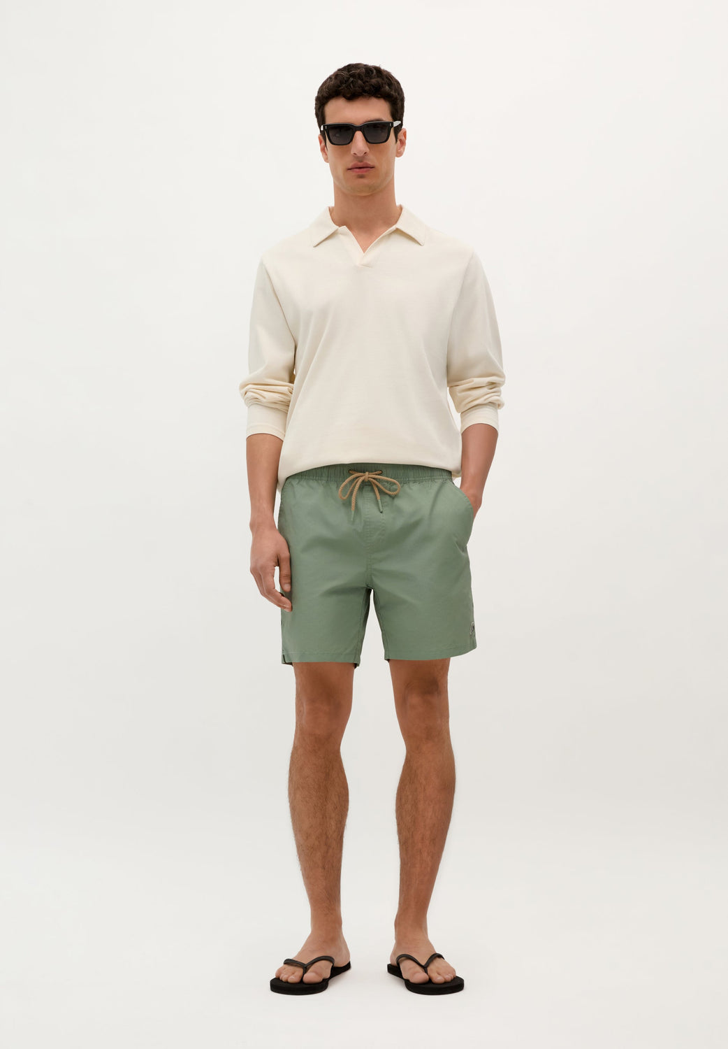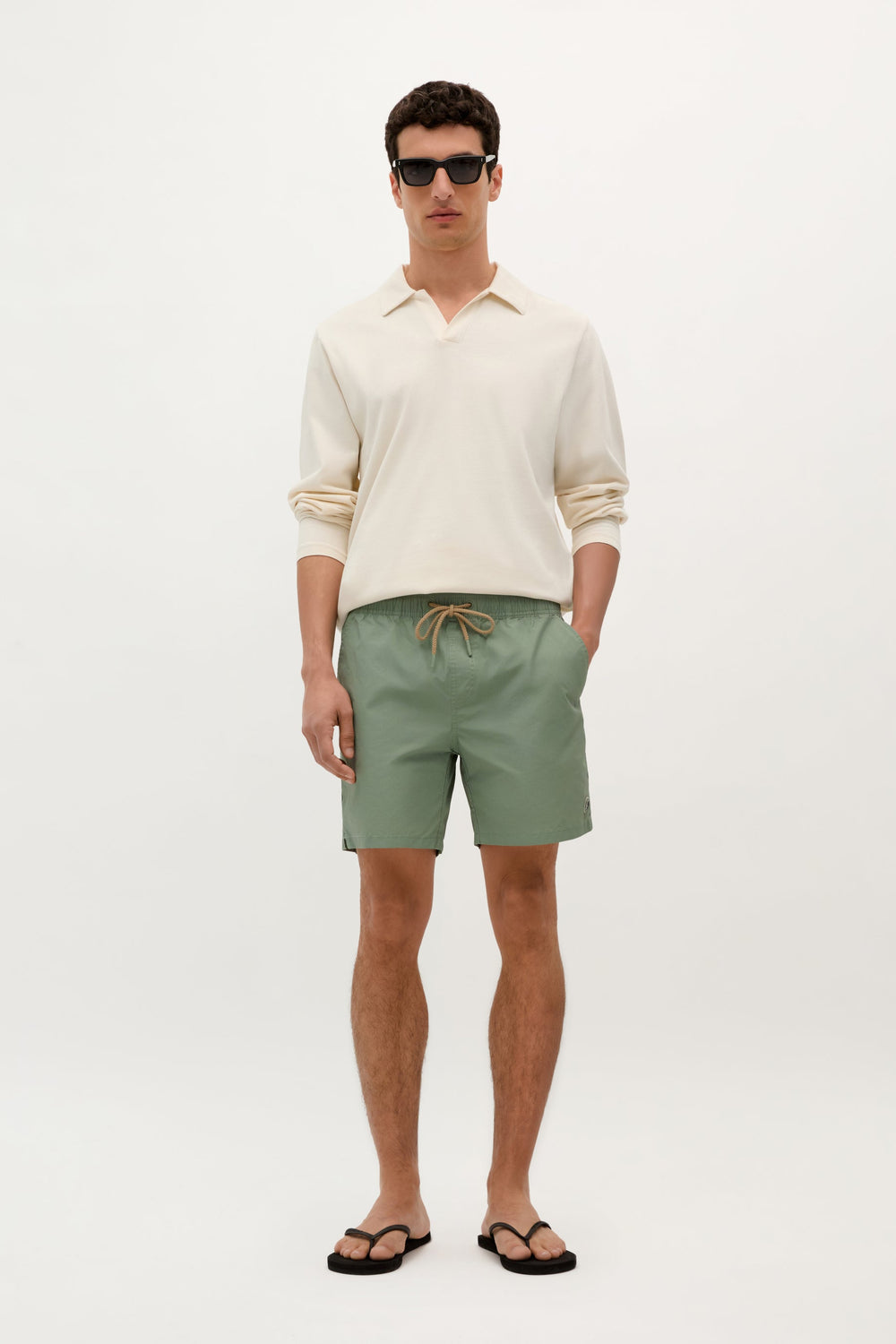 Bañador confeccionado en tejido técnico. Cintura elástica ajustable con cordón. Bolsillos laterales y detalle de bolsillo trasero de plastrón. Forro interior.