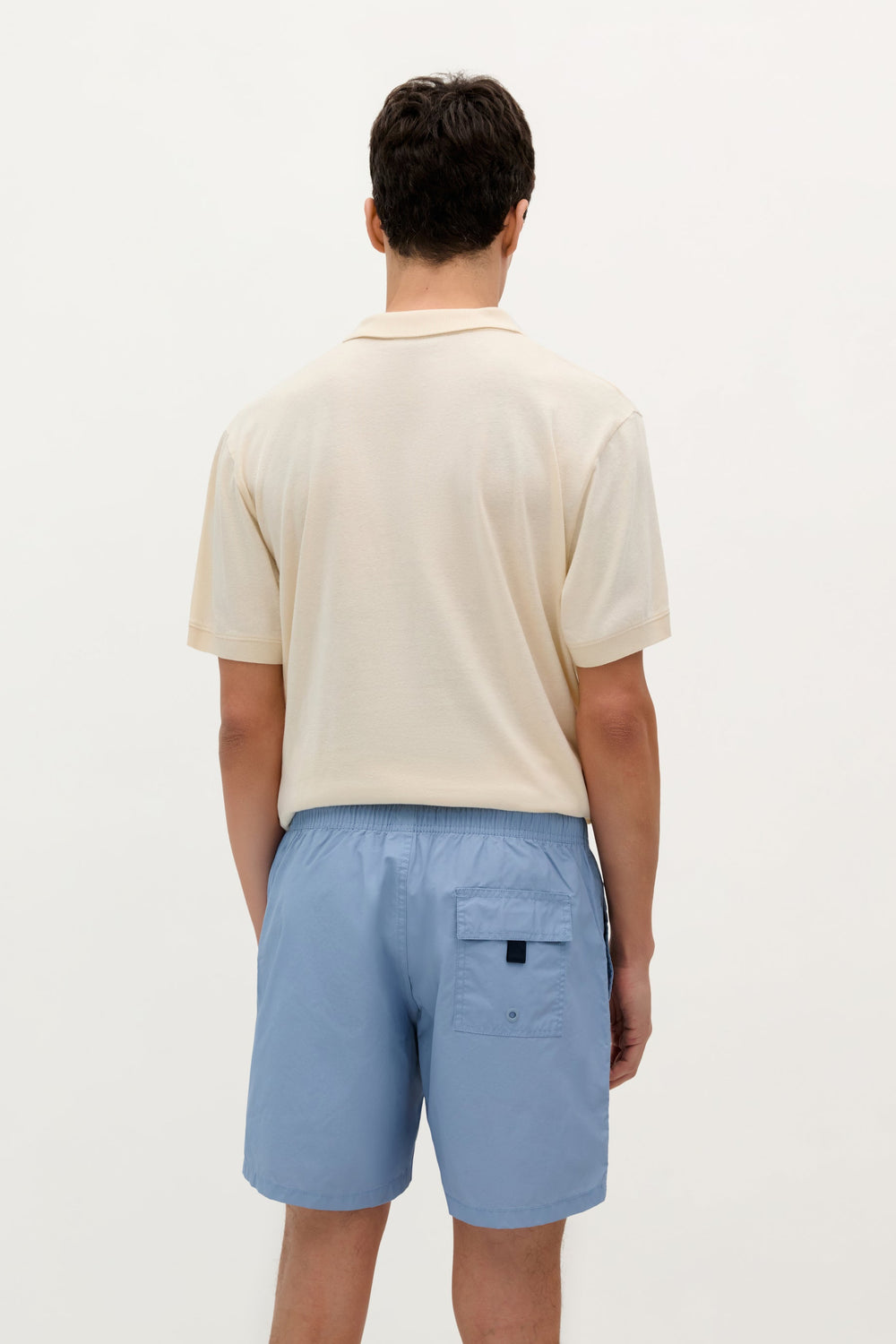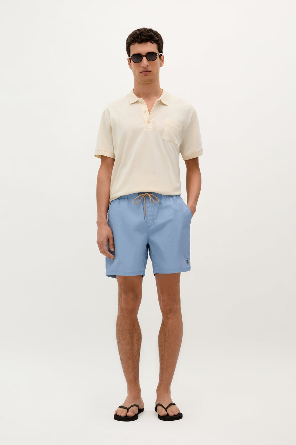 Bañador confeccionado en tejido técnico. Cintura elástica ajustable con cordón. Bolsillos laterales y detalle de bolsillo trasero de plastrón. Forro interior.
