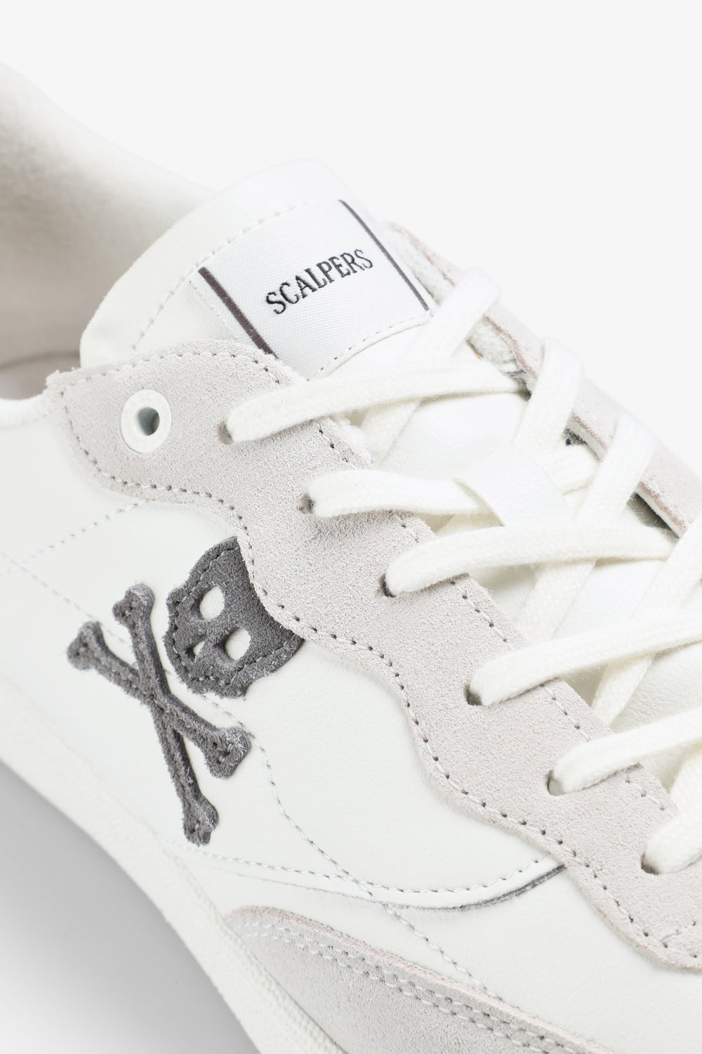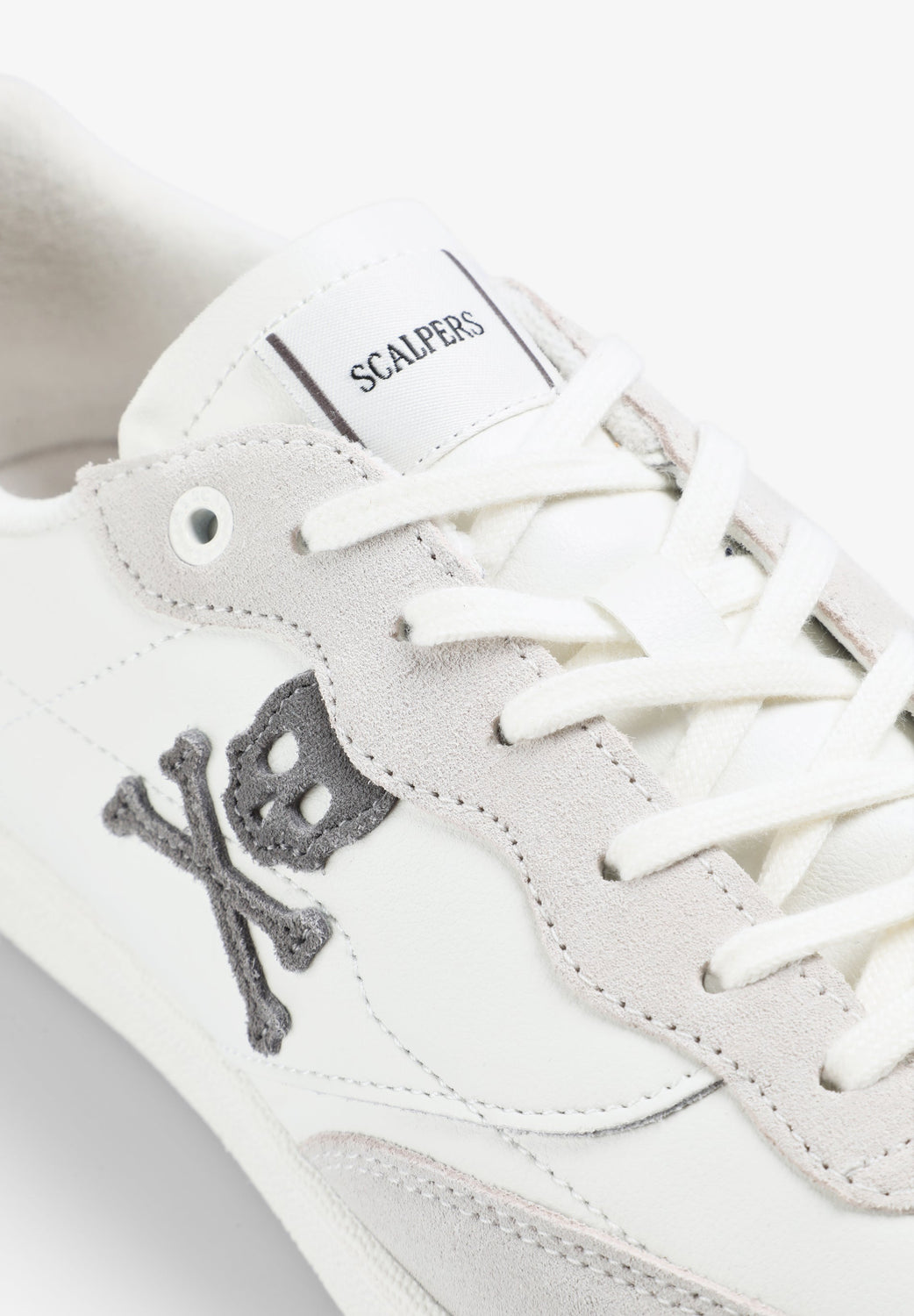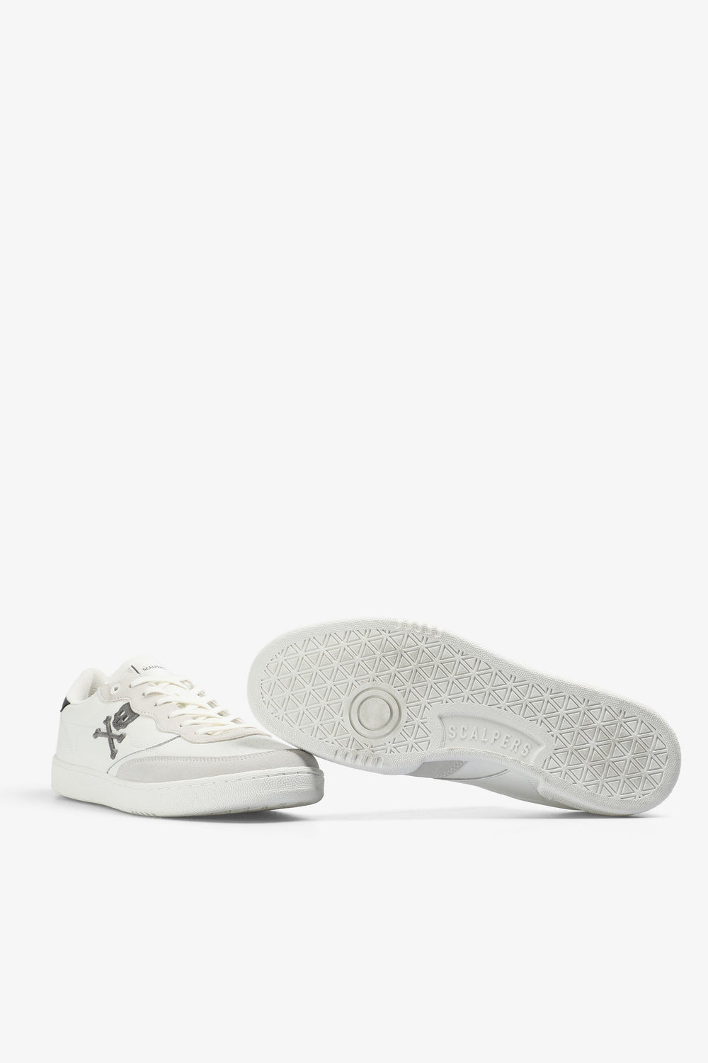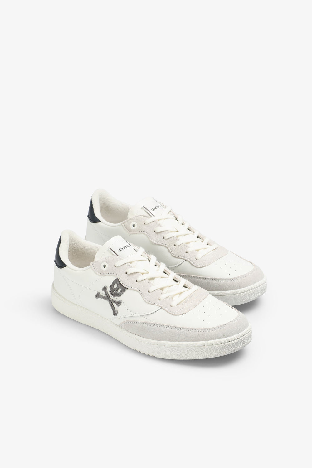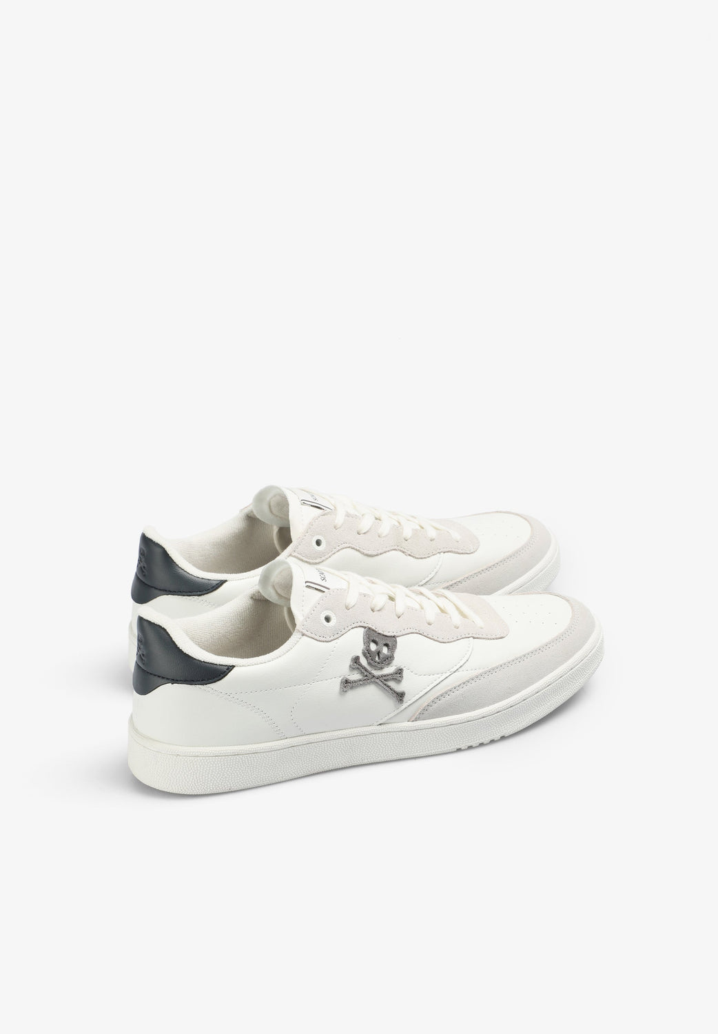 Sneakers con calavera lateral a contraste confeccionada en piel. Cierre con cordones, suela de TPR, detalle a contraste en talón y detalle de etiqueta en lengüeta personalizada.