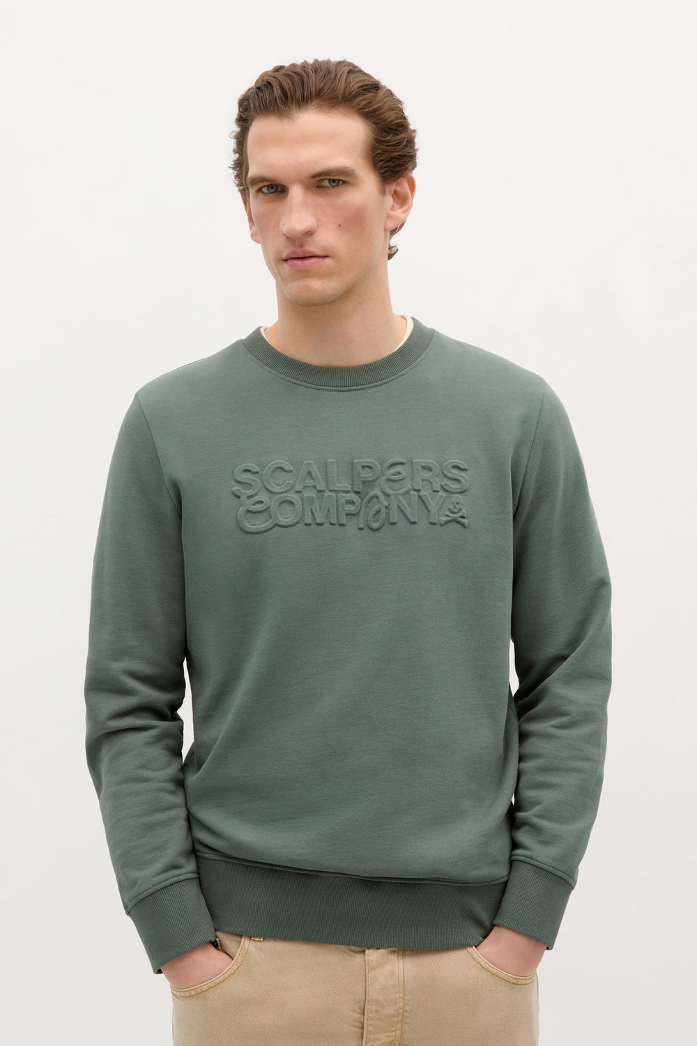 Sudadera confeccionada en 100% algodón BCI. Corte Regular Fit, cuello redondo con rib y manga larga con puños acabados en rib. Logo frontal en pecho con relieve.