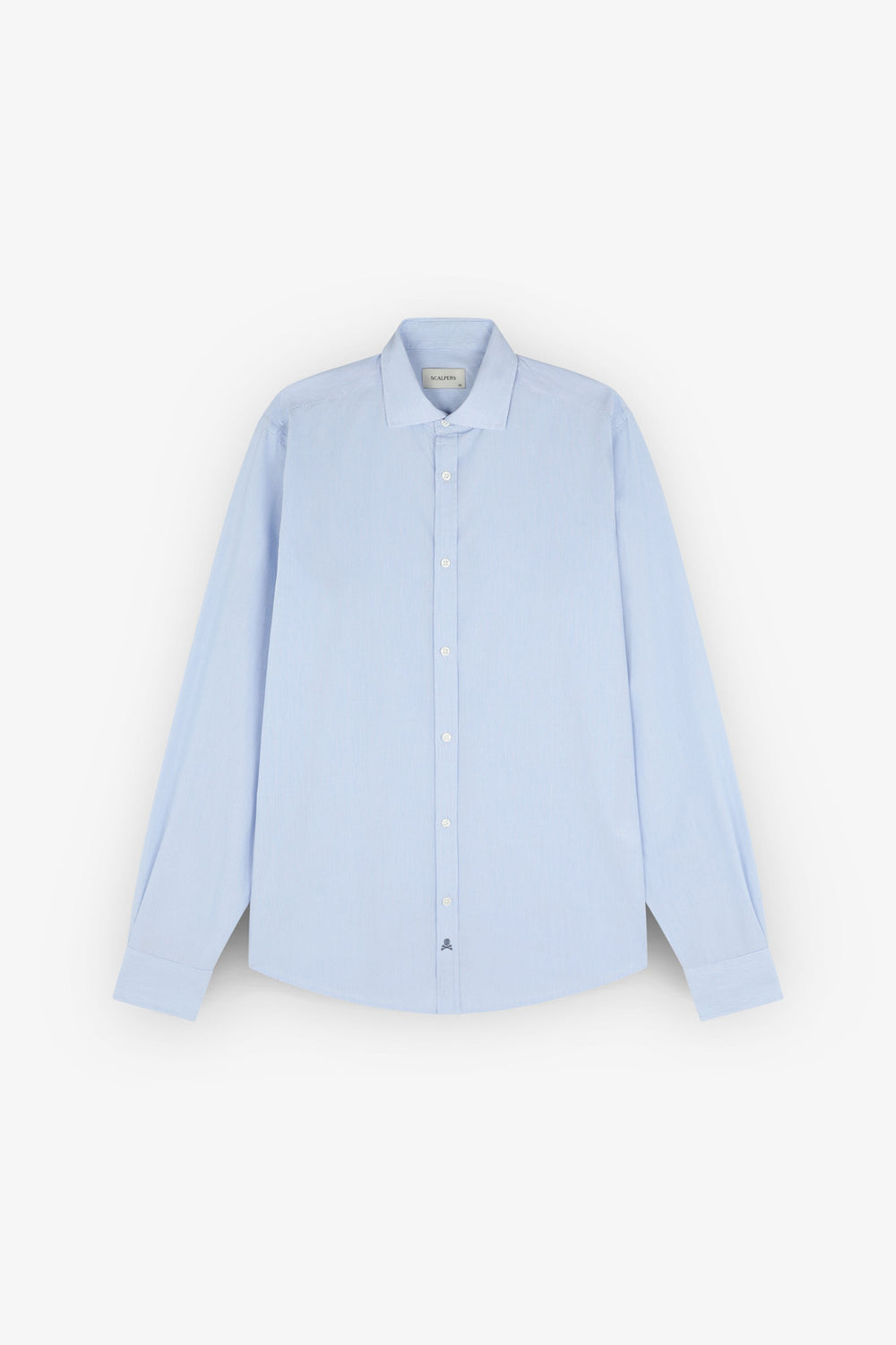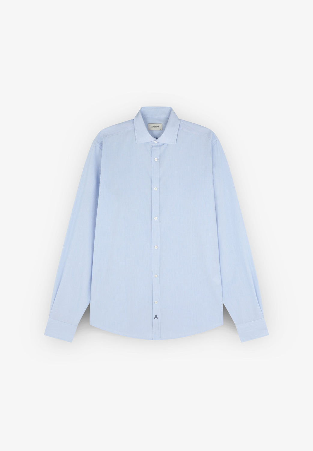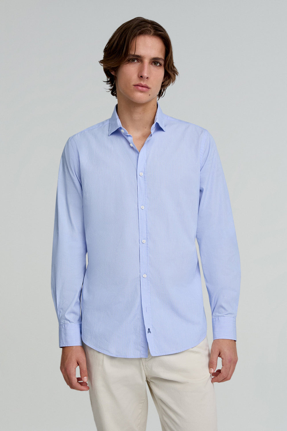 Camisa básica confeccionada en 100% algodón. Slim fit, cuello italiano y cierre con botones. Manga larga terminada en puño con botones y calavera a contraste en tapeta.
