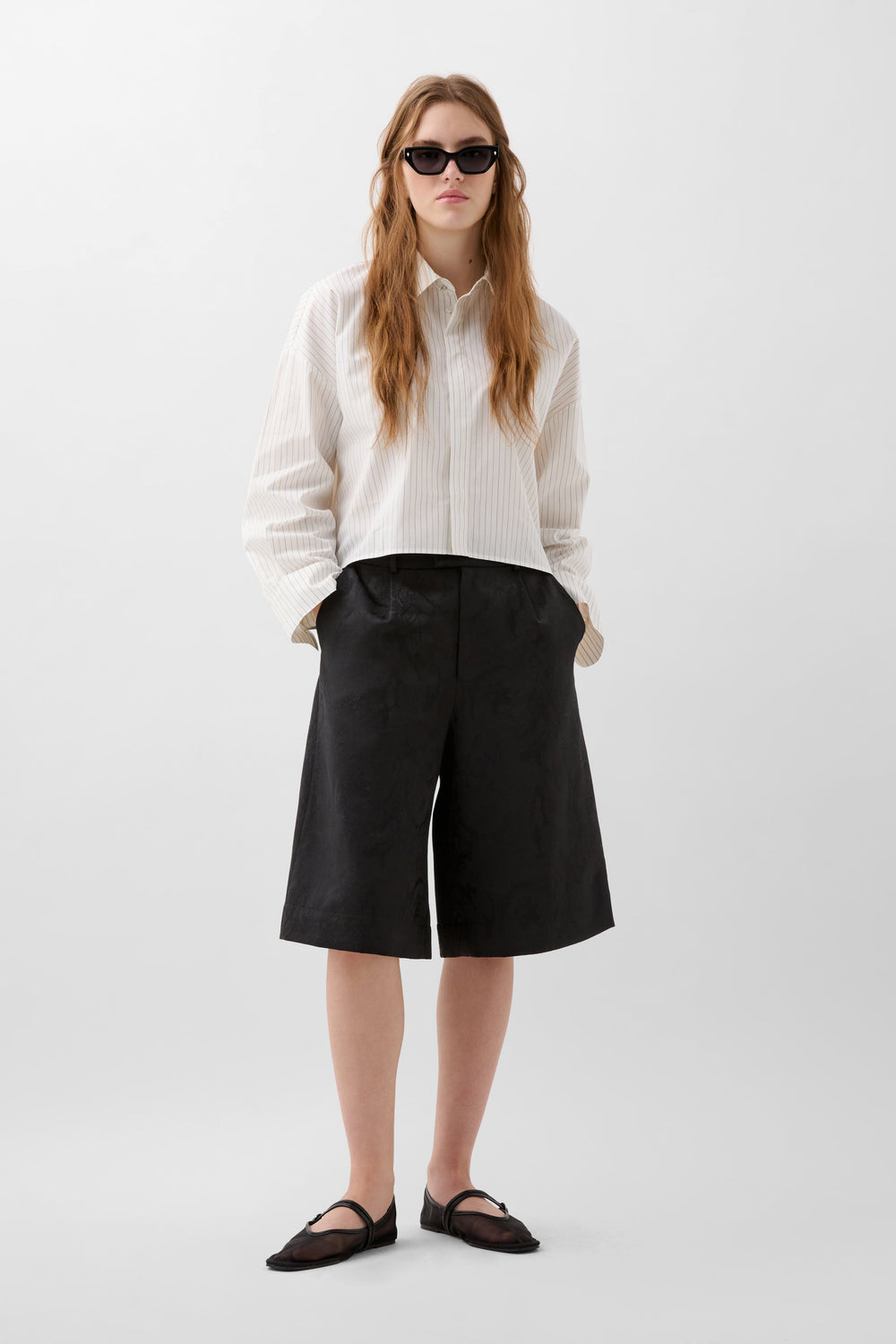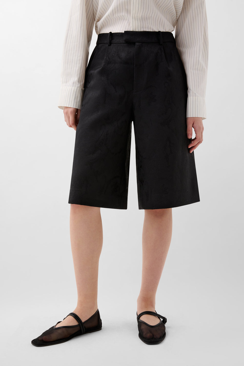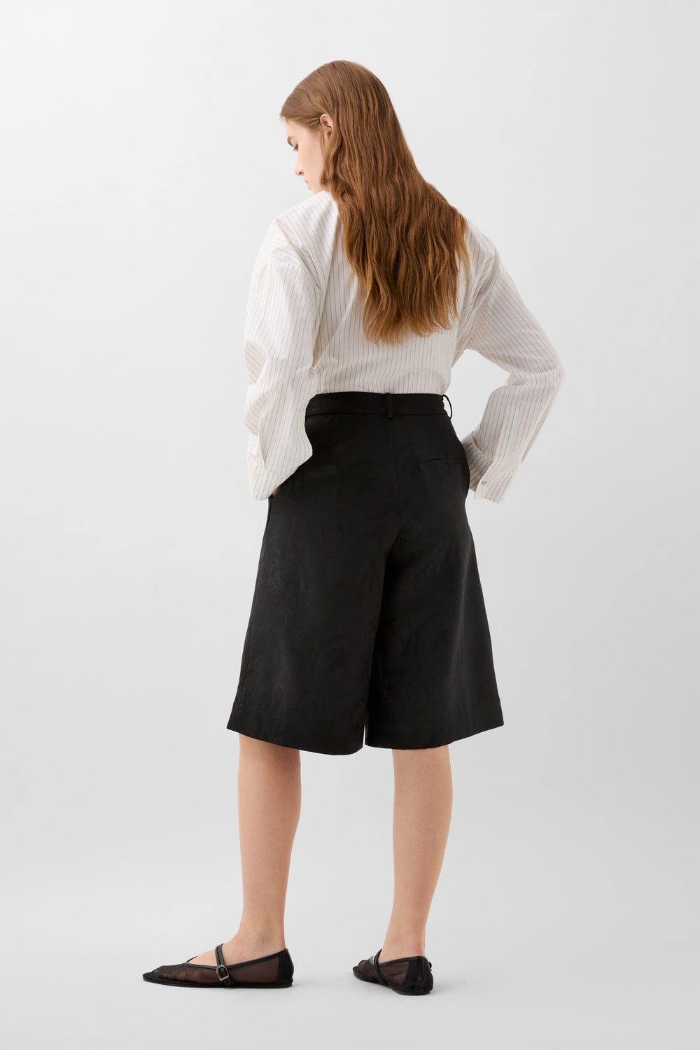 Bermudas confeccionadas en tejido de jacquard. Regular fit con pinzas, cierre con corchete y cremallera y trabillas en cintura. Bolsillos laterales.