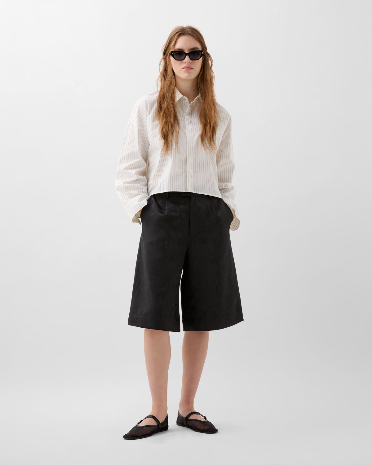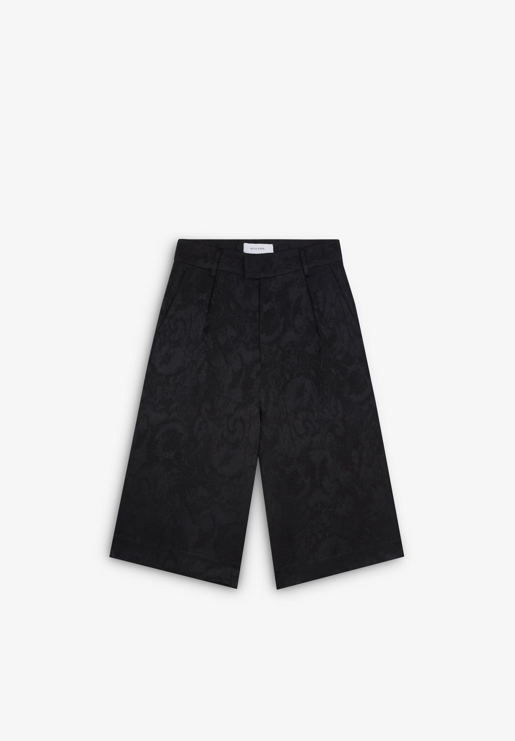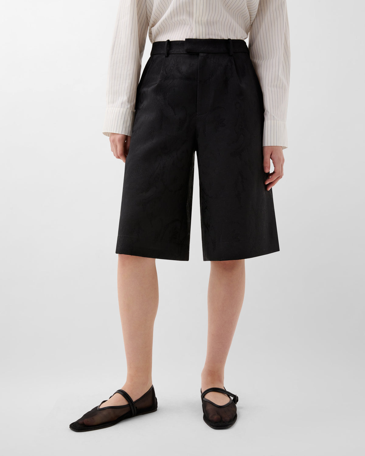 Bermudas confeccionadas en tejido de jacquard. Regular fit con pinzas, cierre con corchete y cremallera y trabillas en cintura. Bolsillos laterales.