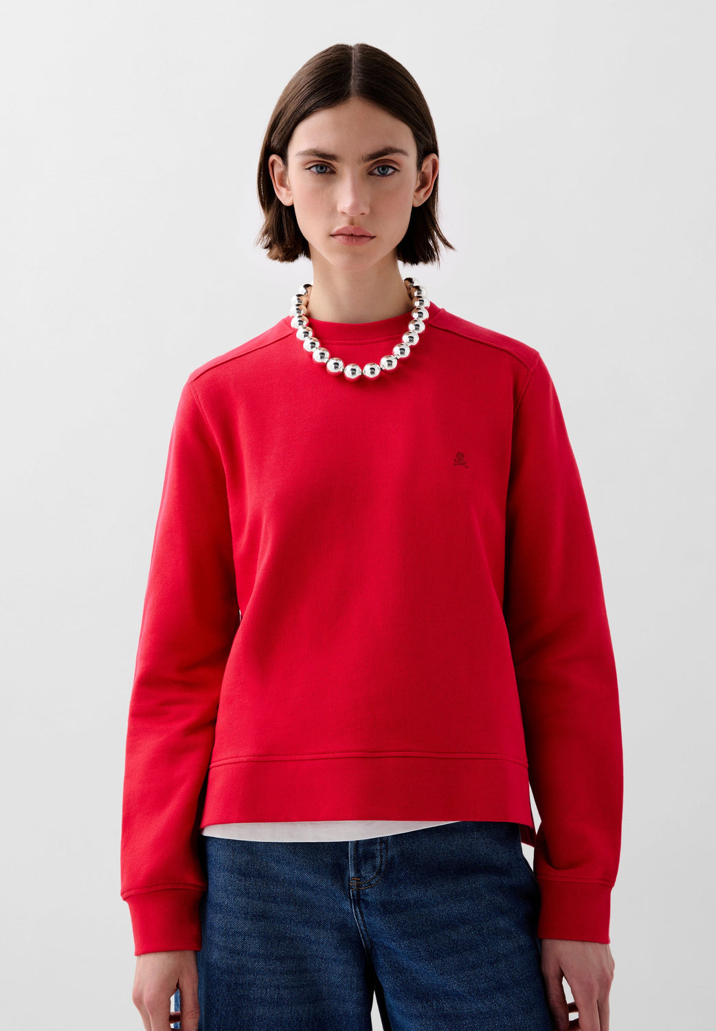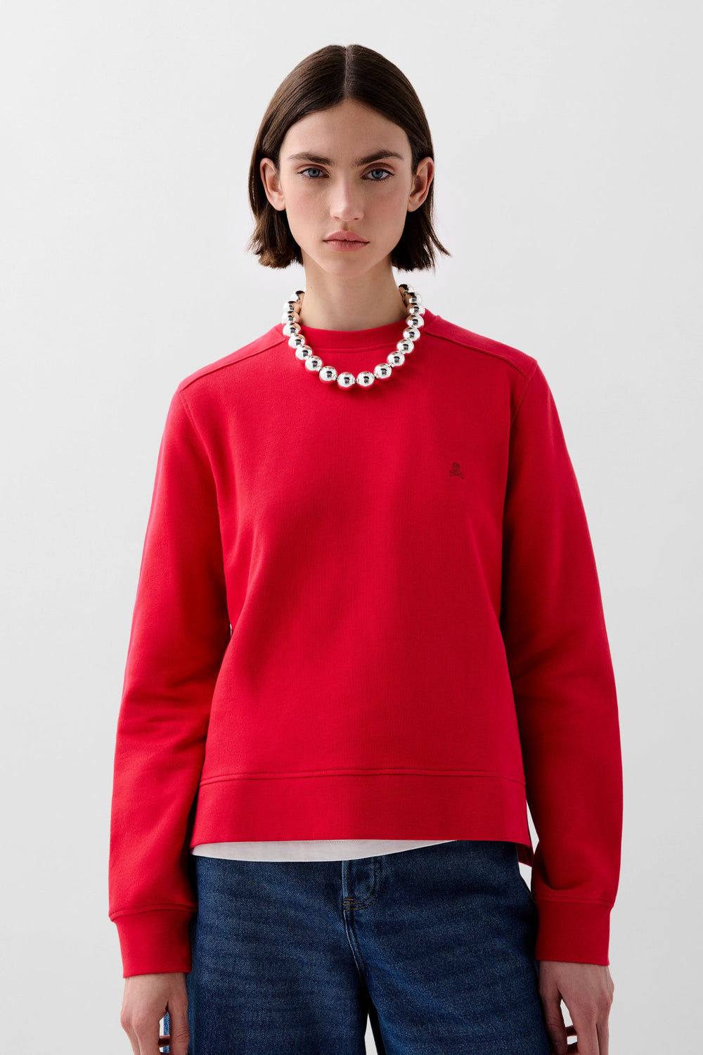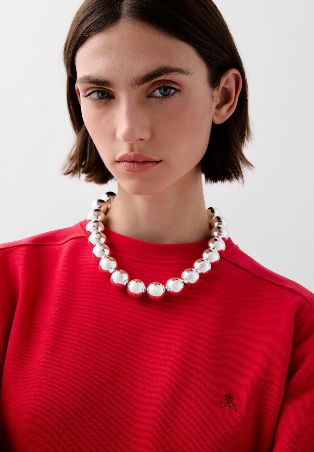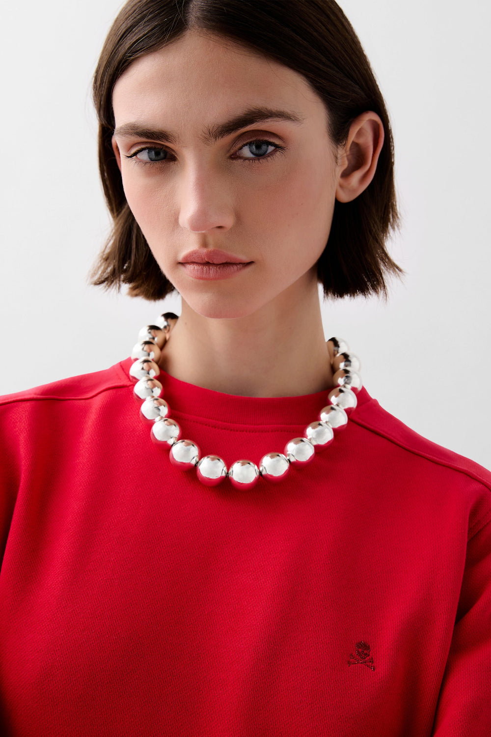 - Calavera bordada a tono en el pecho.
