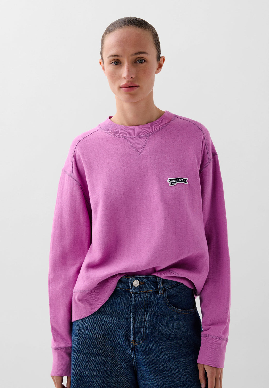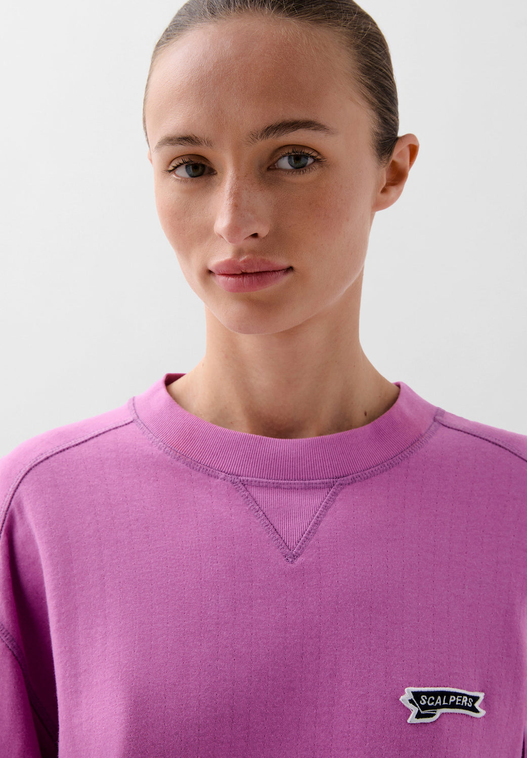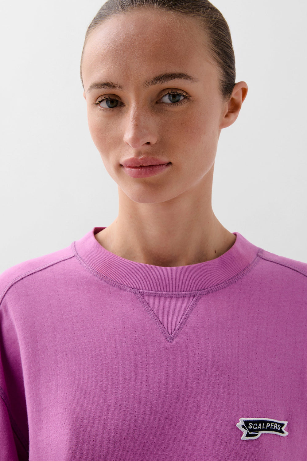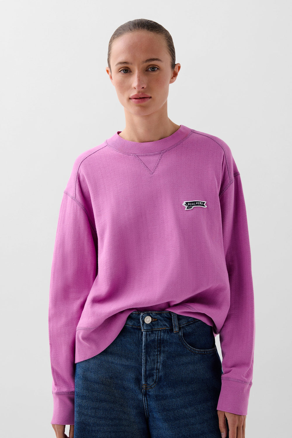 Sudadera confeccionada en tejido 100% algodón gofrado. Regular fit, cuello redondo y manga larga con puño acabado en rib. Detalle de logo frontal en parche.