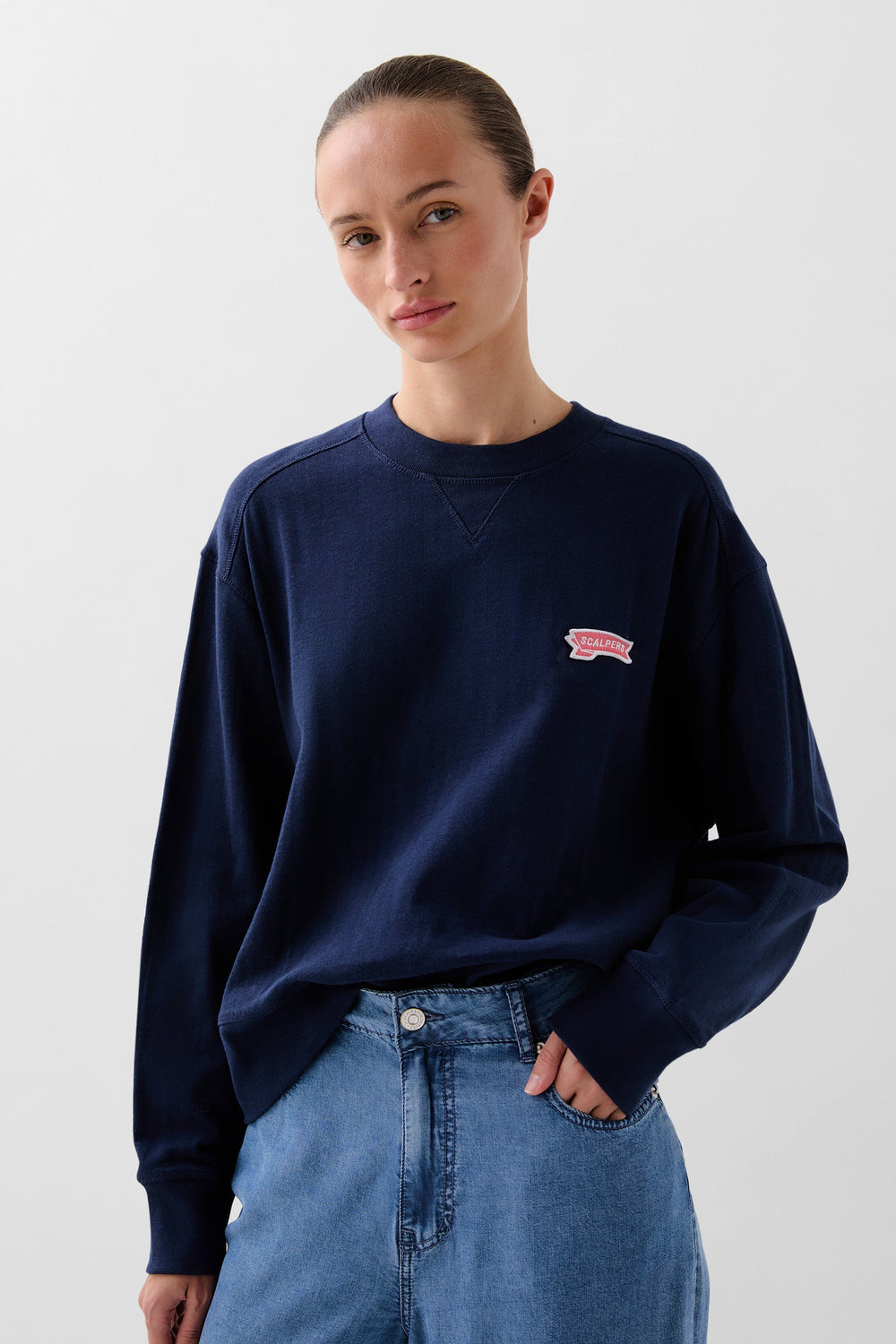 Sudadera confeccionada en tejido 100% algodón gofrado. Regular fit, cuello redondo y manga larga con puño acabado en rib. Detalle de logo frontal en parche.