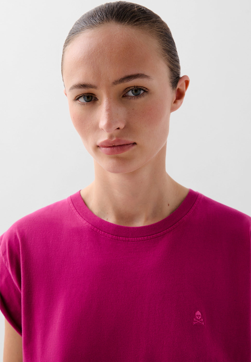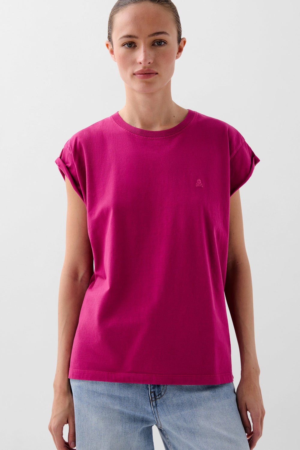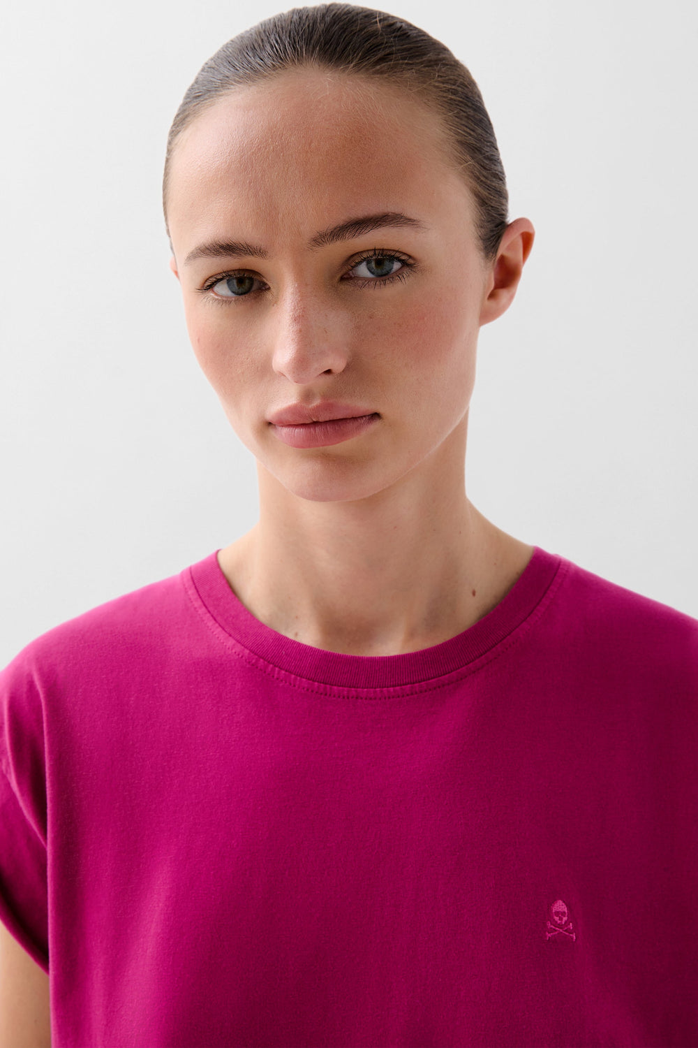 Camiseta lavada confeccionada en 100% algodón BCI. Regular fit, cuello redondo y manga corta. Detalle de calavera bordada a tono,