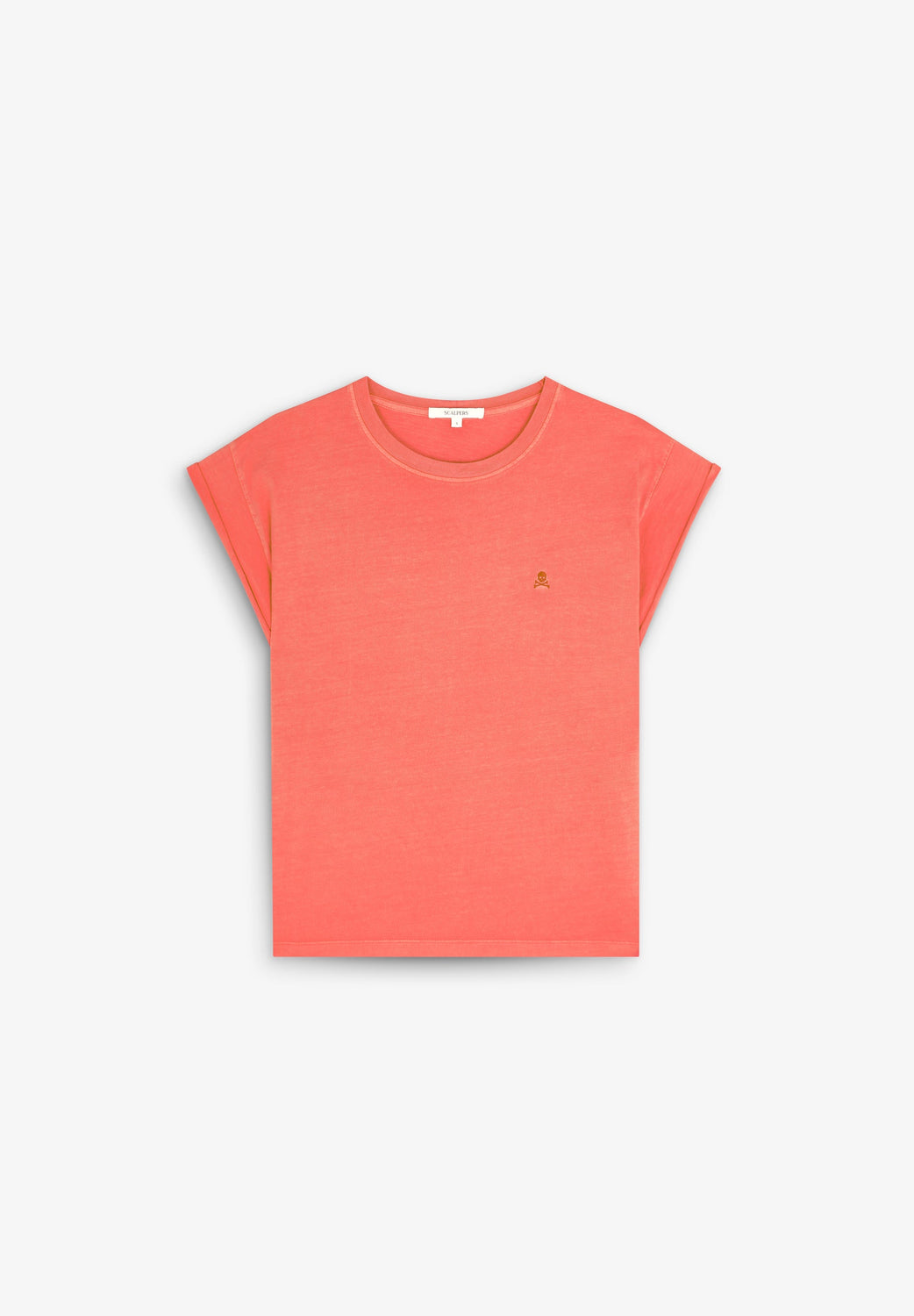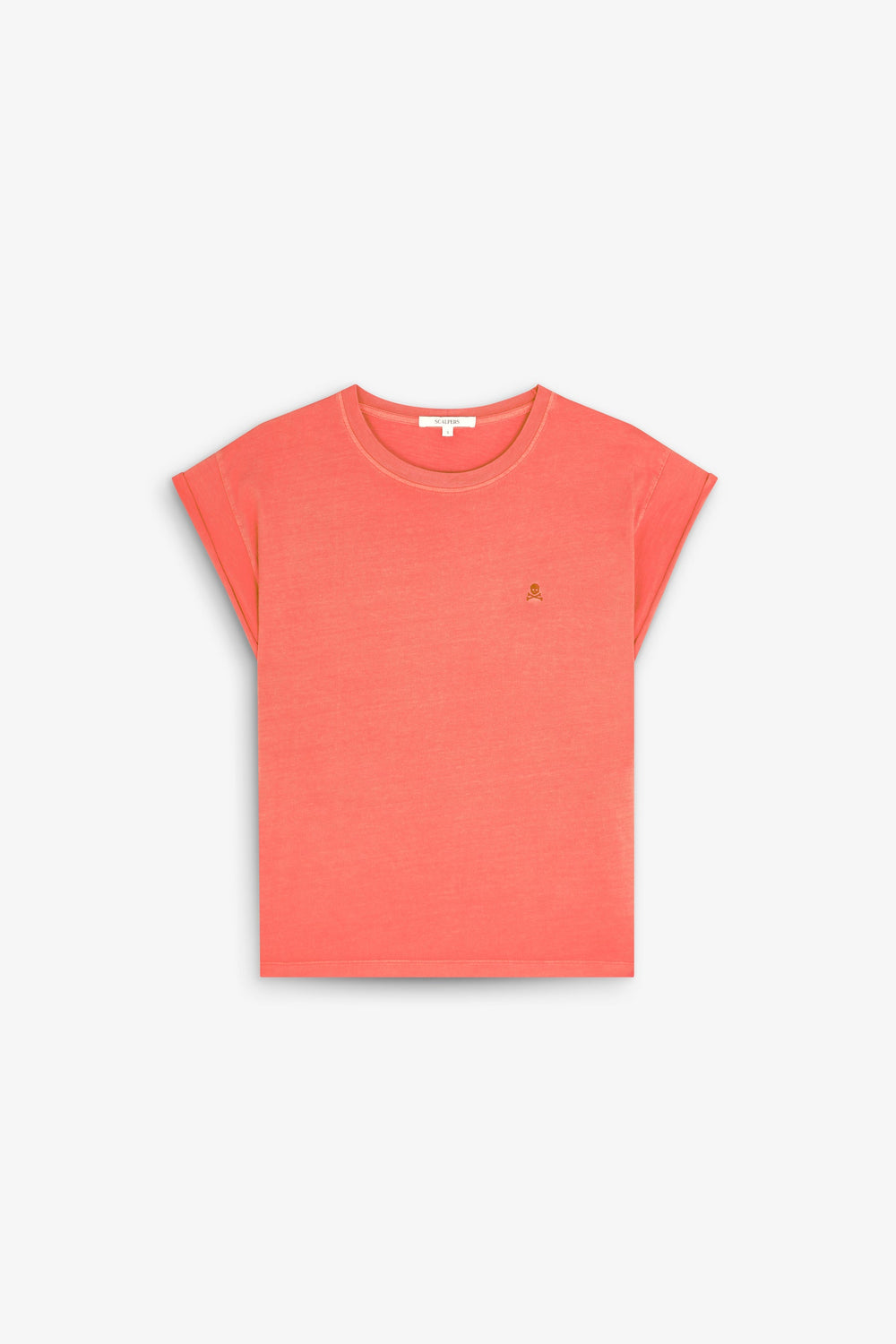 Camiseta lavada confeccionada en 100% algodón BCI. Regular fit, cuello redondo y manga corta. Detalle de calavera bordada a tono,