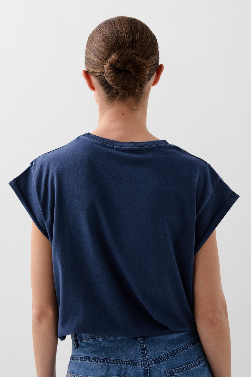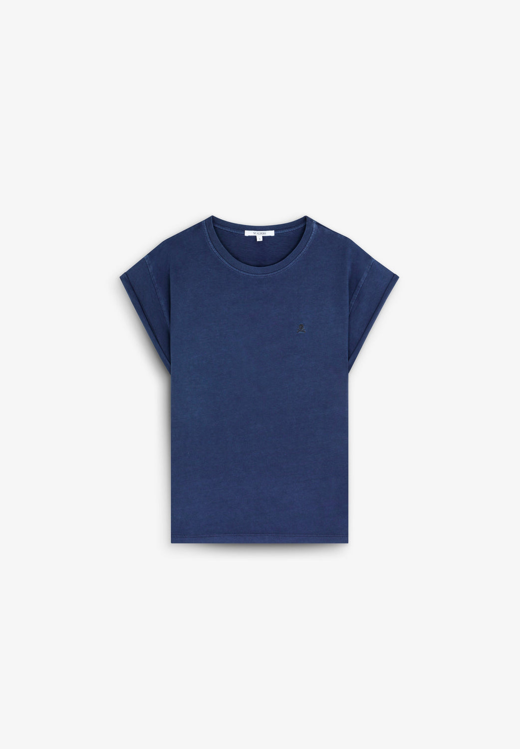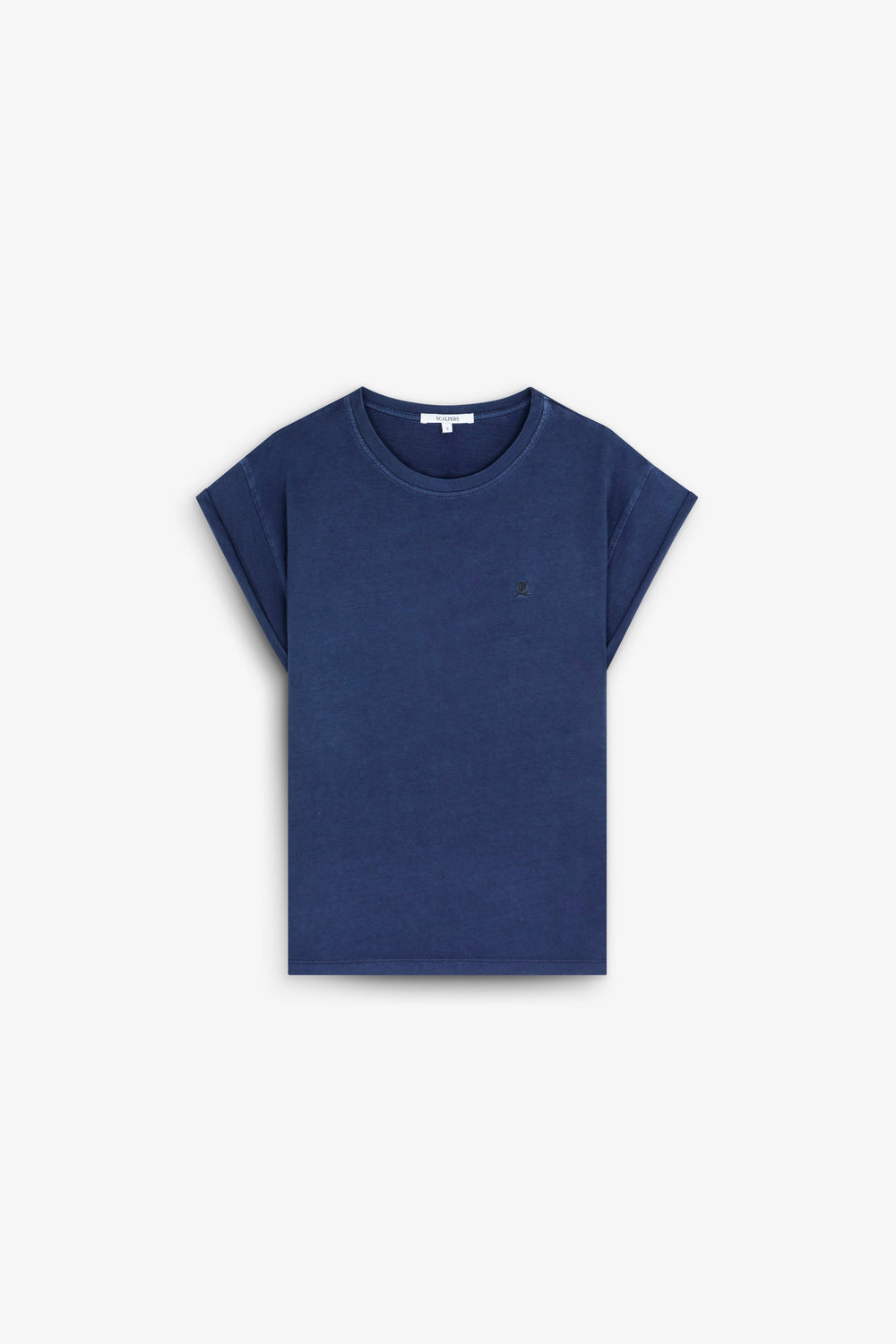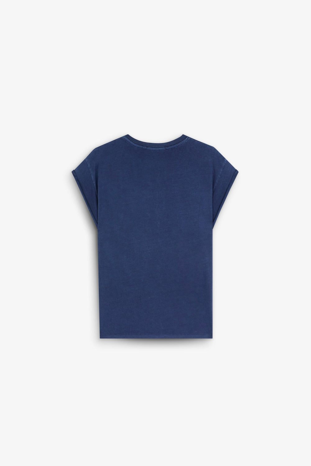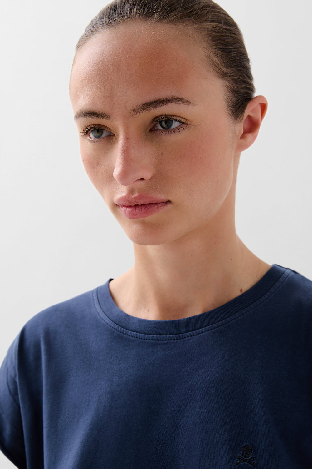 Camiseta lavada confeccionada en 100% algodón BCI. Regular fit, cuello redondo y manga corta. Detalle de calavera bordada a tono,