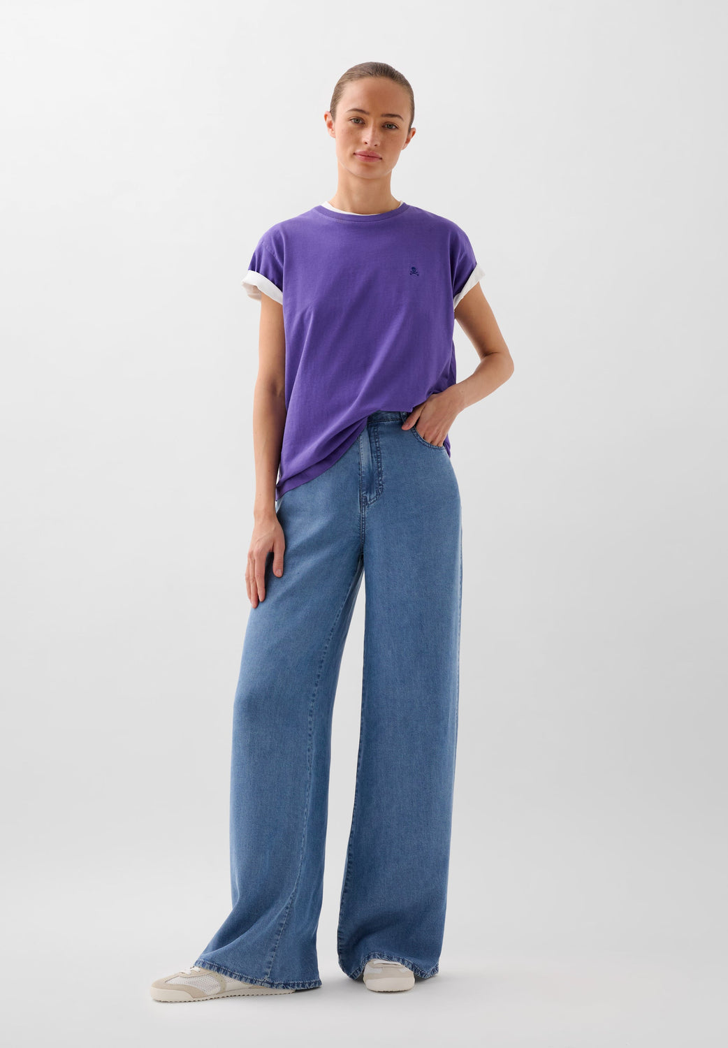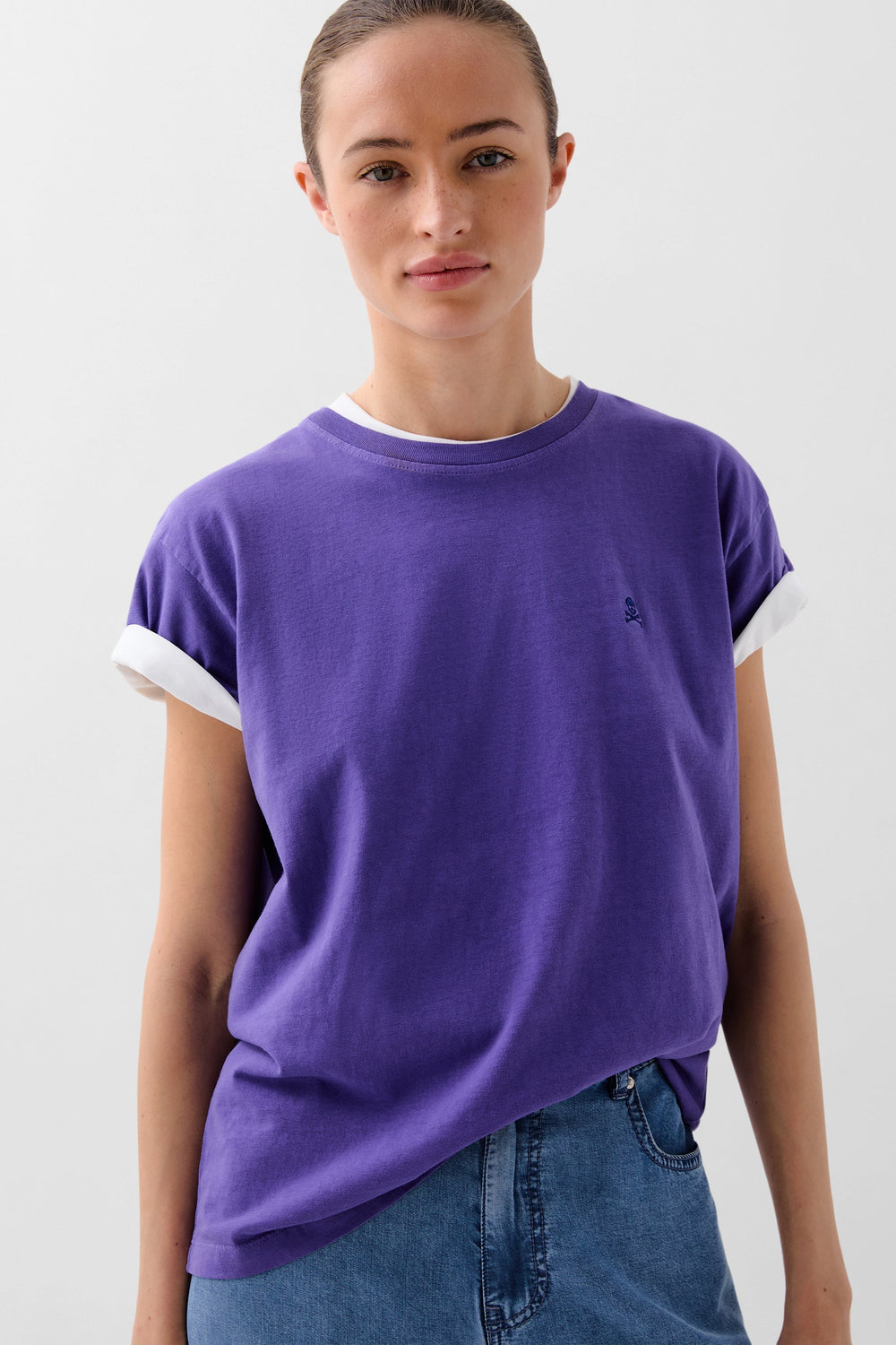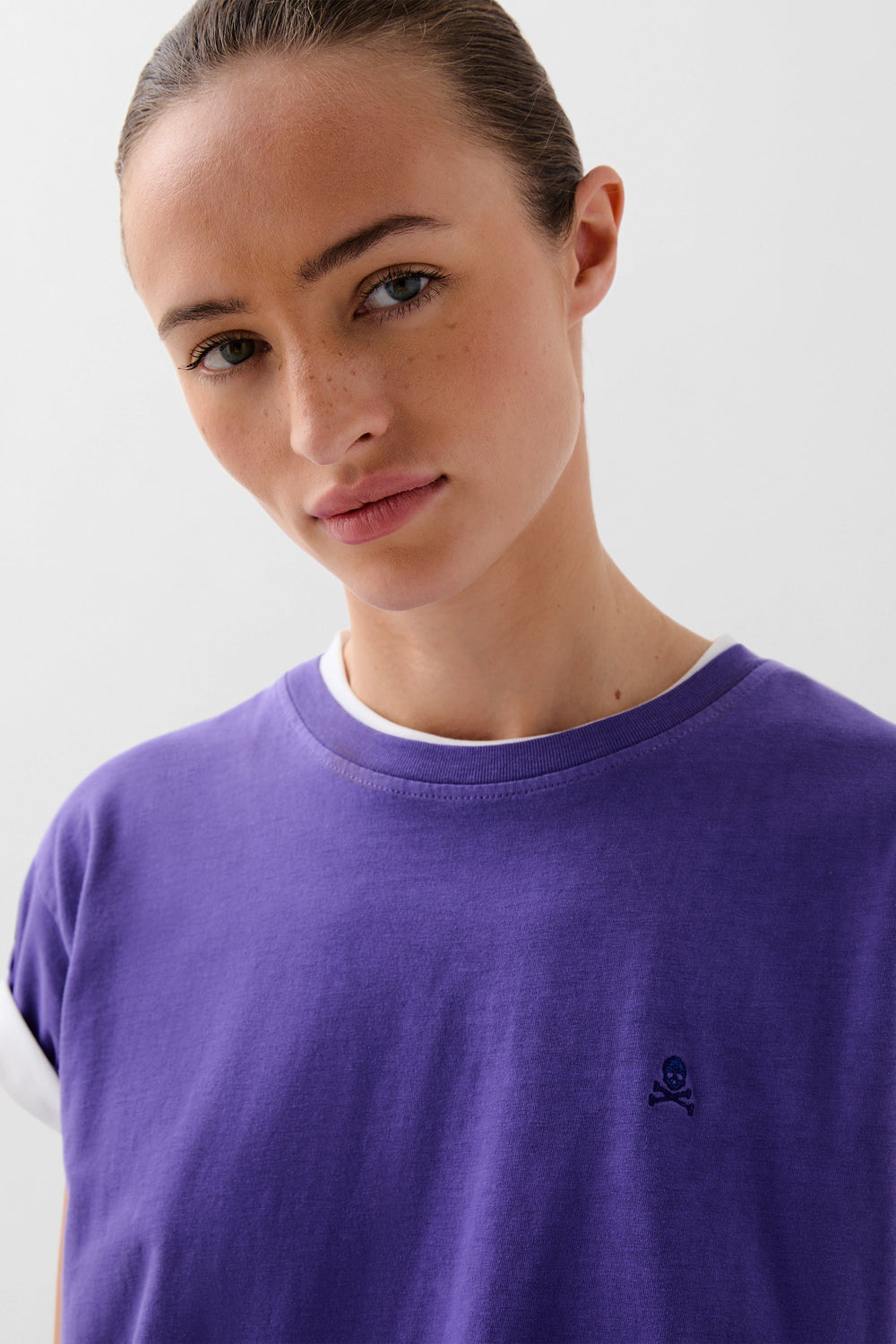 Camiseta lavada confeccionada en 100% algodón BCI. Regular fit, cuello redondo y manga corta. Detalle de calavera bordada a tono,