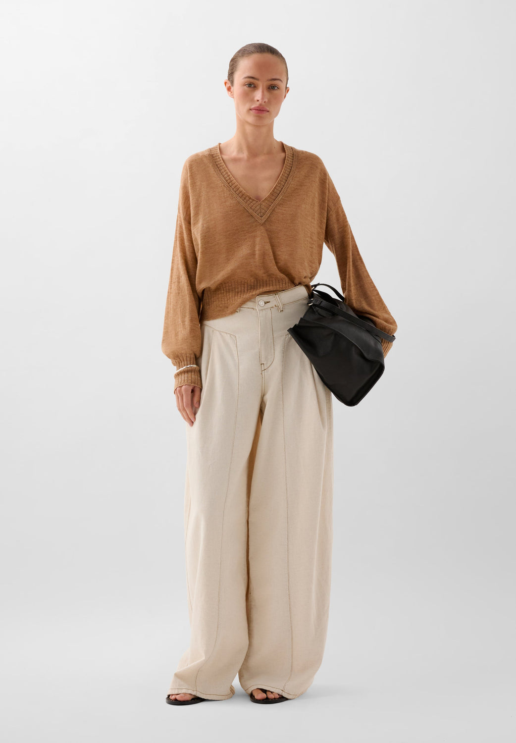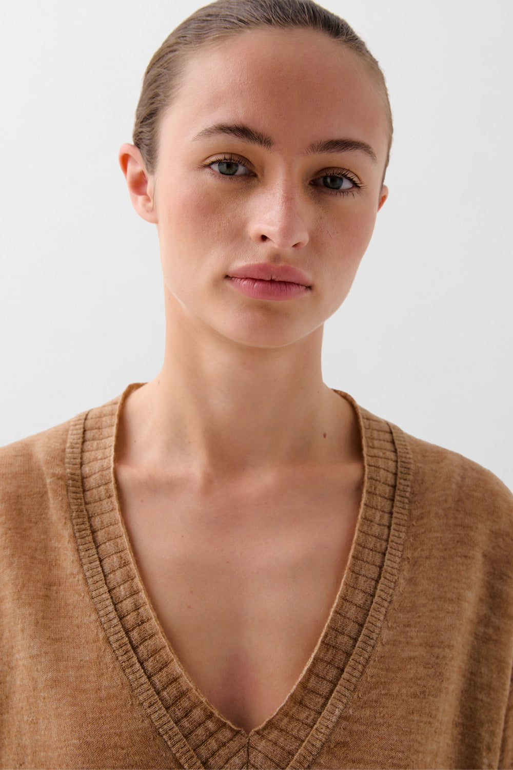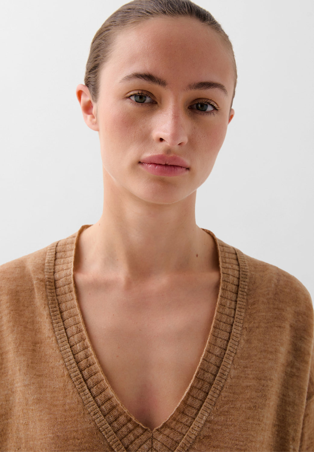 Jersey con detalle en el escote. Confeccionado en mezcla de lana. Corte Regular fit. Cuello de pico. Manga larga terminadas en rib.