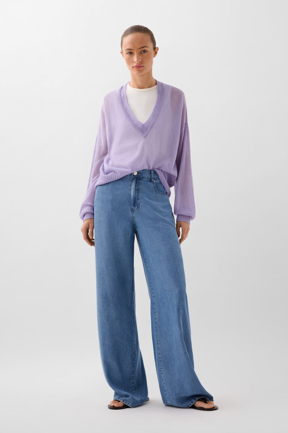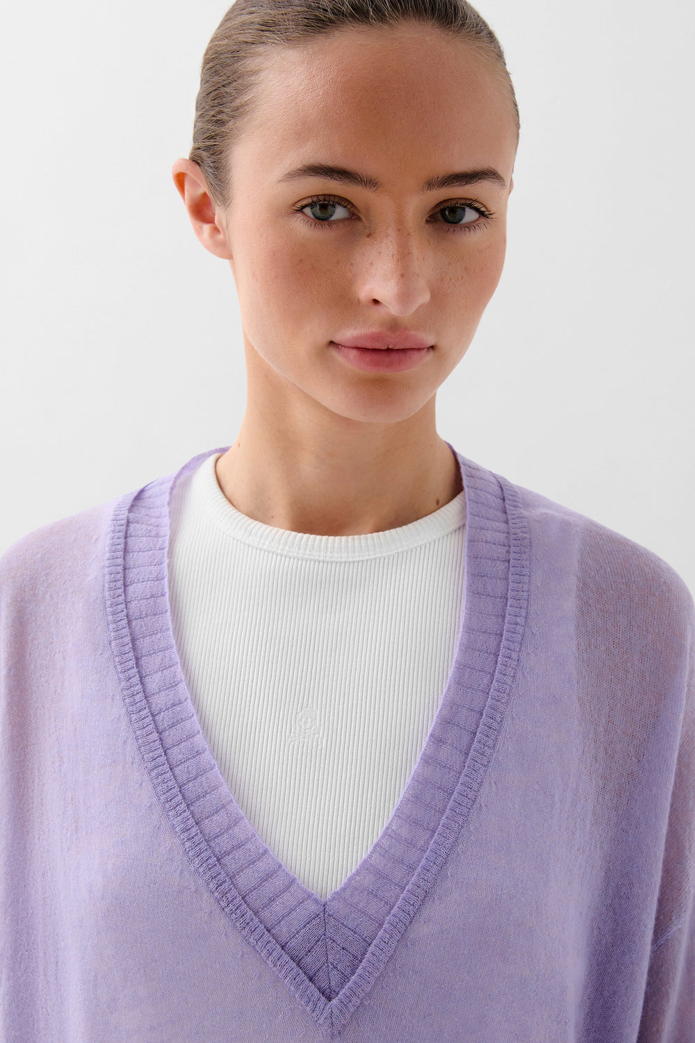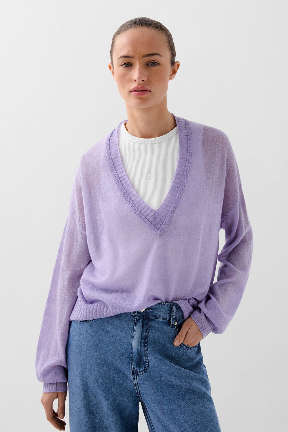 Jersey con detalle en el escote. Confeccionado en mezcla de lana. Corte Regular fit. Cuello de pico. Manga larga terminadas en rib.