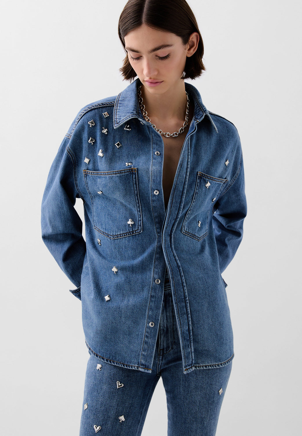 Camisa denim con detalles de tachuelas confeccionada en 100% algodón. Corte regular fit, cuello camisero y cierre con botones. Manga larga acabada en puño y bolsillos de parche frontales.