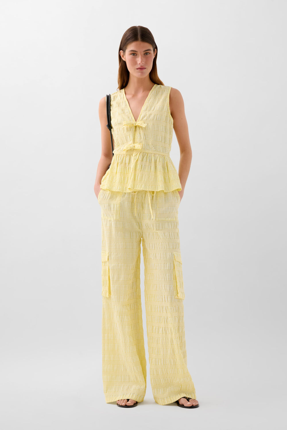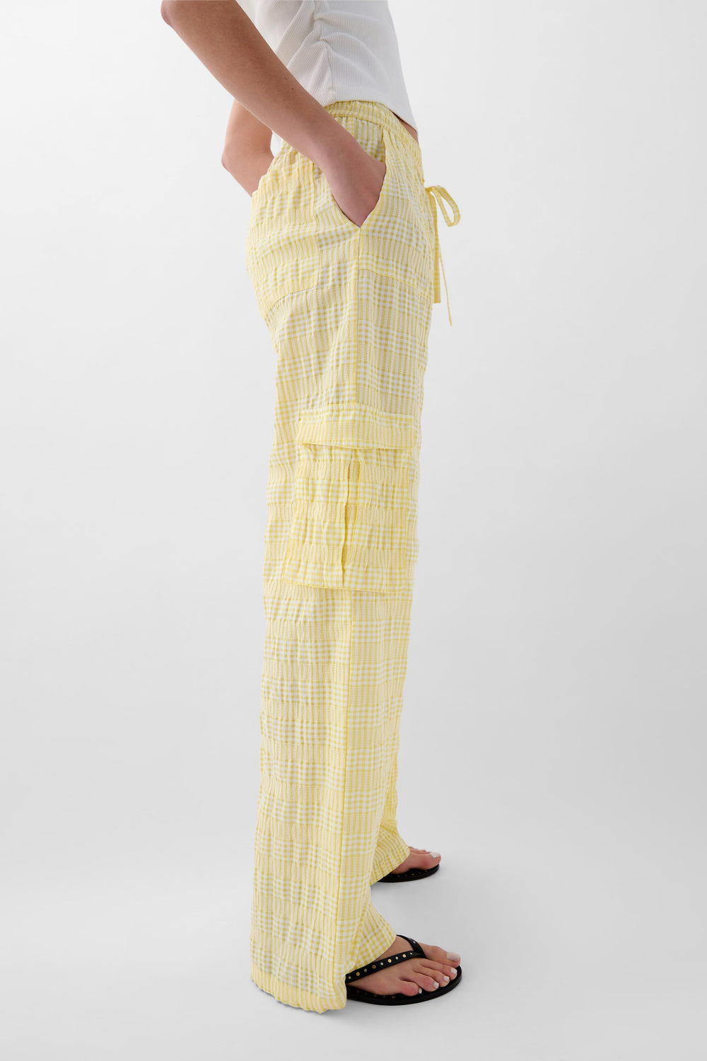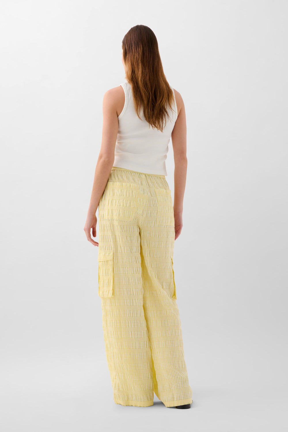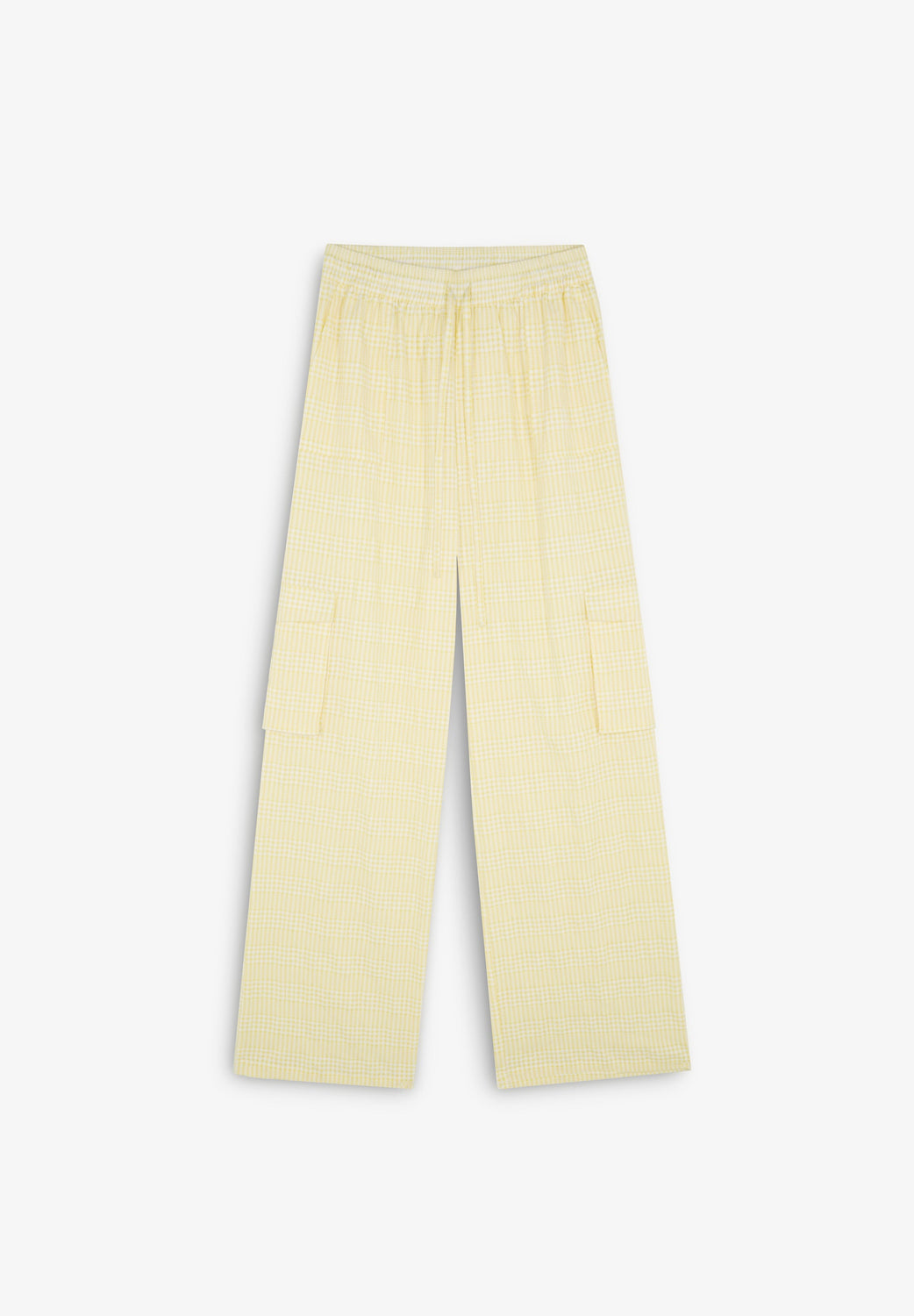 Pantalón cargo confeccionado en Algodón. Cintura ajustable mediante elástico. Dos bolsillos en frontal y dos en posterior. Detalle de bolsillos en bajos.