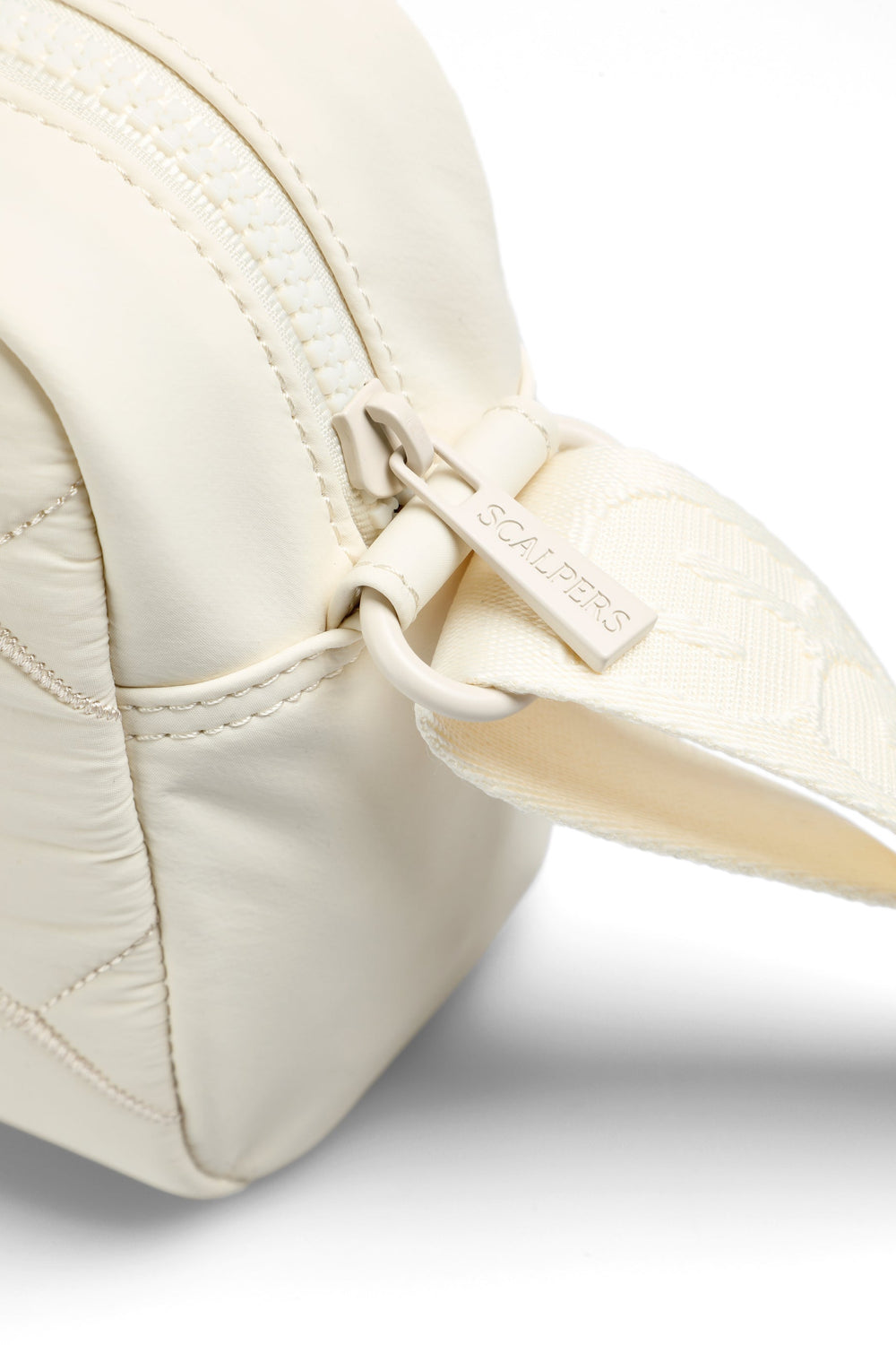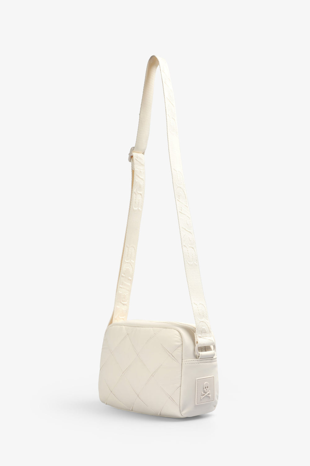 Bolso bandolera acolchado. Confeccionado en nylon reciclado. Cierre con cremallera. Asa larga regulable con logo. Detalle parche engomado con logo en el lateral. Forro interior y bolsillo con cremallera.