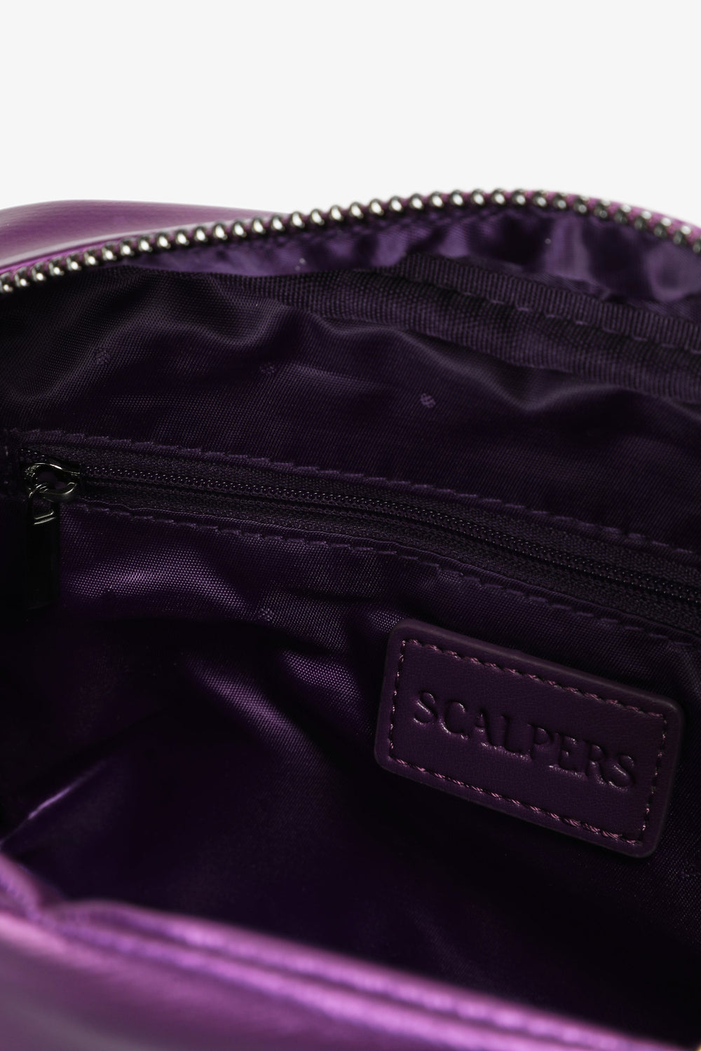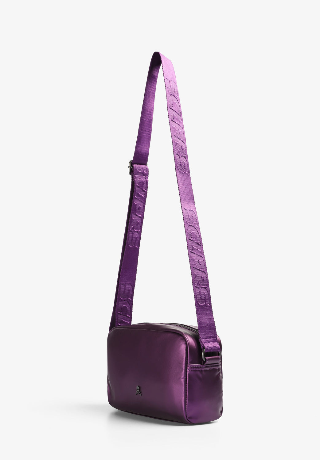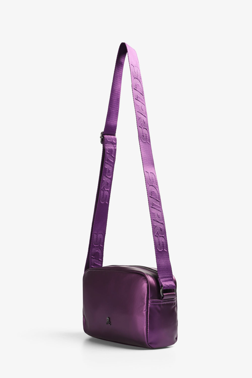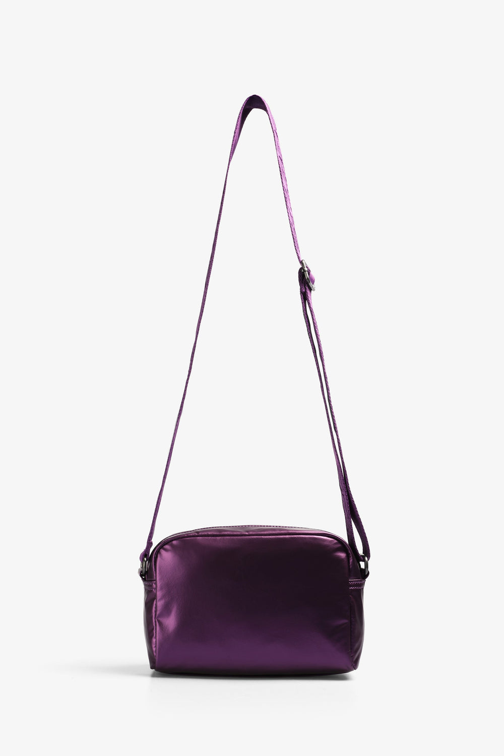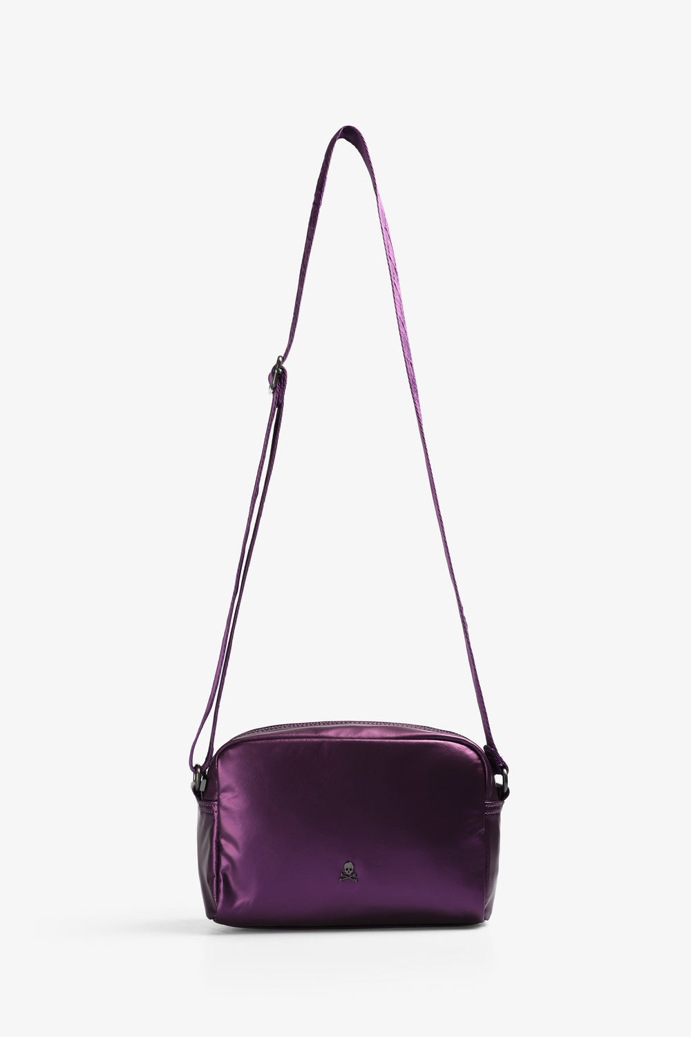Bolso bandolera metalizado. Confeccionado en nylon reciclado. Cierre con cremallera. Asa larga regulable con logo. Detalle de logo  metálico en parte frontal. Forro interior y bolsillo con cremallera.