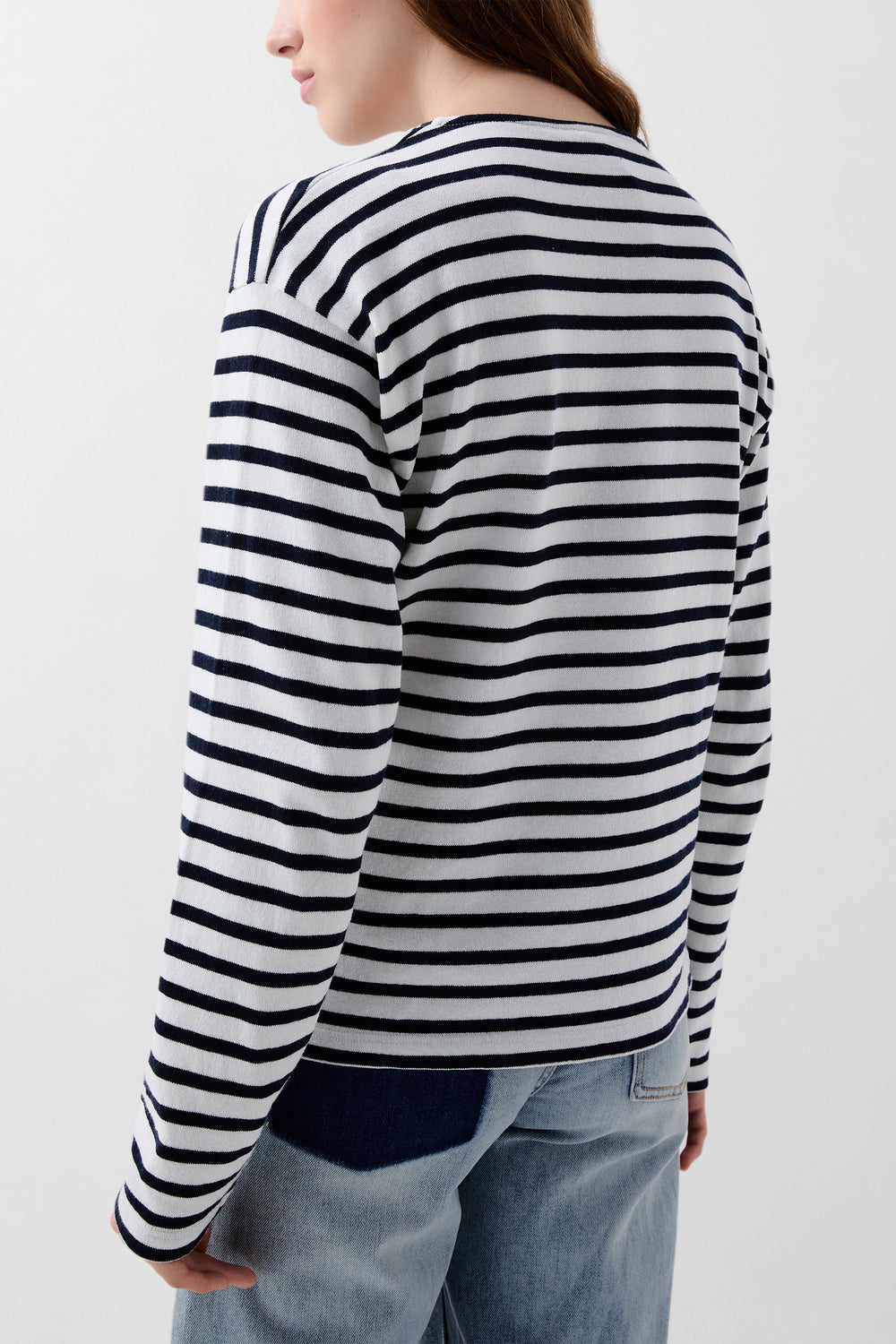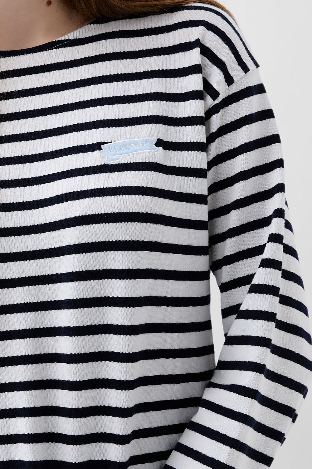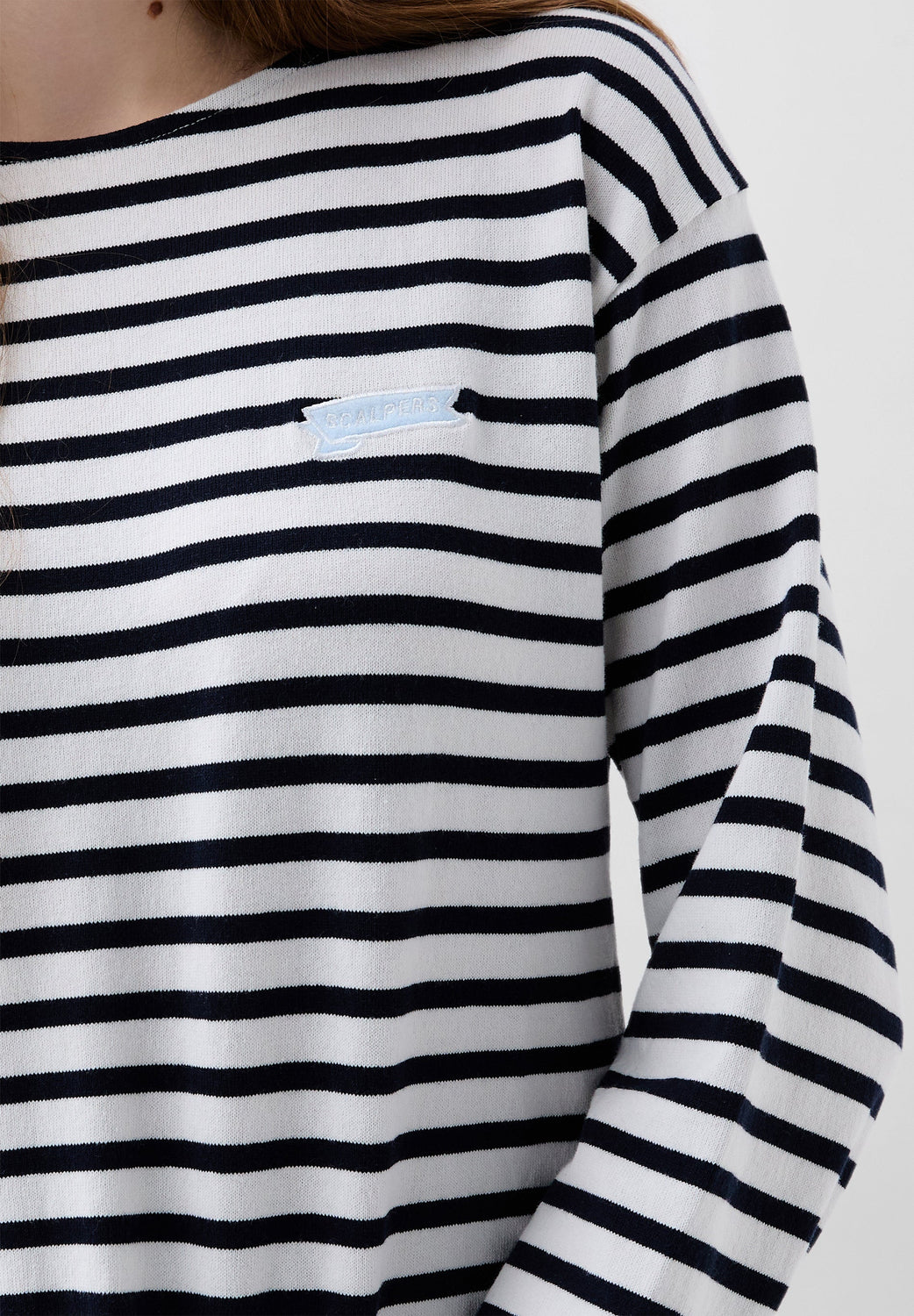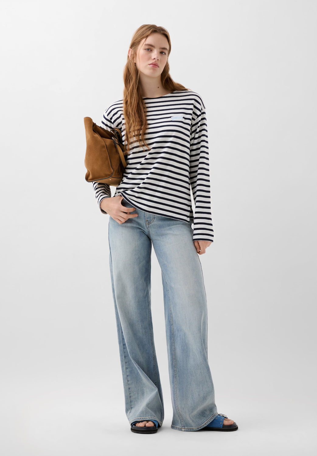 Camiseta de rayas confeccionada en 100% algodón BCI. Regular fit, cuello redondo y manga larga.