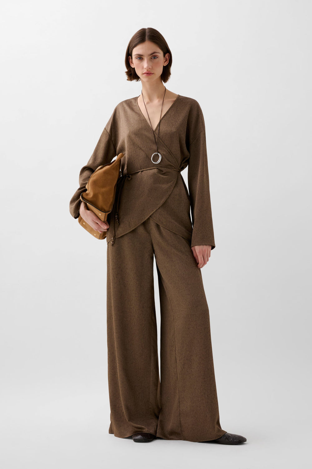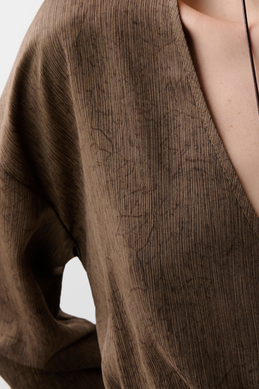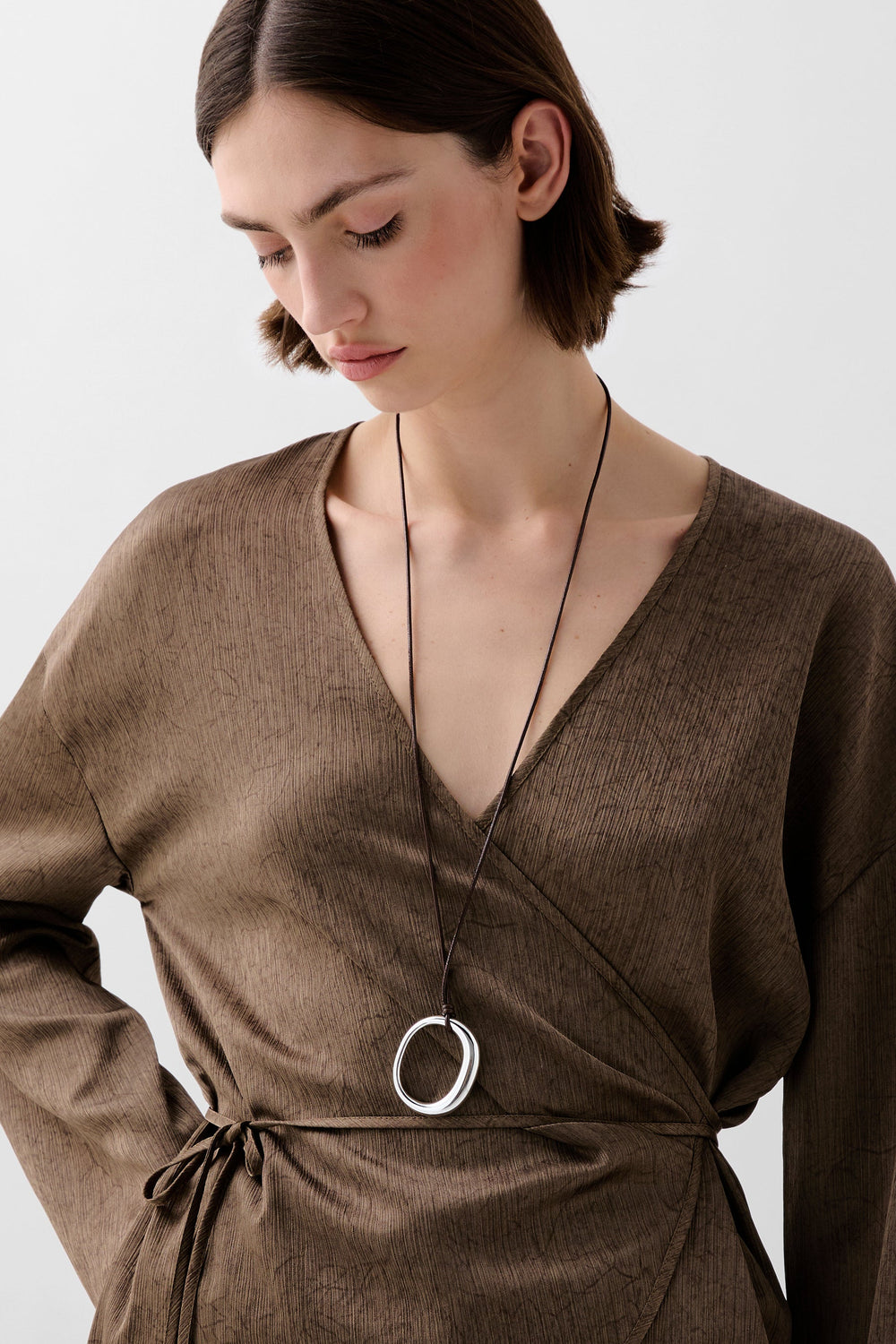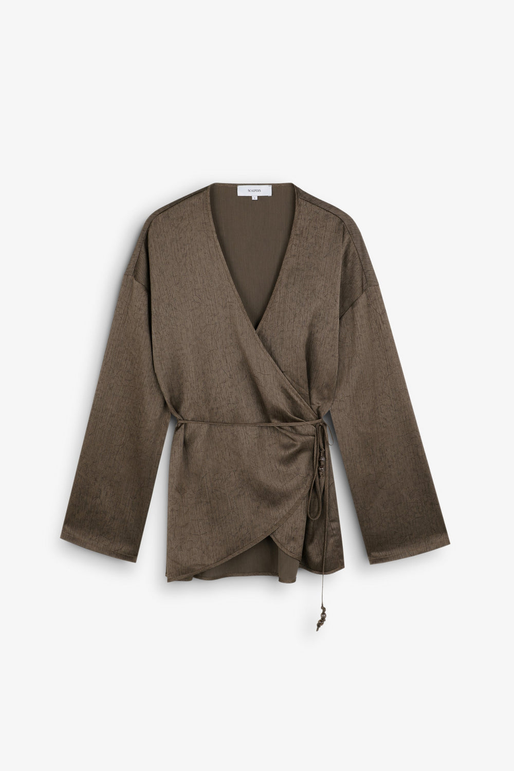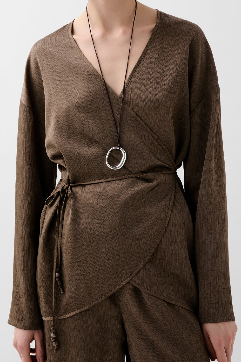 Kaftan asimétrico fluido de manga larga. Escote abertura en pico. Ajustable en cintura mediante cordón.