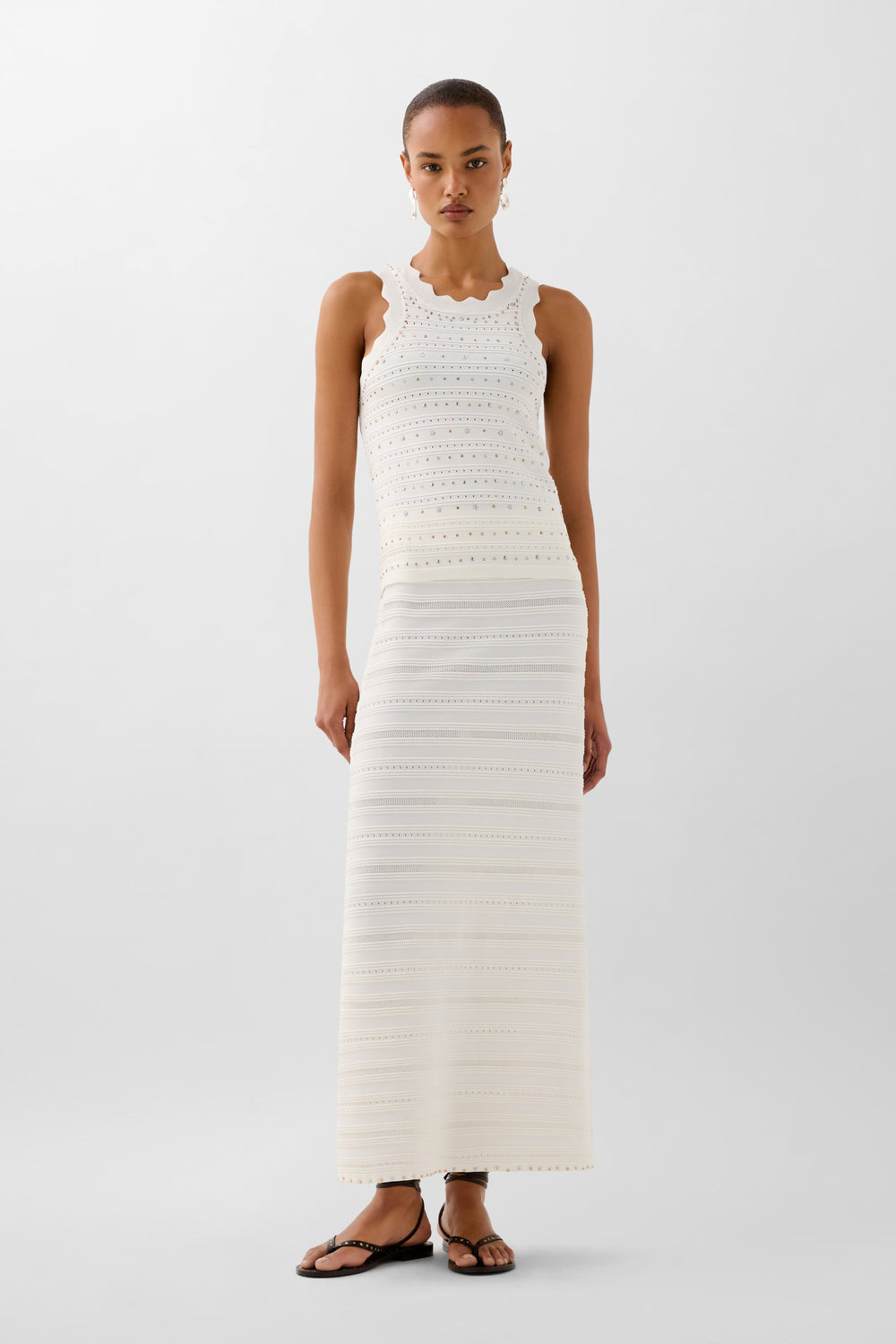 Falda de punto. Detalle de tachuelas en cintura y bajos.