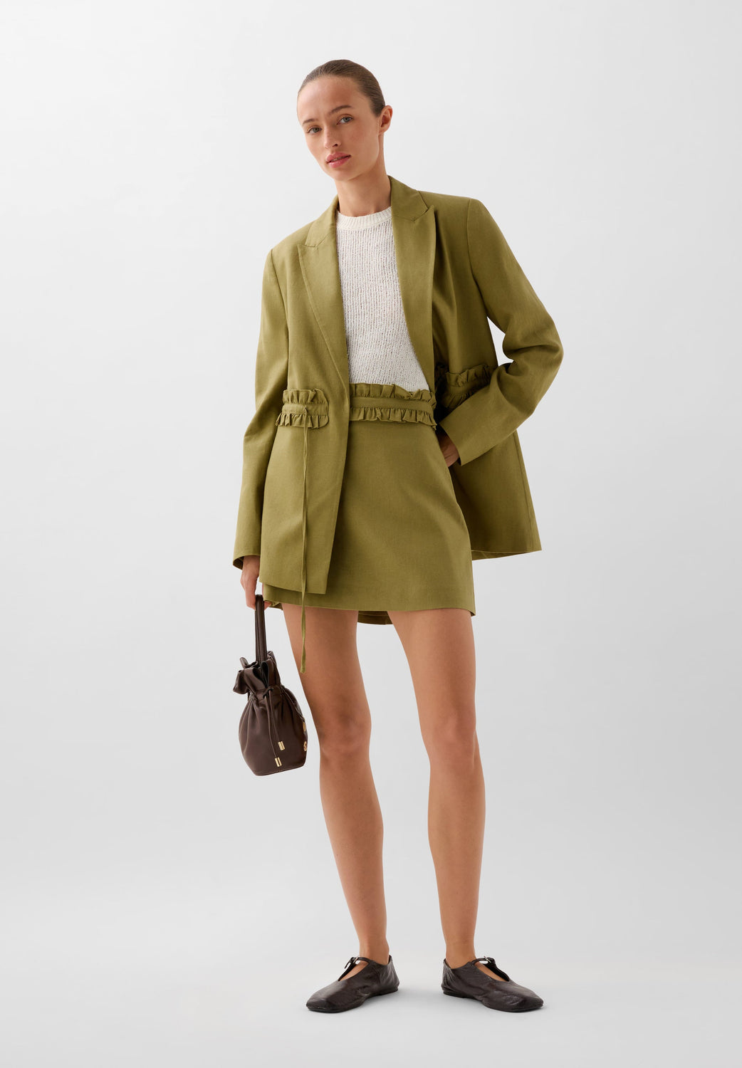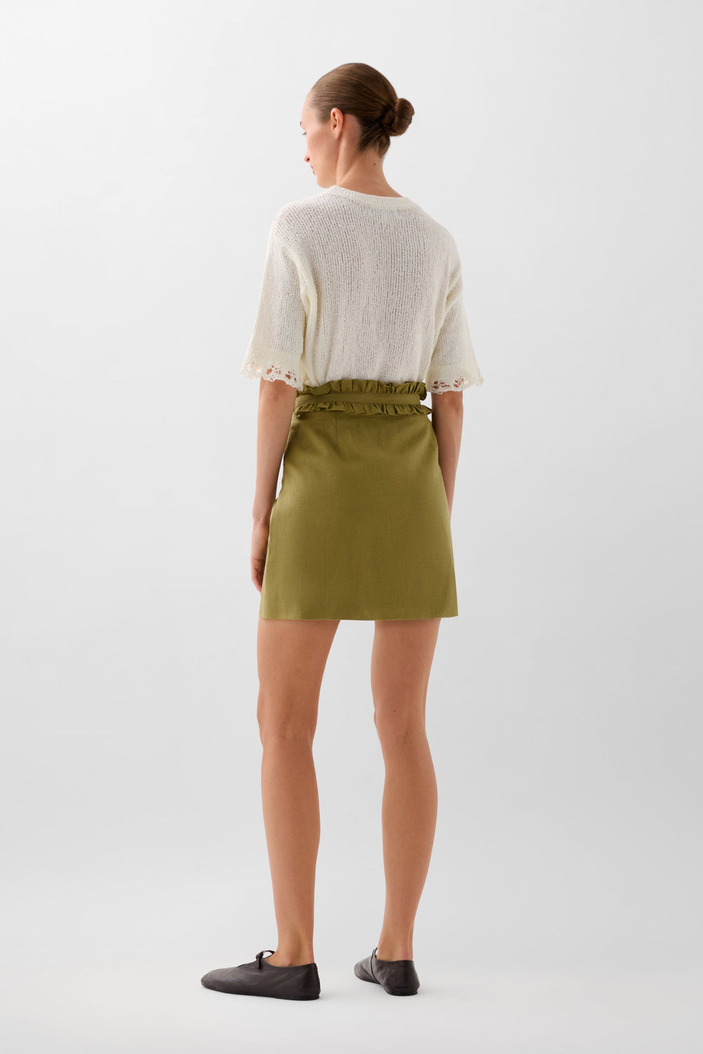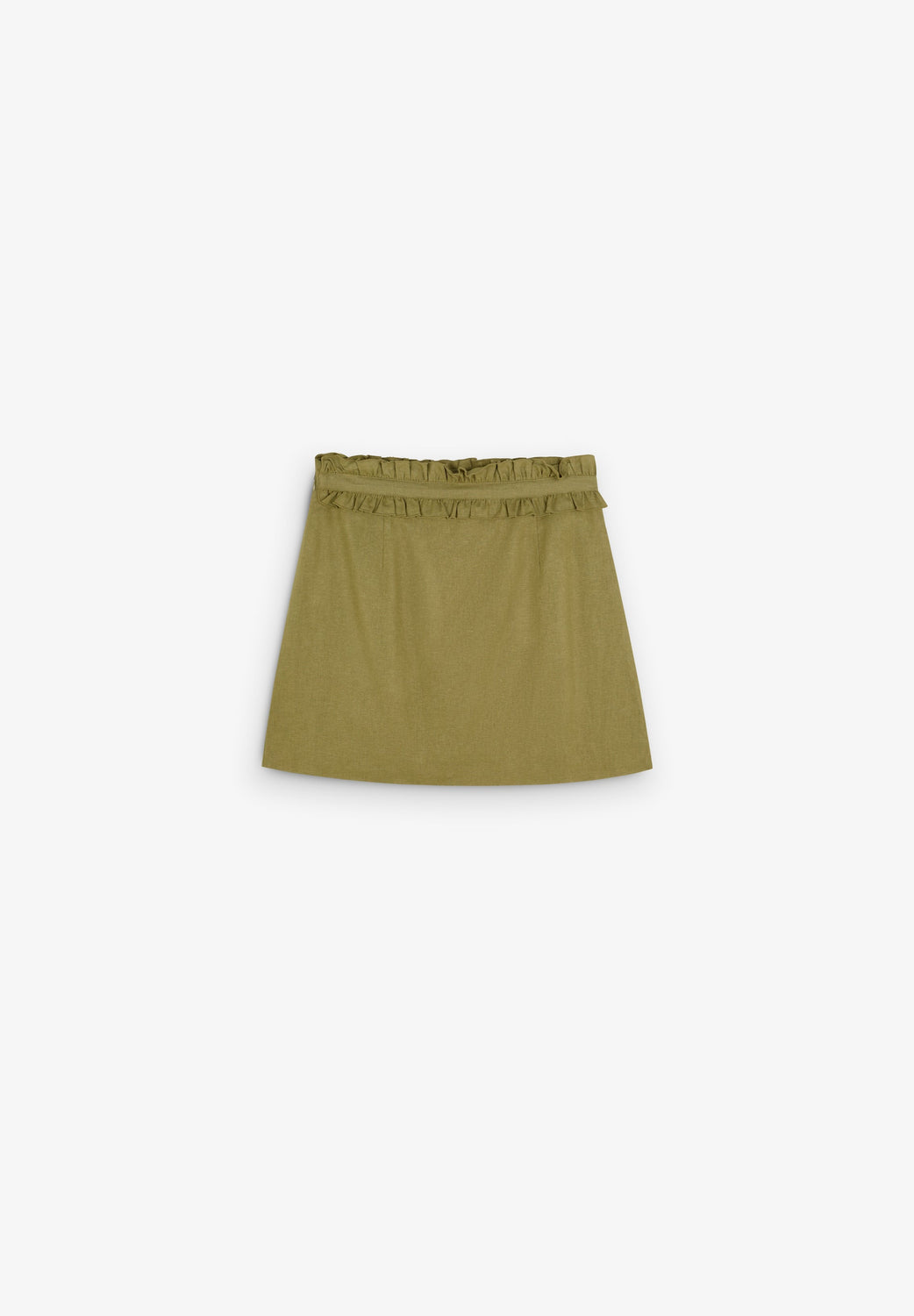 Falda confeccionada en Lino. Forro interior. Detalle de volantes en cintura.