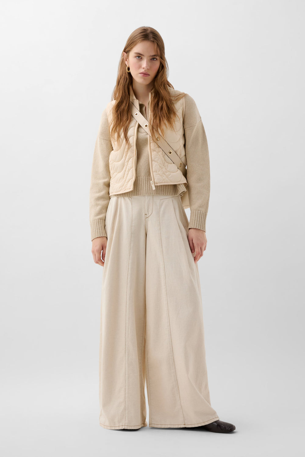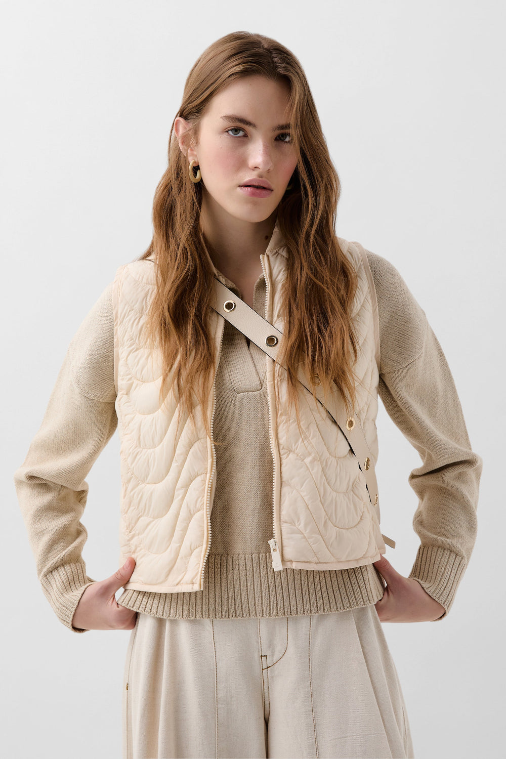 Chaleco acolchado confeccionado en tejido técnico. Slim fit, cuello subido y cierre con cremallera. Bolsillos laterales.