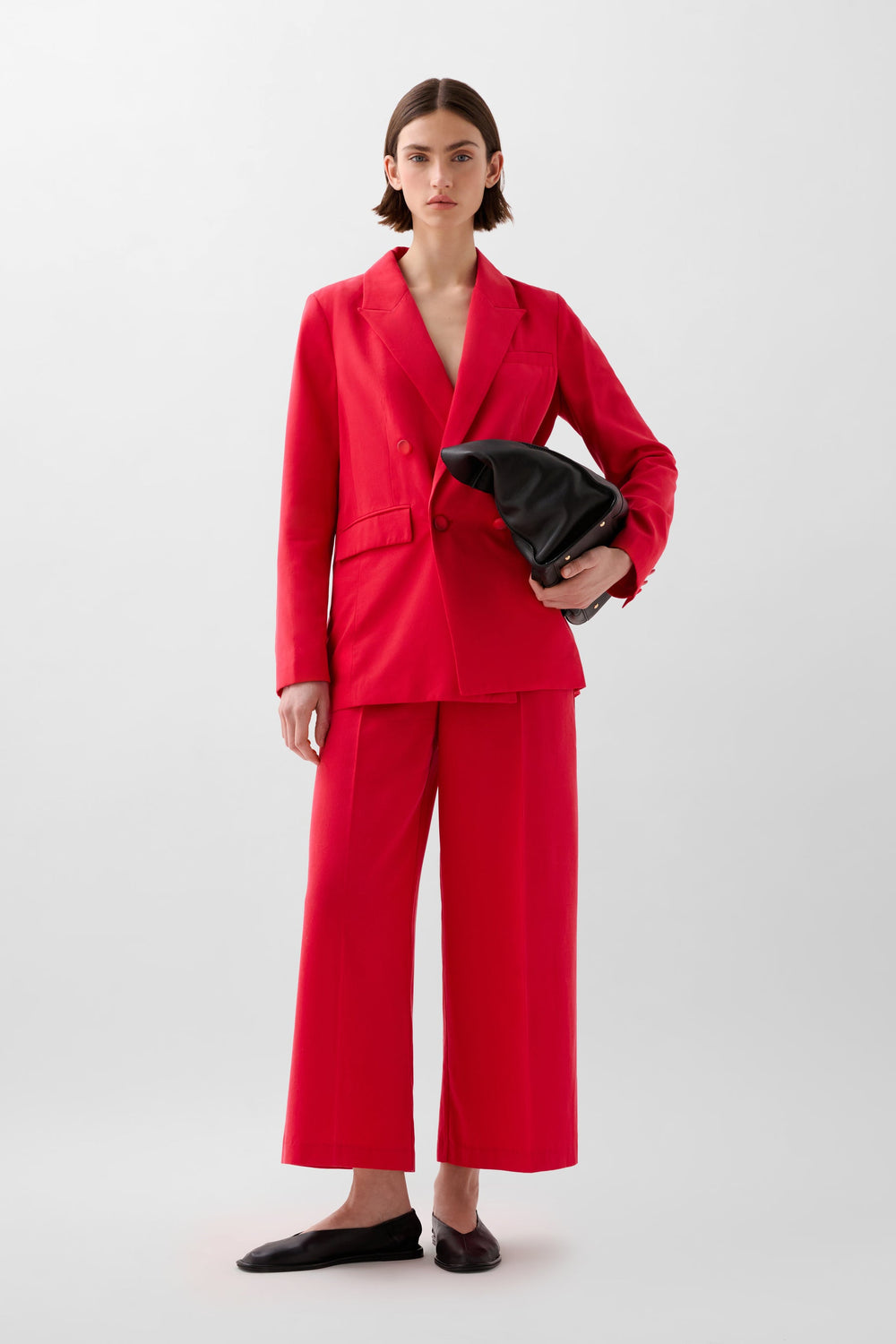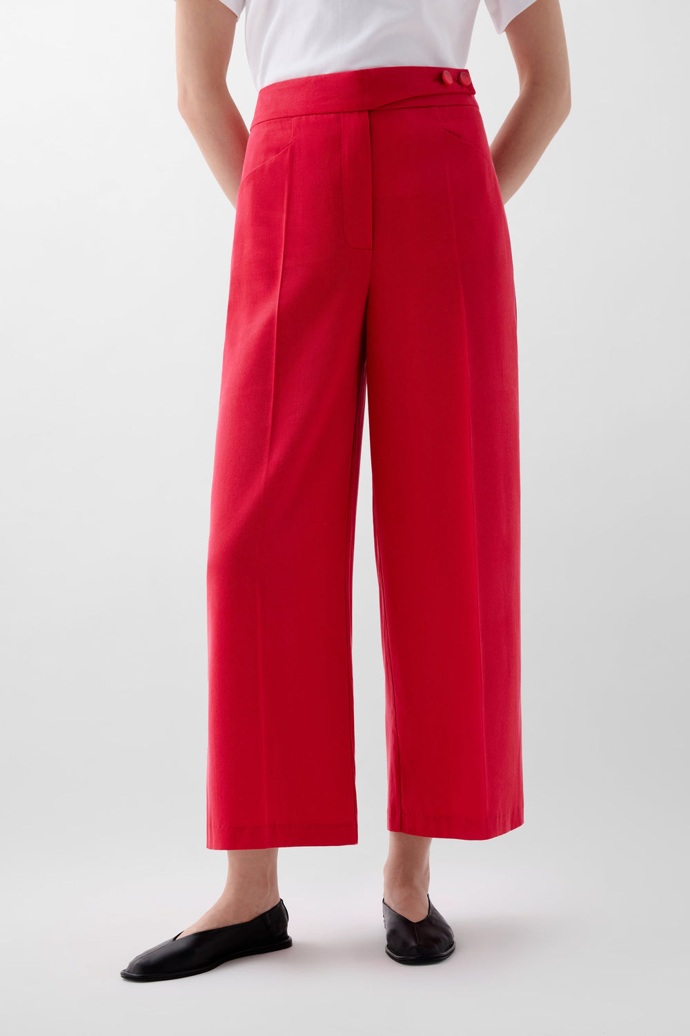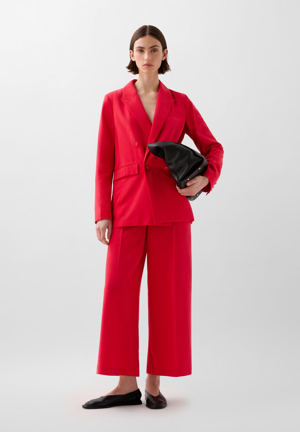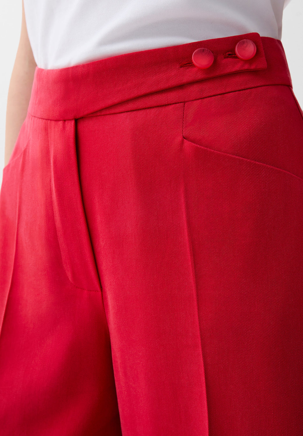 Pantalón confeccionado en material fluido en mezcla de algodón. Corte regular fit, recto con cierre de cremallera y botón prolongado en cinturilla. Pinzas frontales y bolsillos inclinados. Bolsillos de vivo traseros.