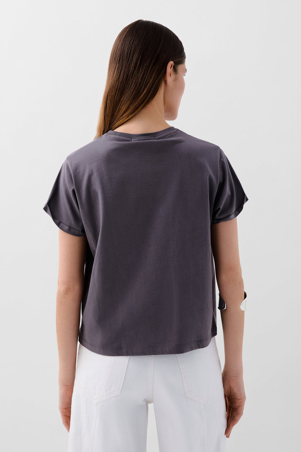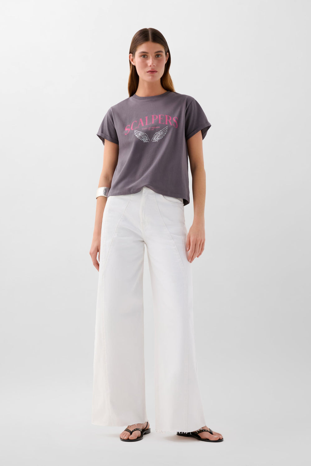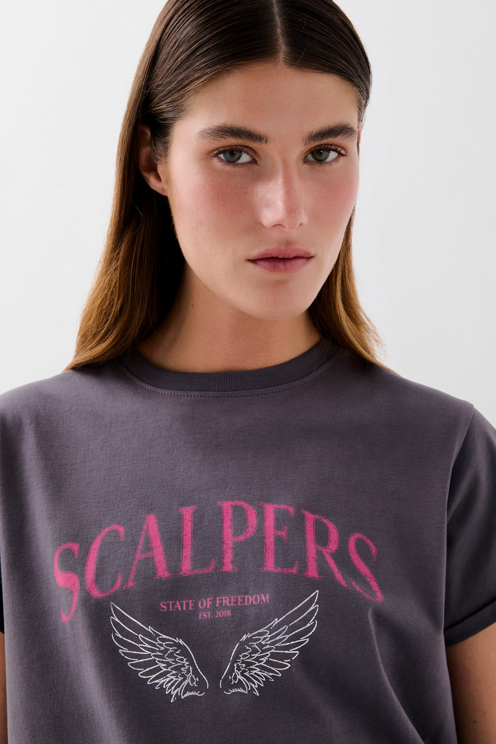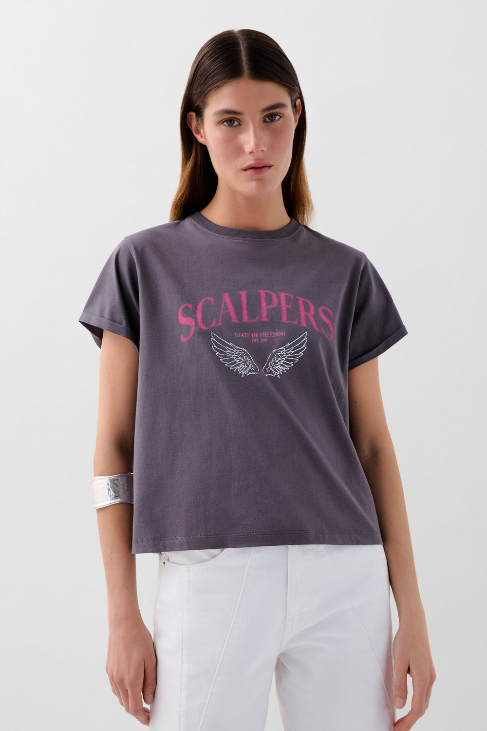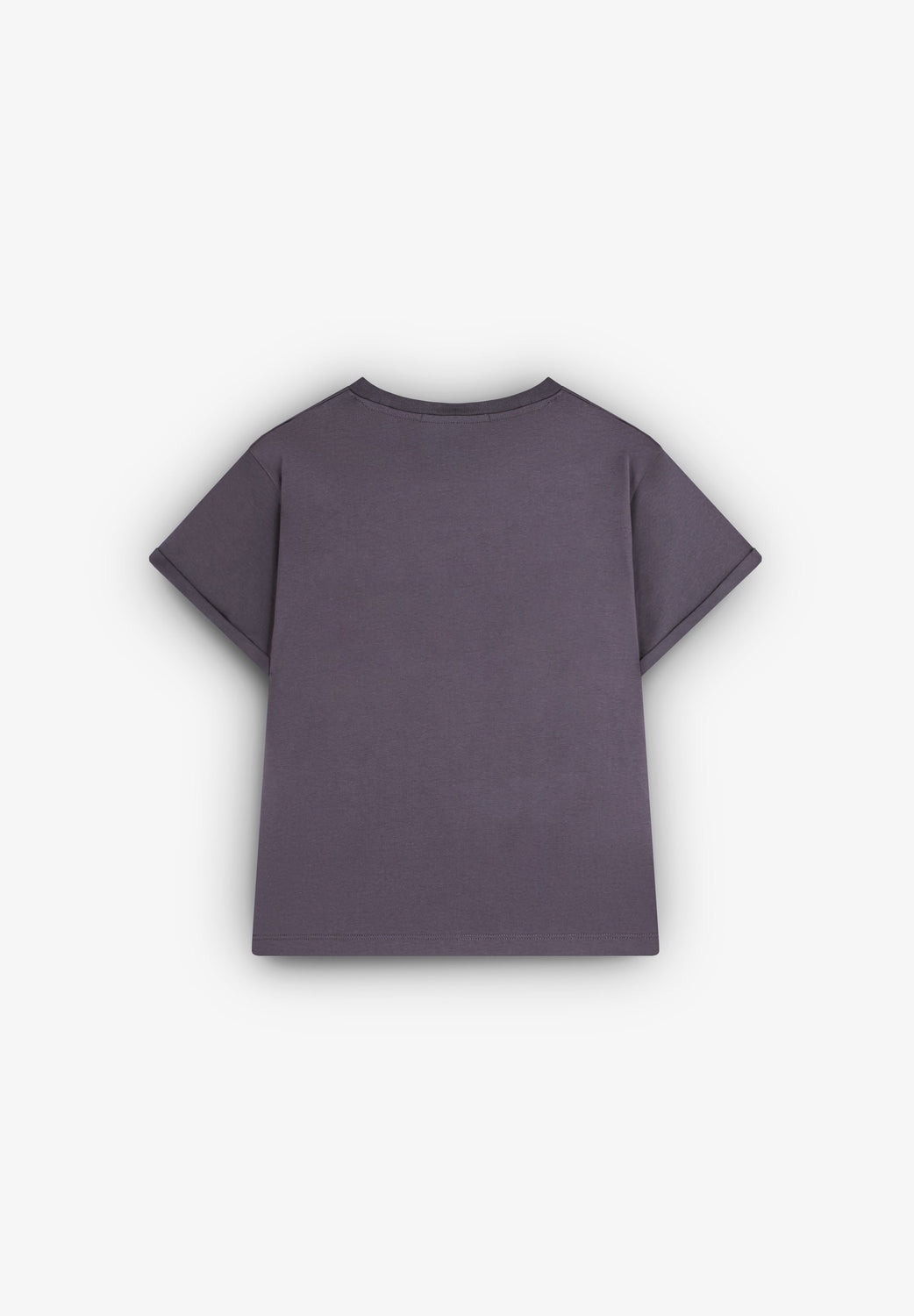 Camiseta confeccionada en 100% algodón. Corte regular fit, cuello redondo y manga corta. Print frontal en pecho.