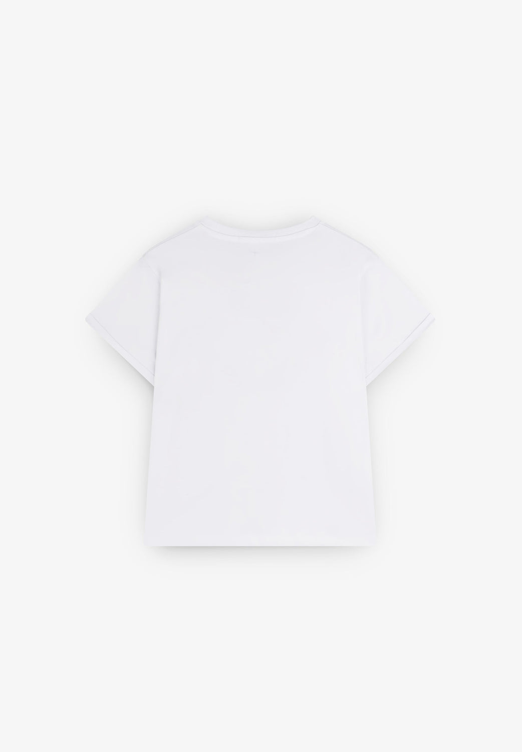 Camiseta confeccionada en 100% algodón. Corte regular fit, cuello redondo y manga corta. Print frontal en pecho.