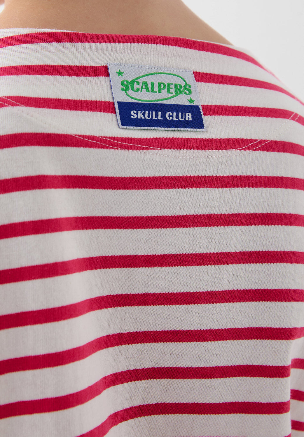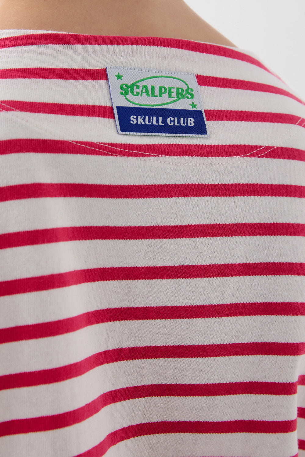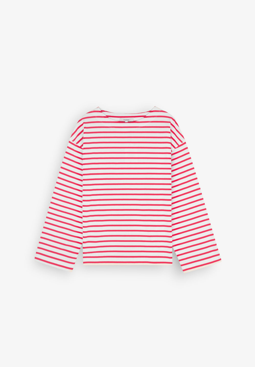 Camiseta de rayas confeccionada en 100% algodón. Relaxed fit, cuello redondo y manga larga. Detalle de etiqueta de logo trasera.